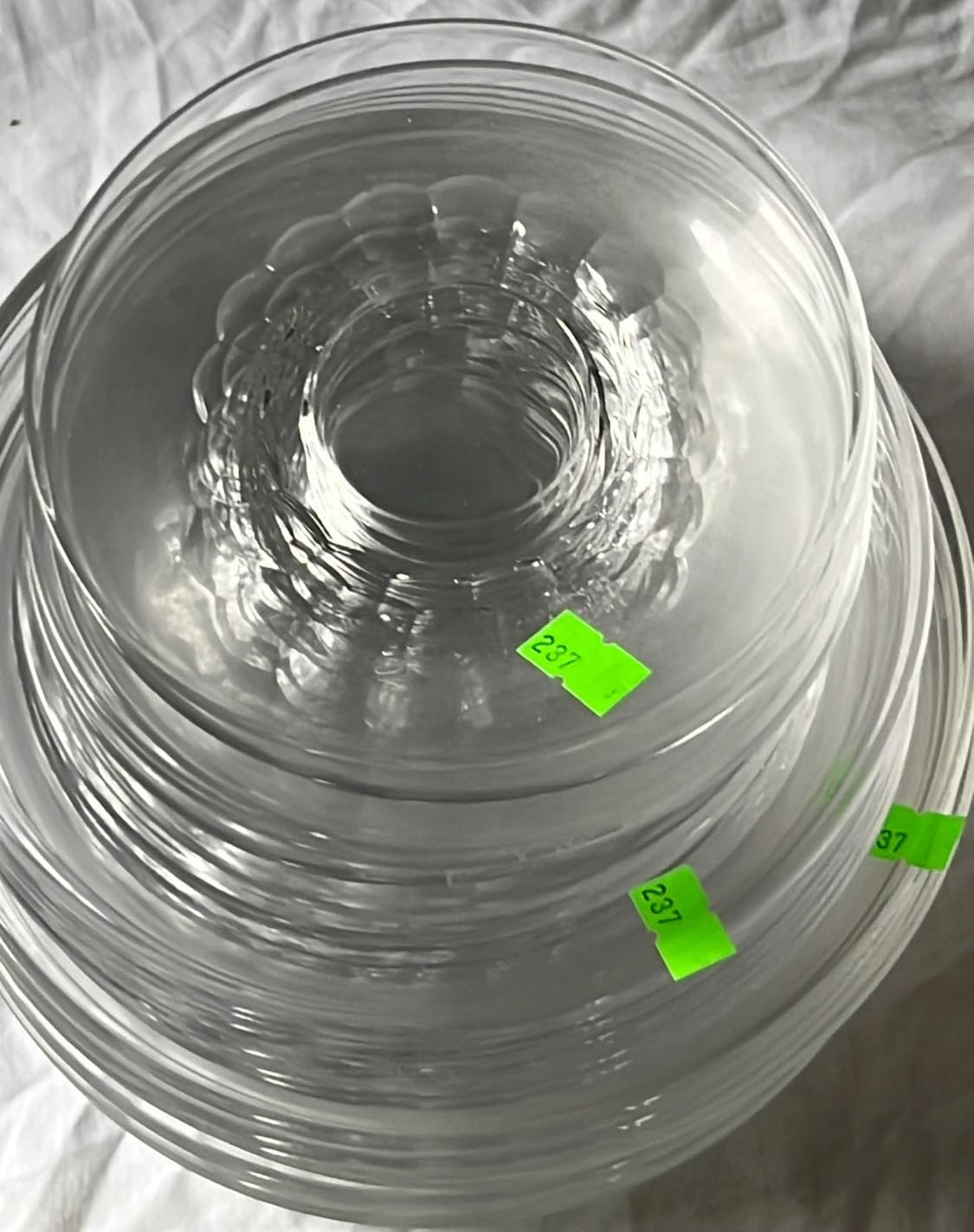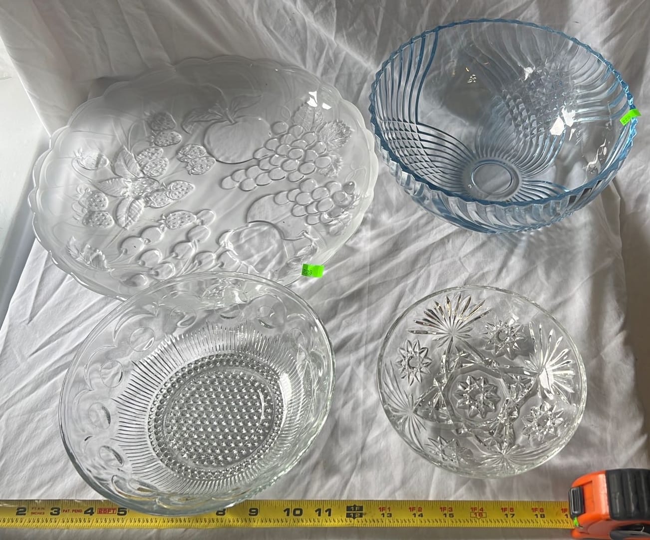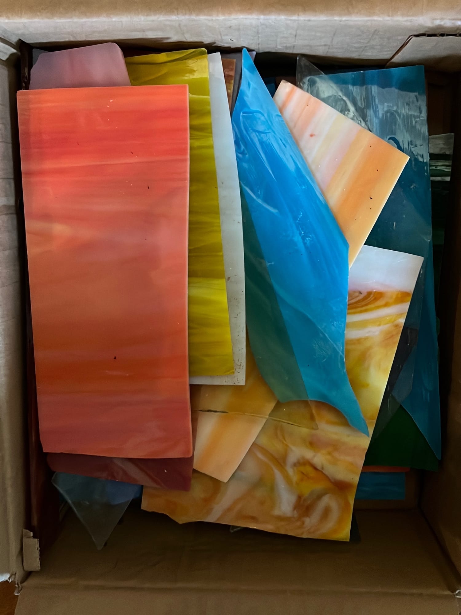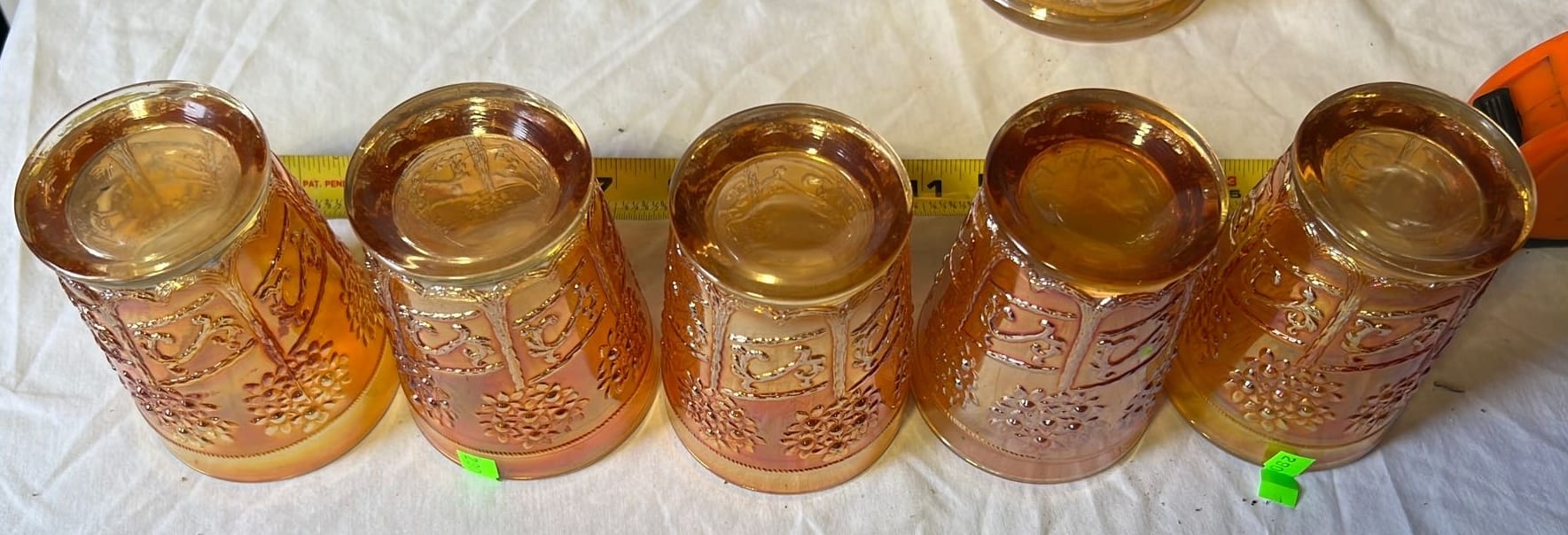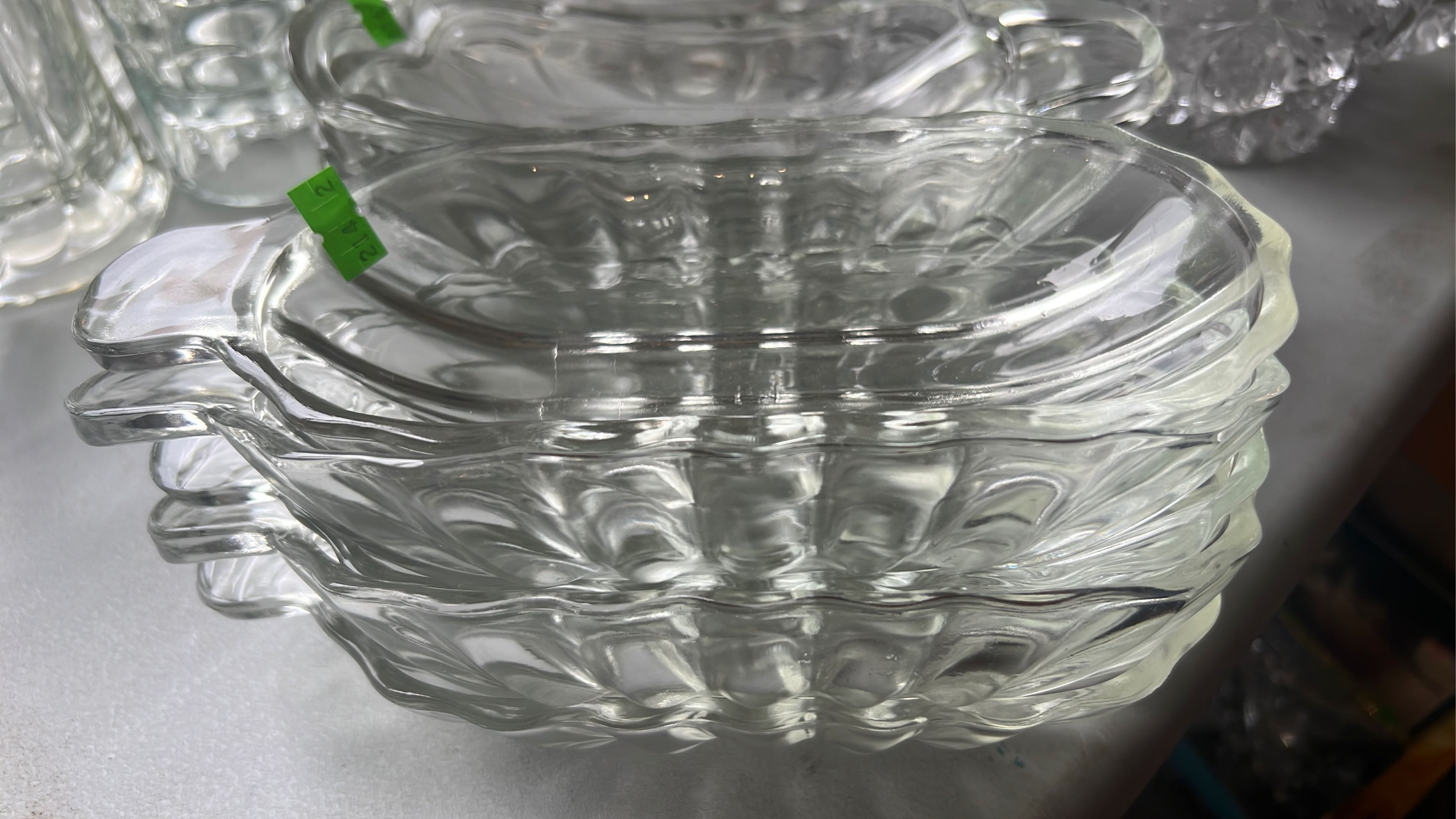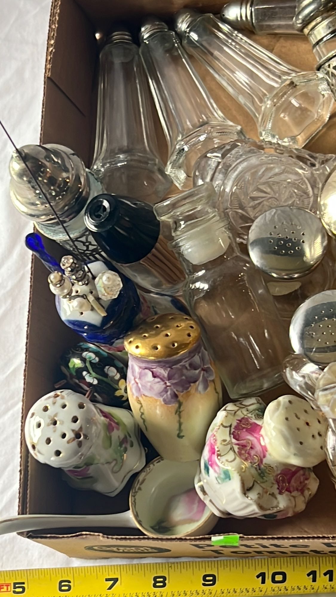 106 Gibson Blue Glass Lid 2.5” • Clear Ball No. 10 Lid 2.25” • Vintage Letter Opener • Brown Funeral Home Thermometer Advertisement 6.5” • Peacock Feathers 16”
