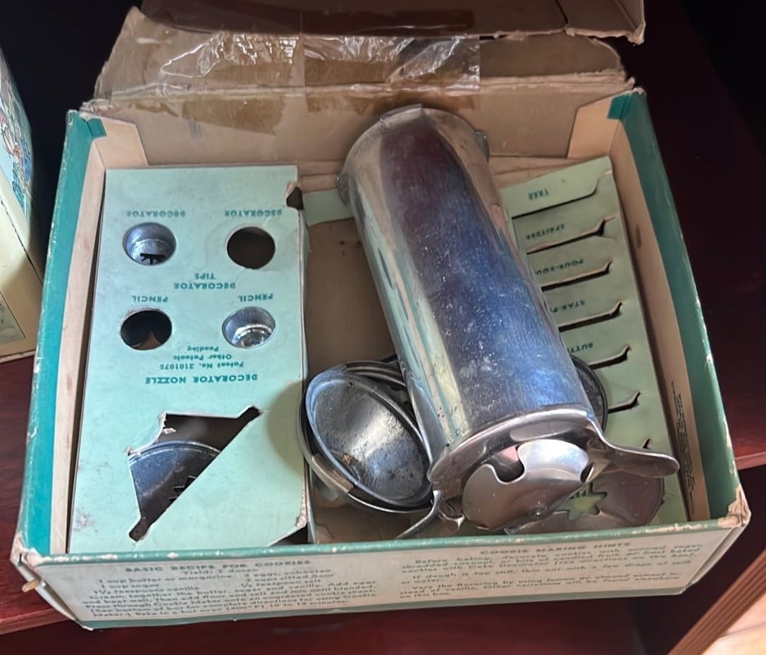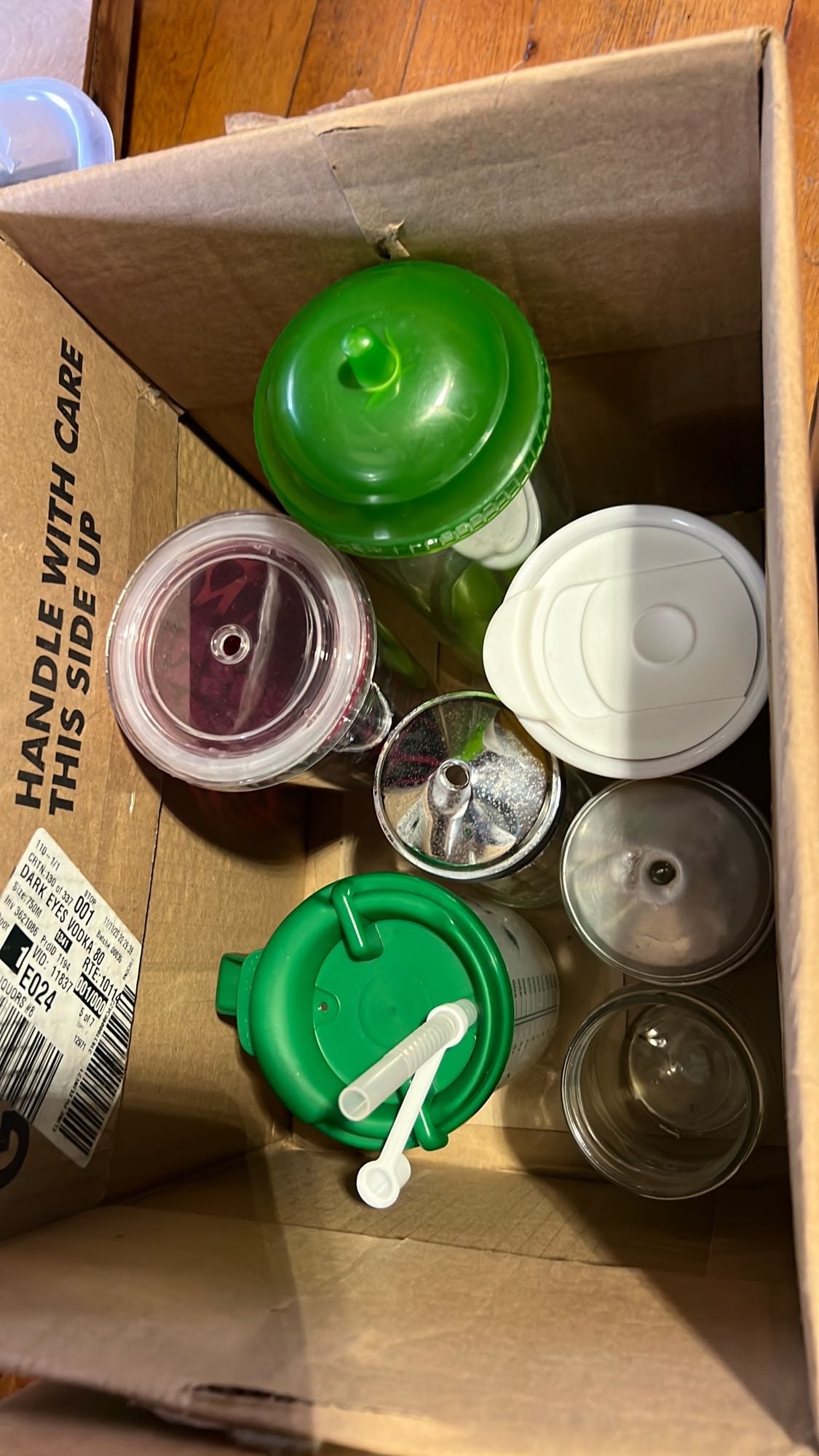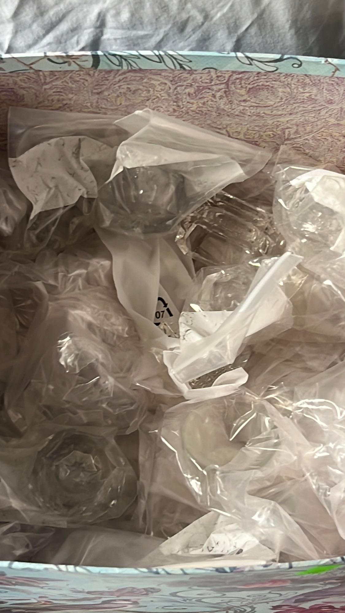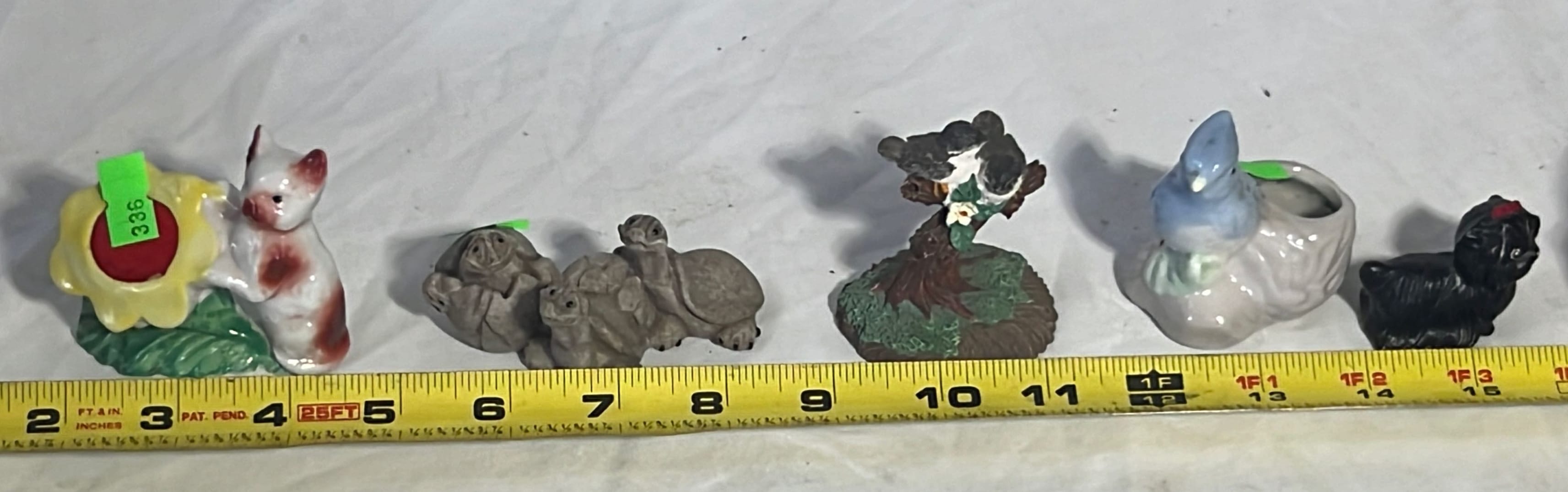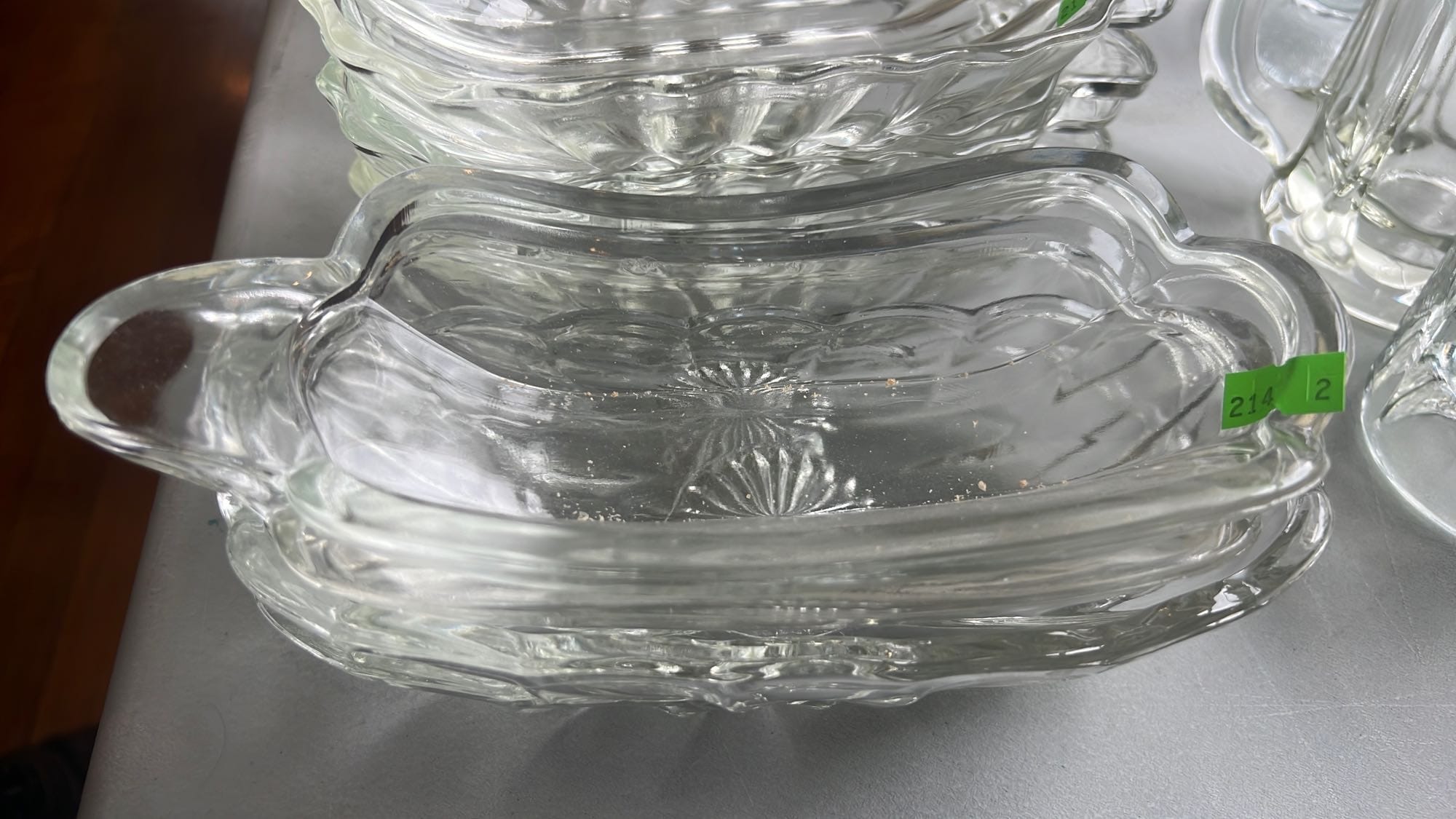 106 Gibson Blue Glass Lid 2.5” • Clear Ball No. 10 Lid 2.25” • Vintage Letter Opener • Brown Funeral Home Thermometer Advertisement 6.5” • Peacock Feathers 16”