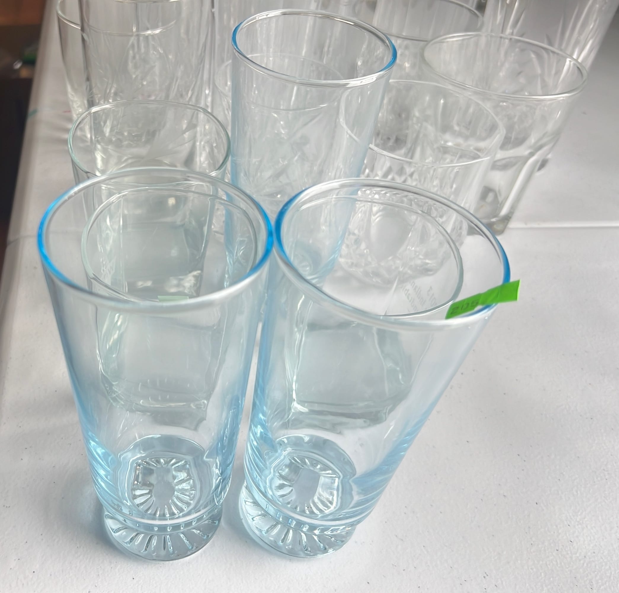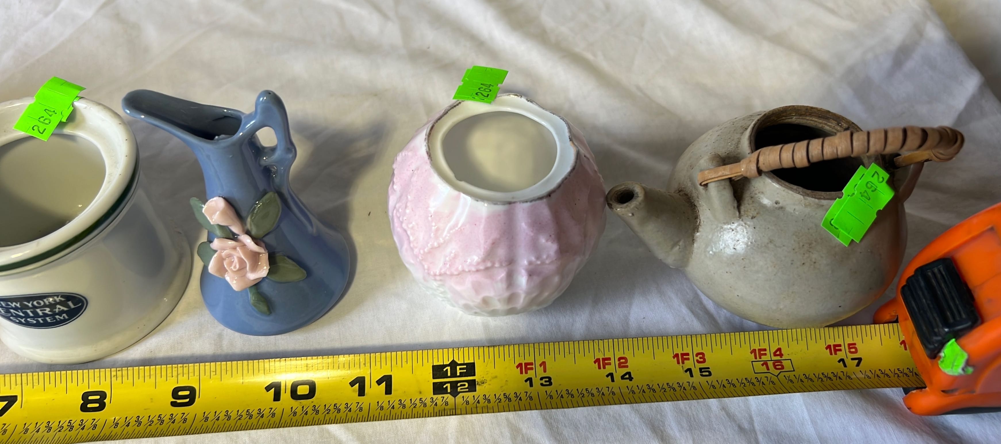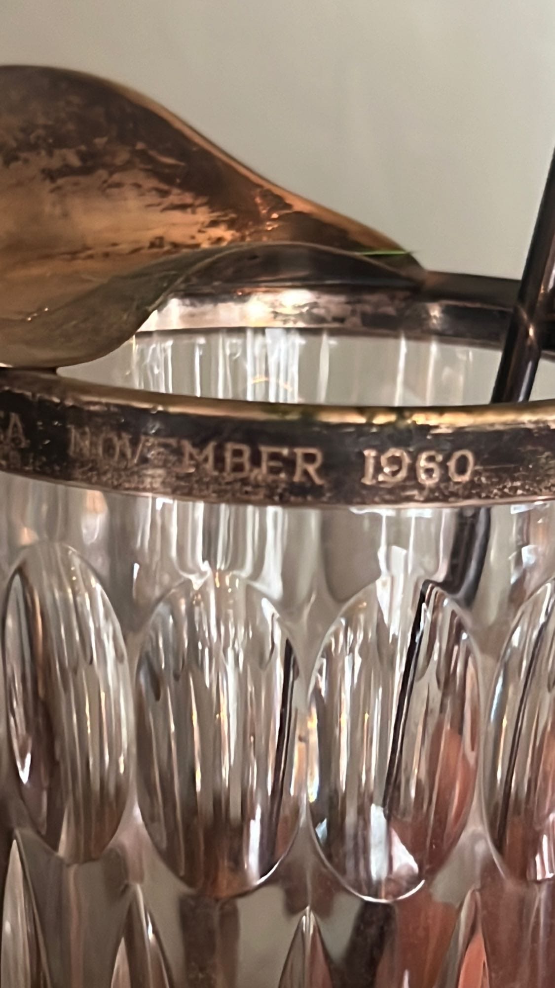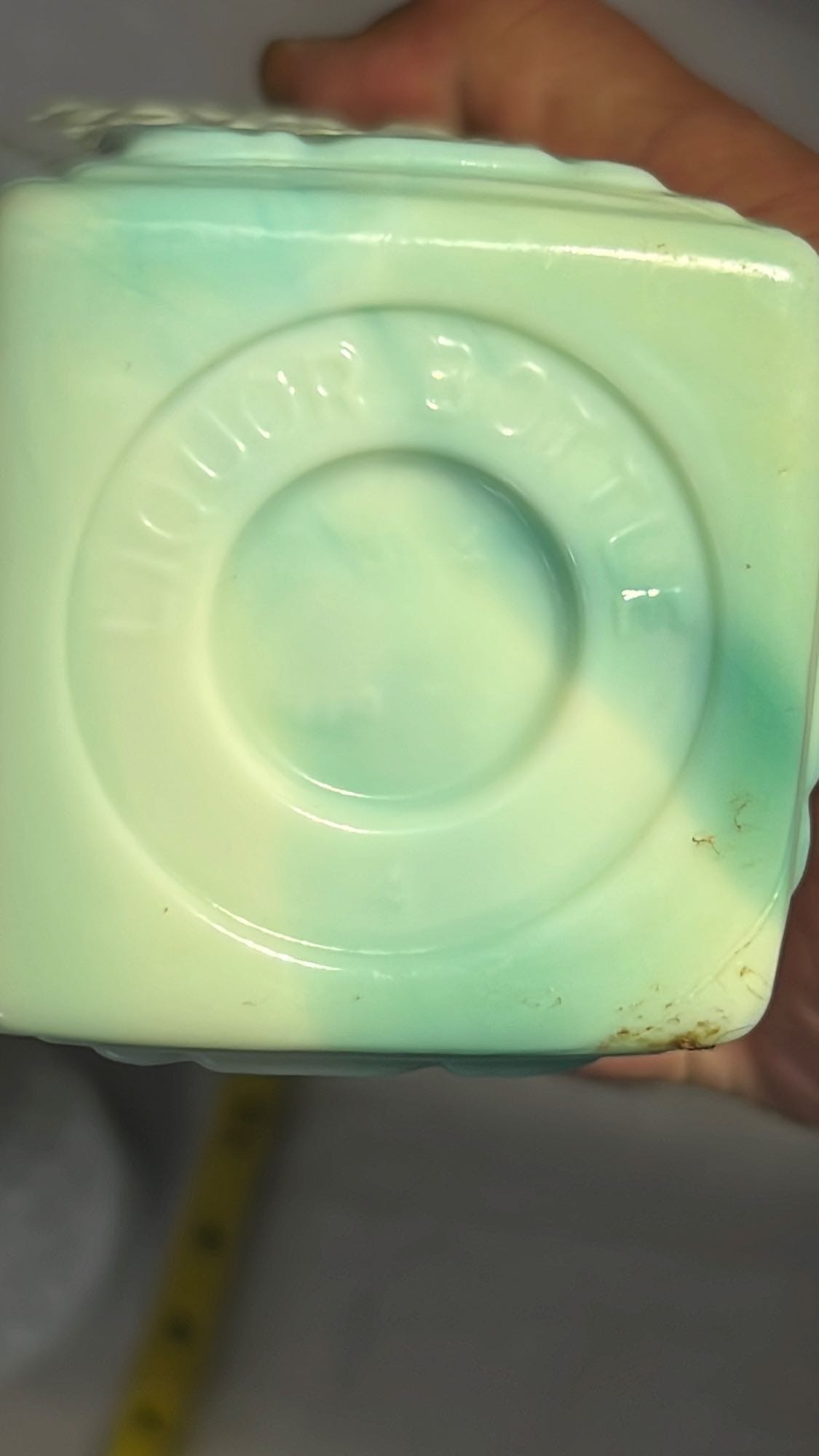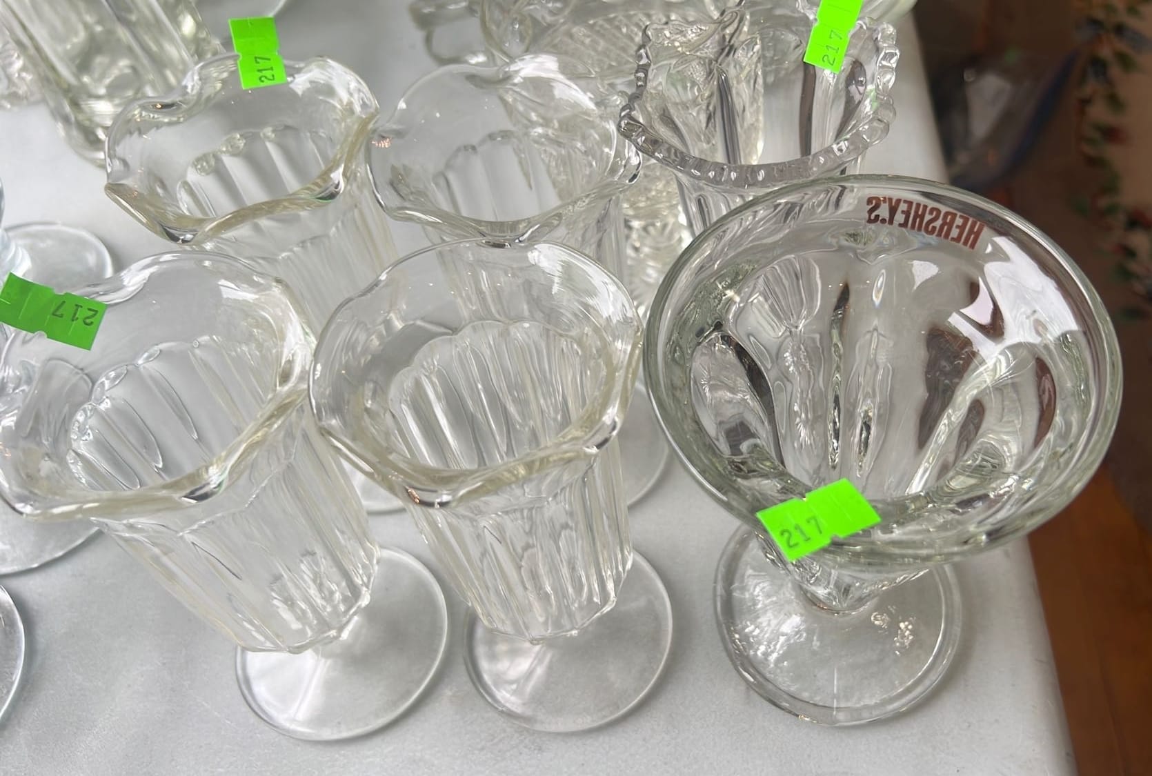 106 Gibson Blue Glass Lid 2.5” • Clear Ball No. 10 Lid 2.25” • Vintage Letter Opener • Brown Funeral Home Thermometer Advertisement 6.5” • Peacock Feathers 16”