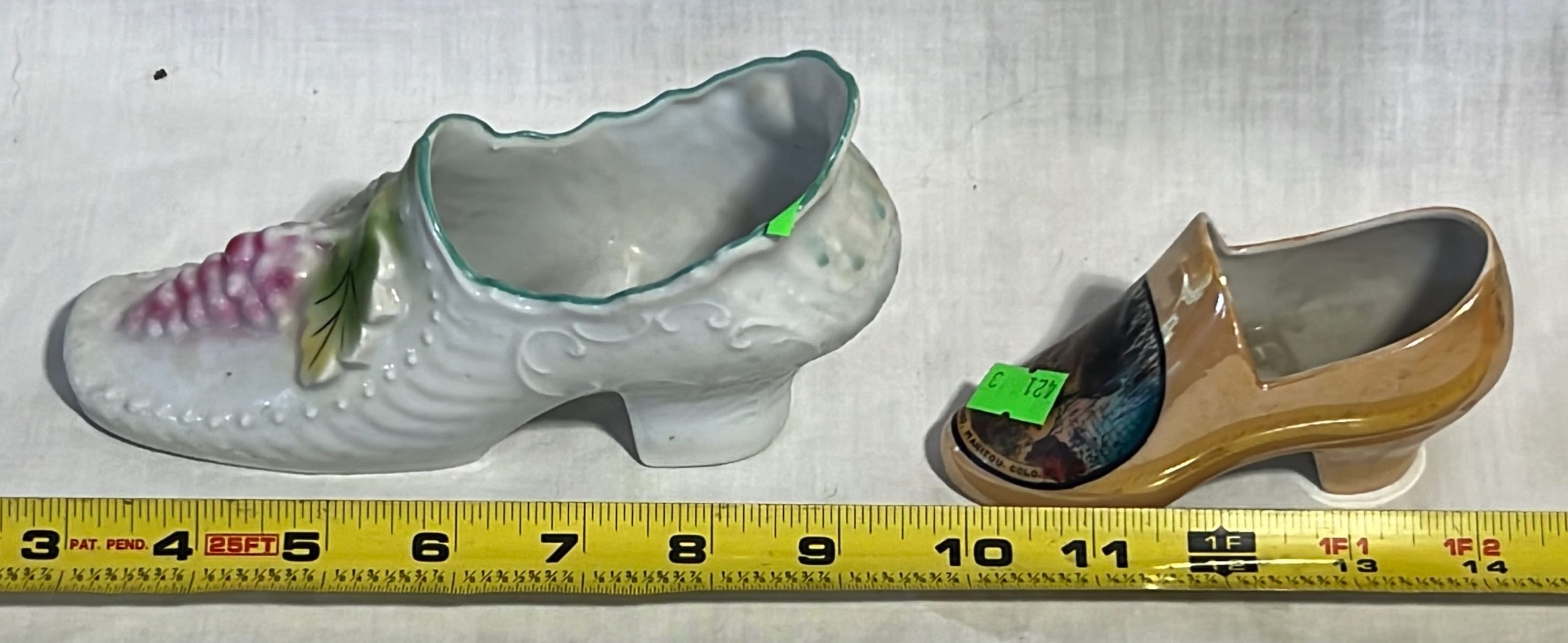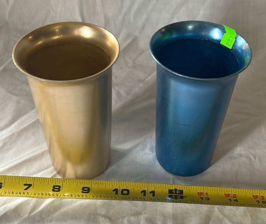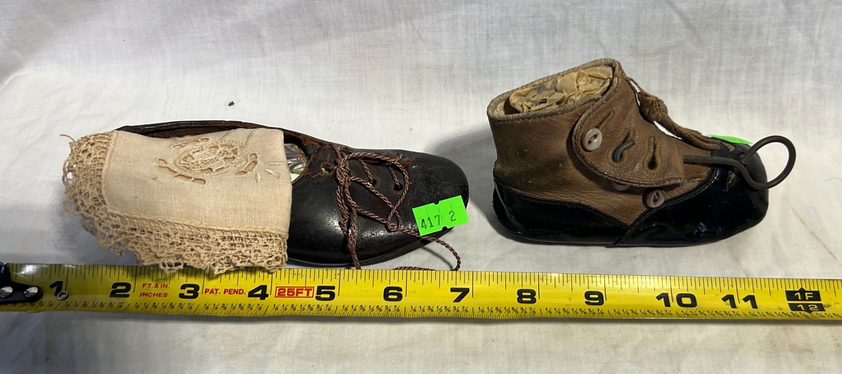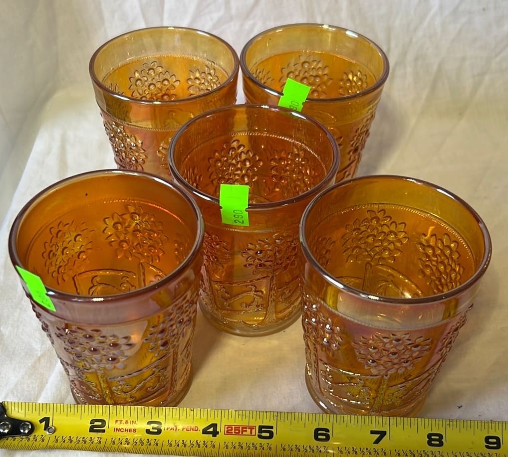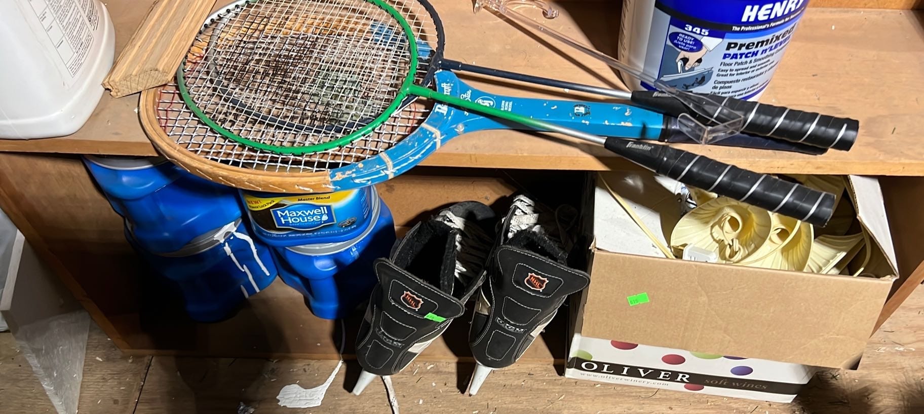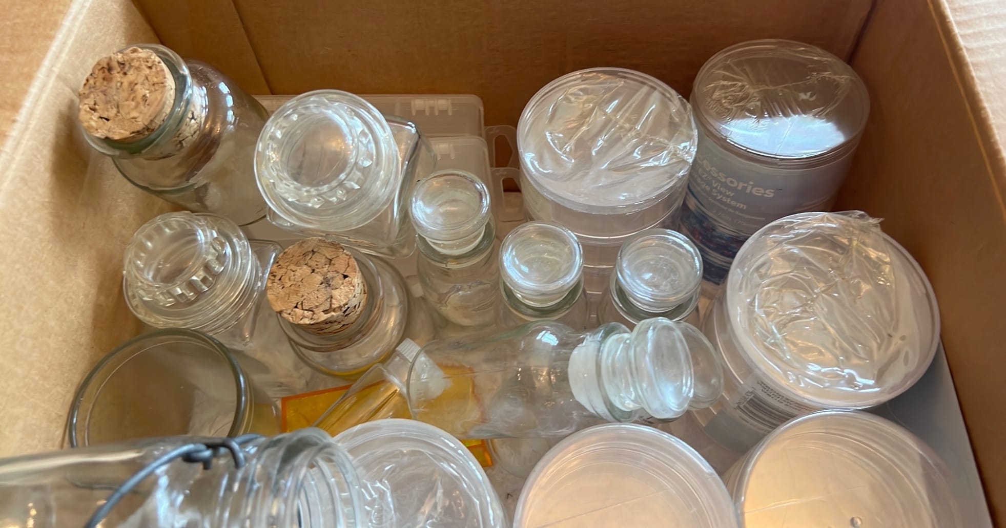 106 Gibson Blue Glass Lid 2.5” • Clear Ball No. 10 Lid 2.25” • Vintage Letter Opener • Brown Funeral Home Thermometer Advertisement 6.5” • Peacock Feathers 16”