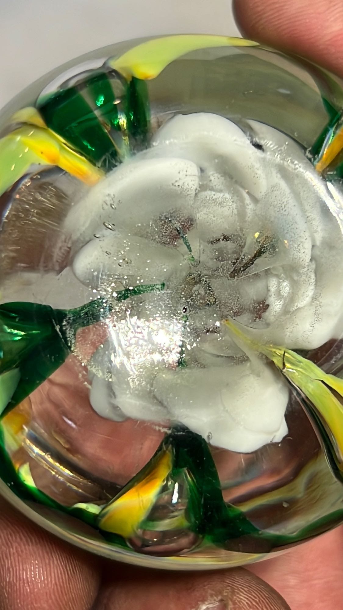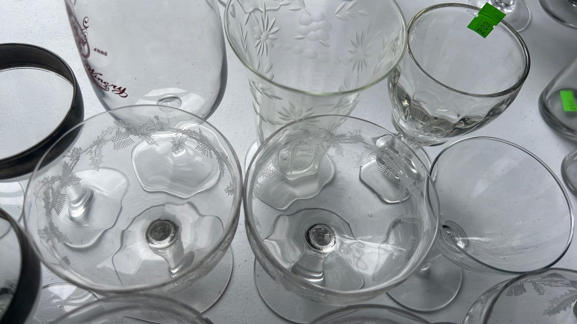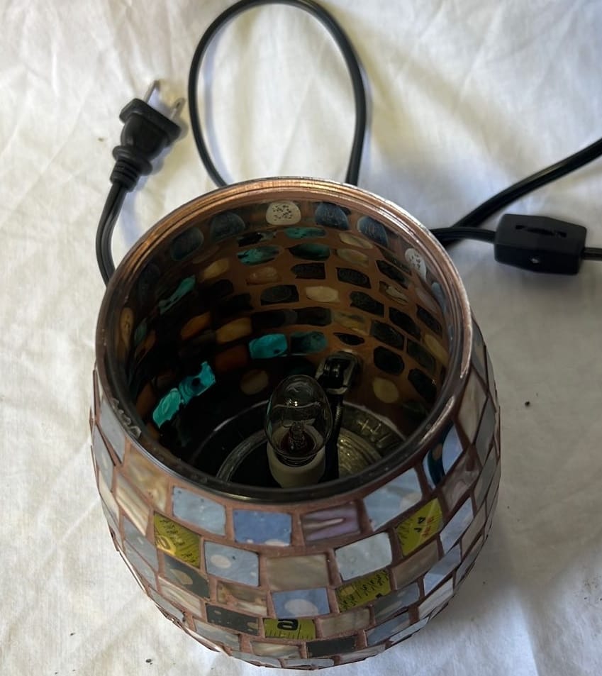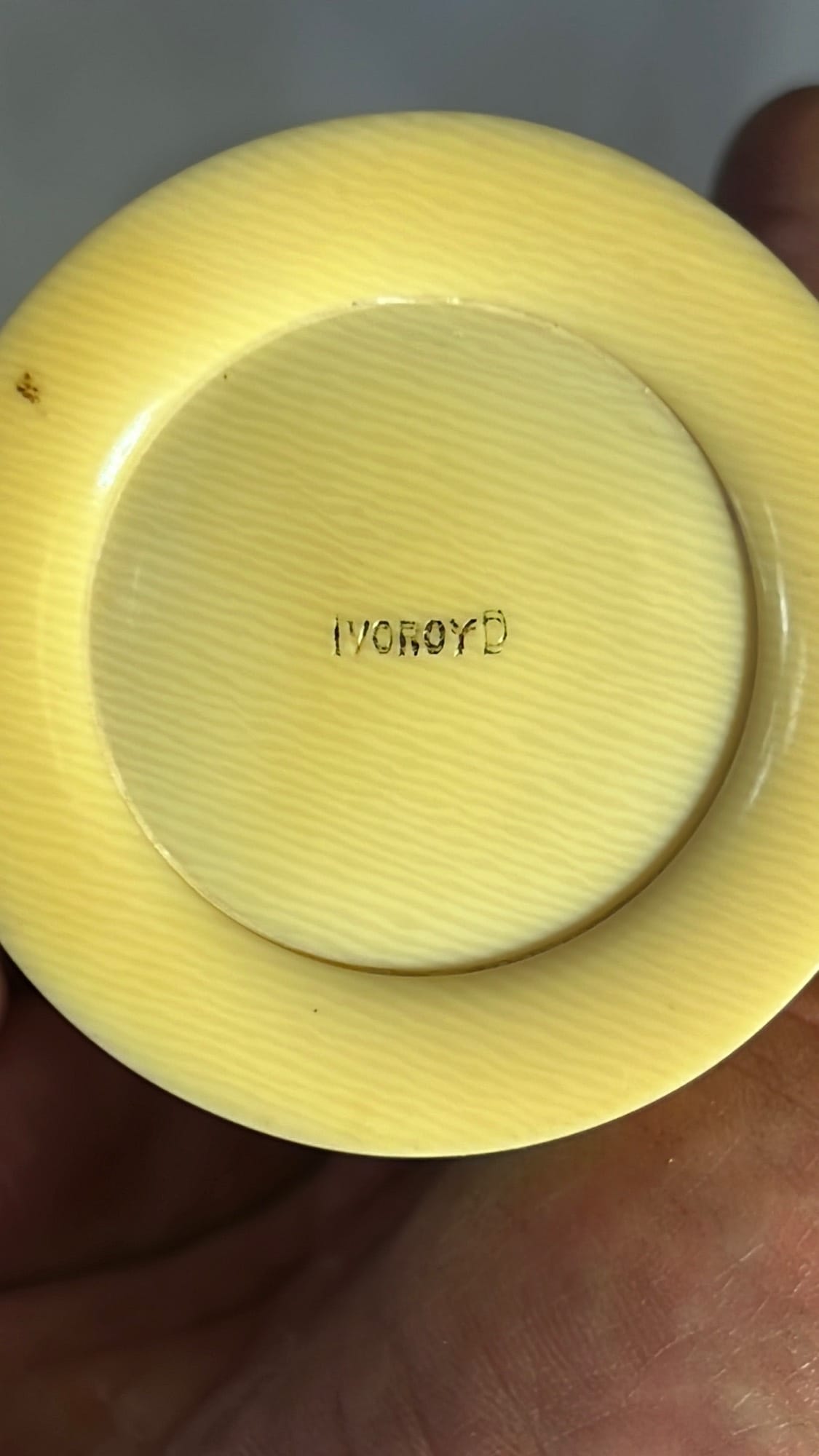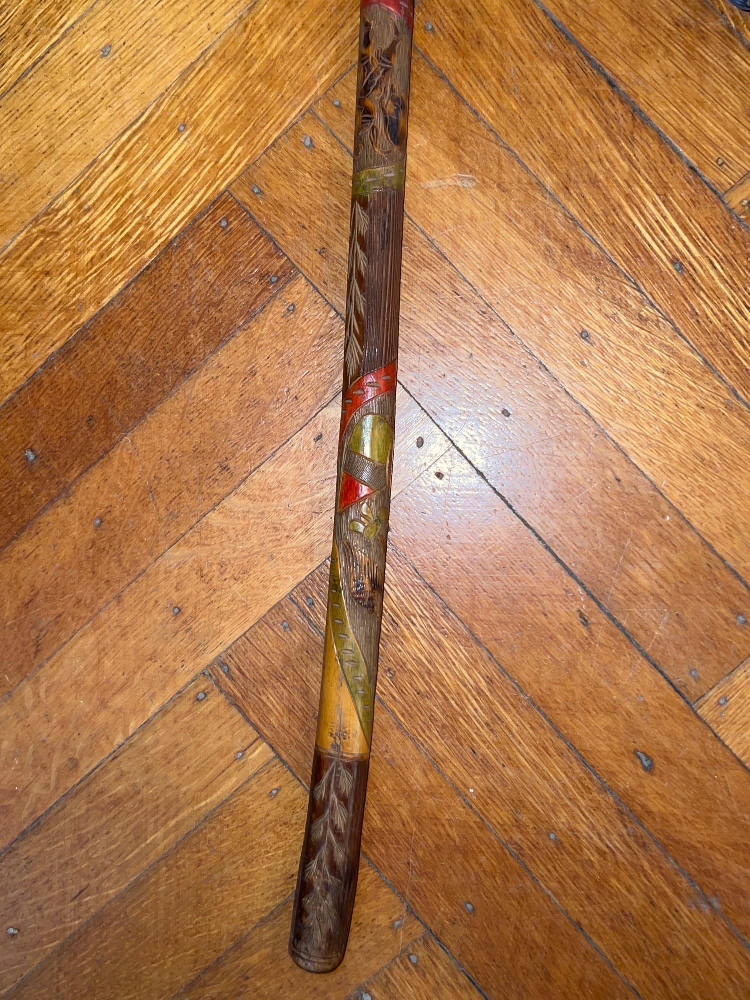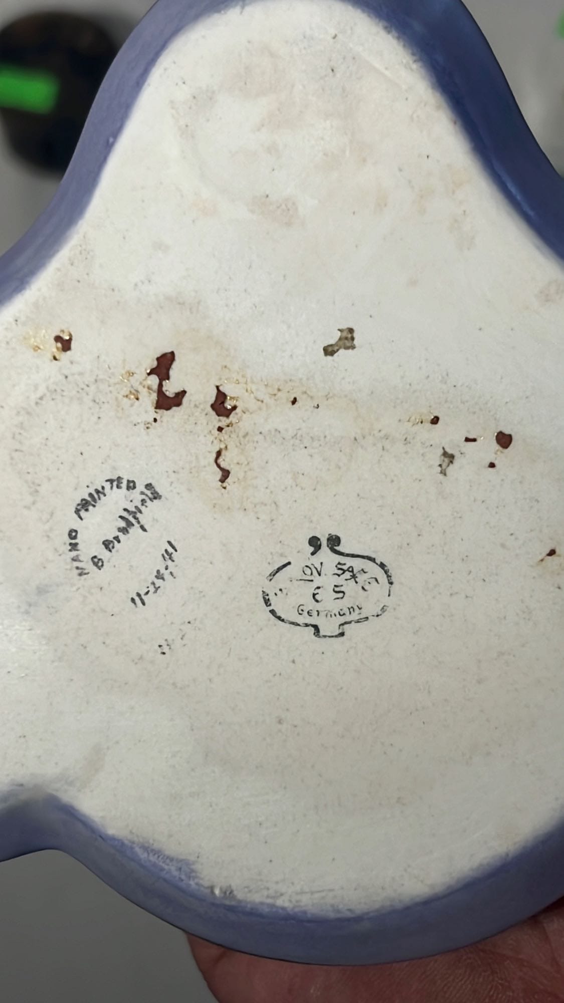 106 Gibson Blue Glass Lid 2.5” • Clear Ball No. 10 Lid 2.25” • Vintage Letter Opener • Brown Funeral Home Thermometer Advertisement 6.5” • Peacock Feathers 16”
