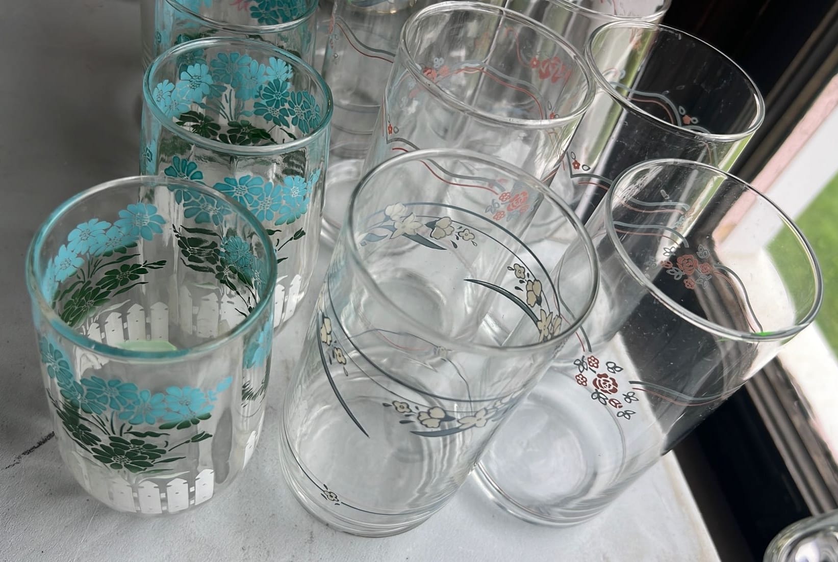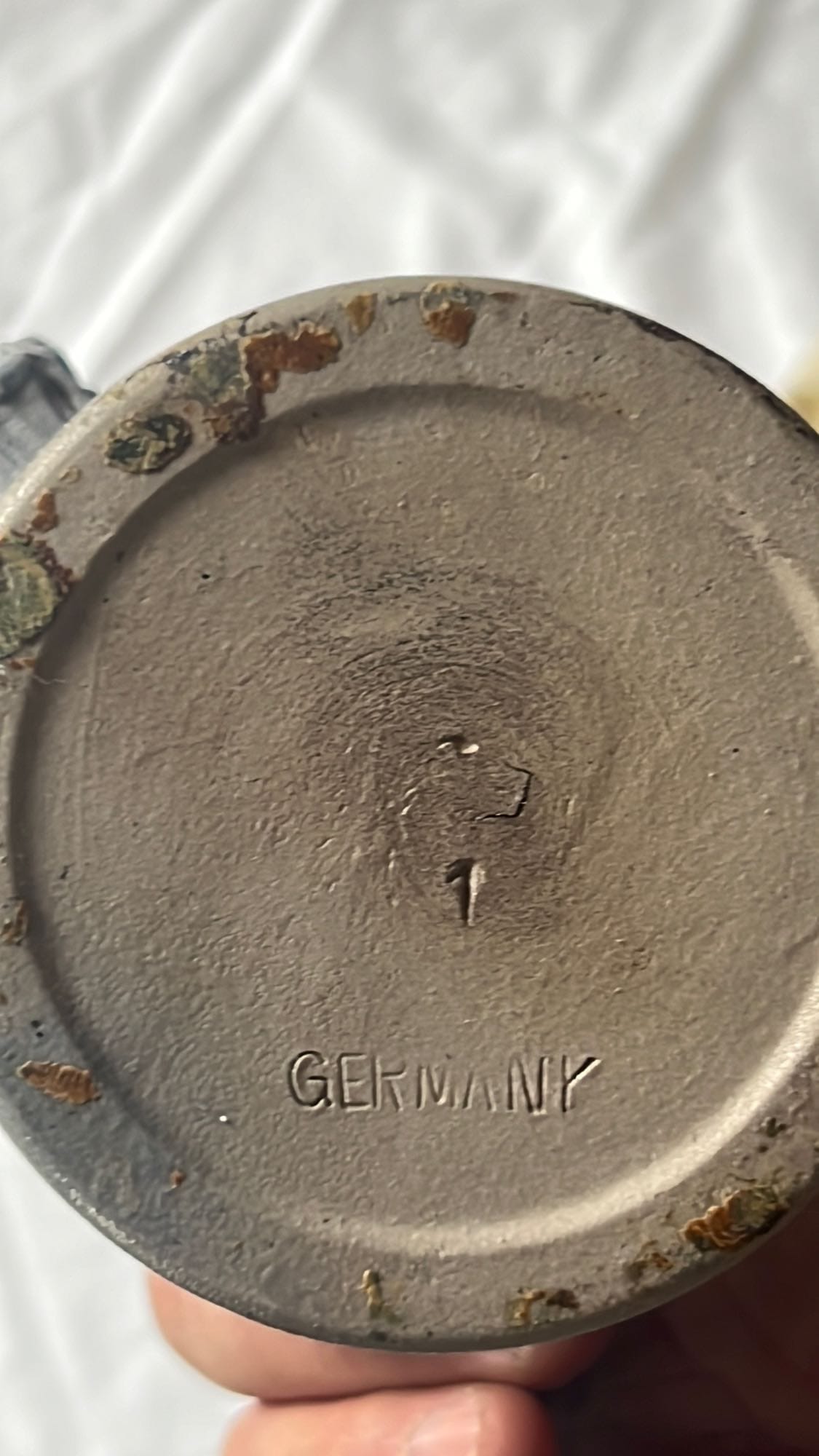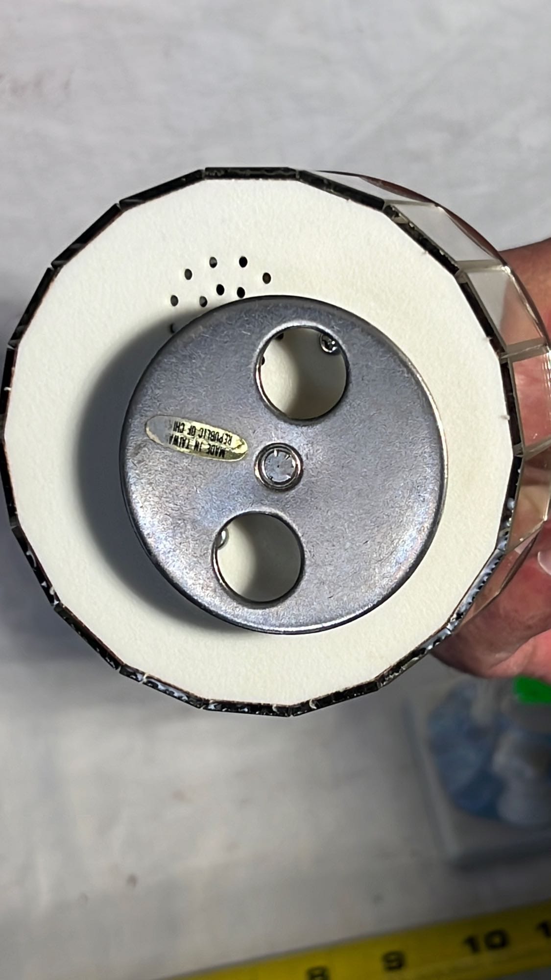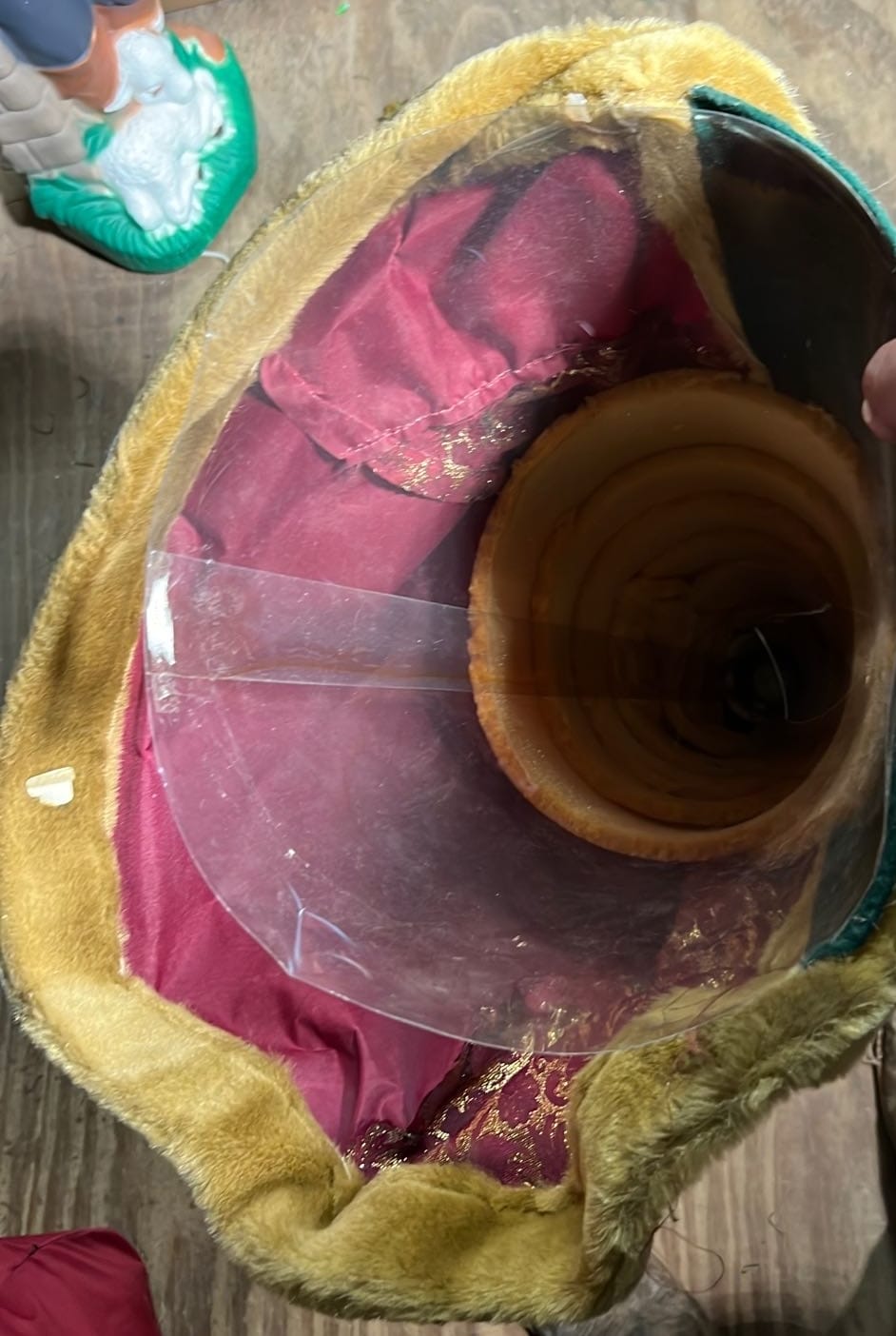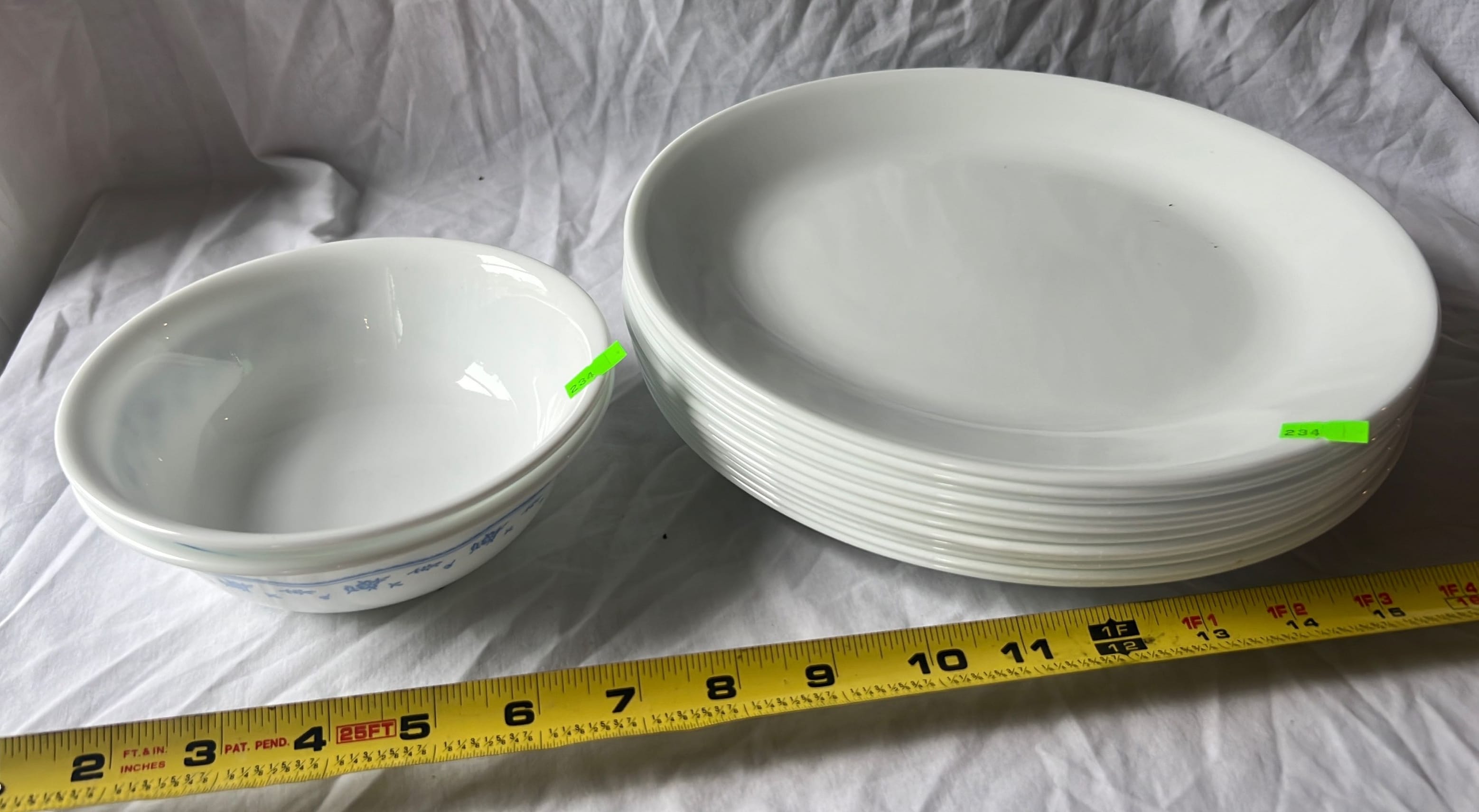 106 Gibson Blue Glass Lid 2.5” • Clear Ball No. 10 Lid 2.25” • Vintage Letter Opener • Brown Funeral Home Thermometer Advertisement 6.5” • Peacock Feathers 16”