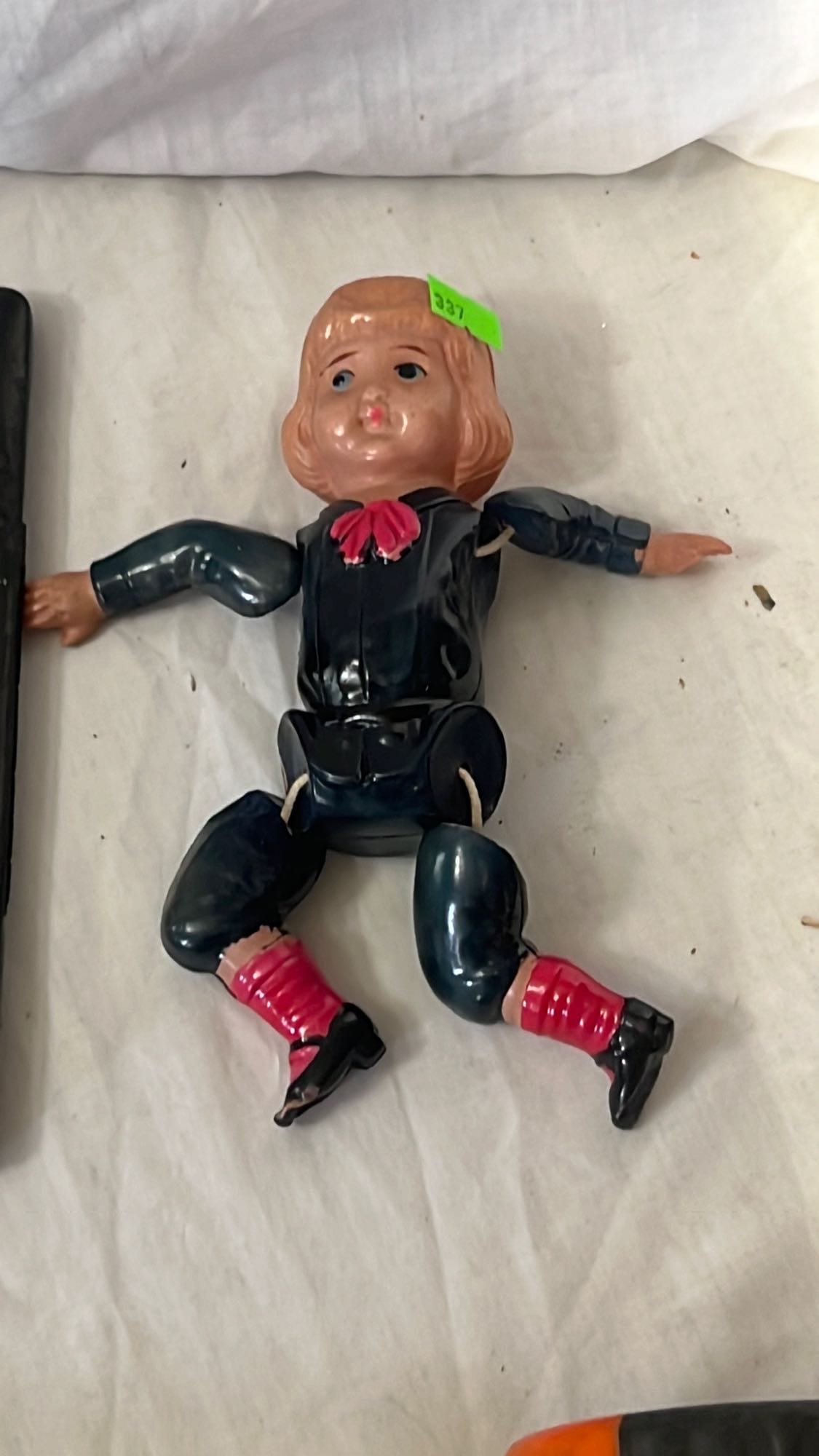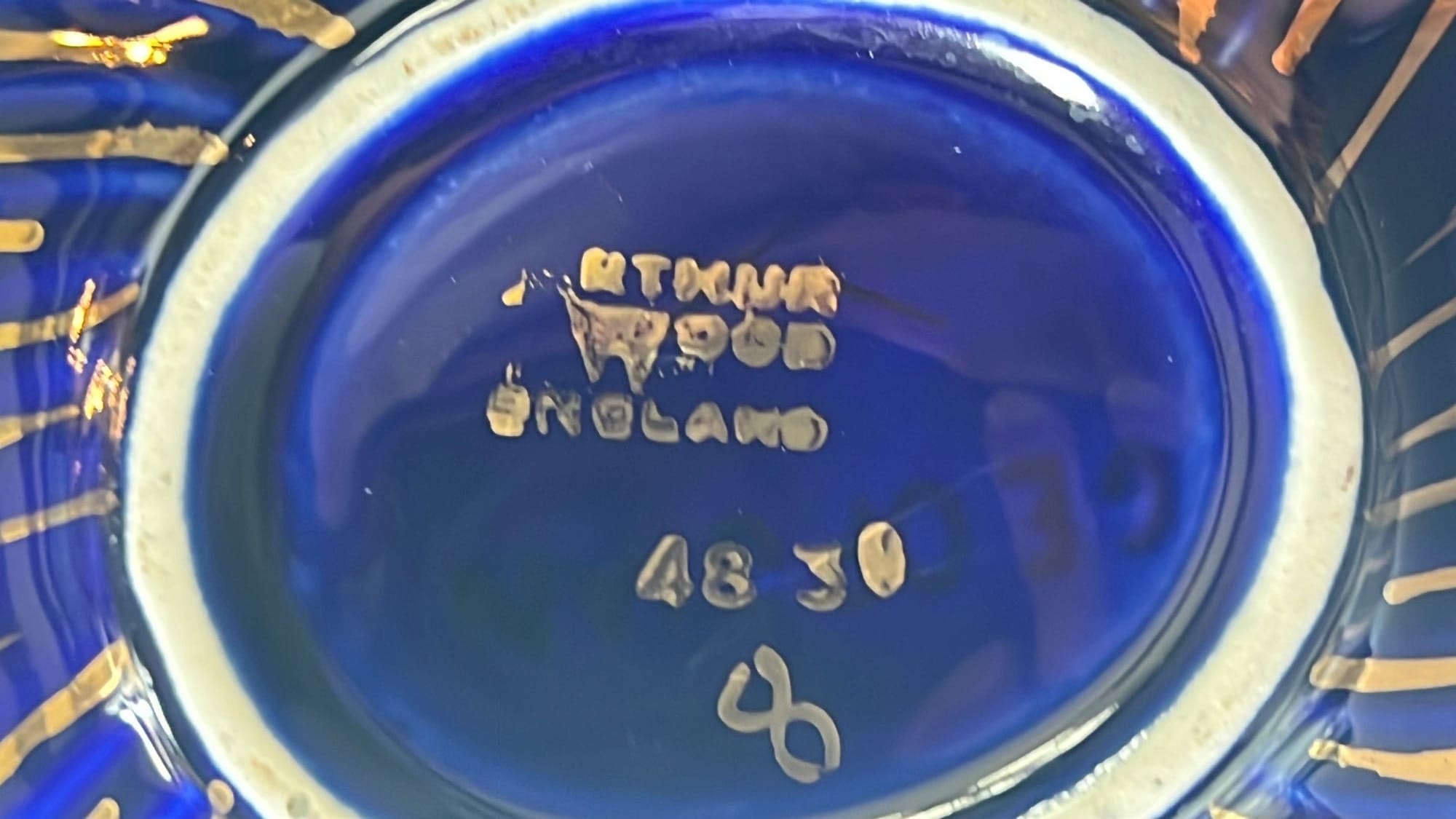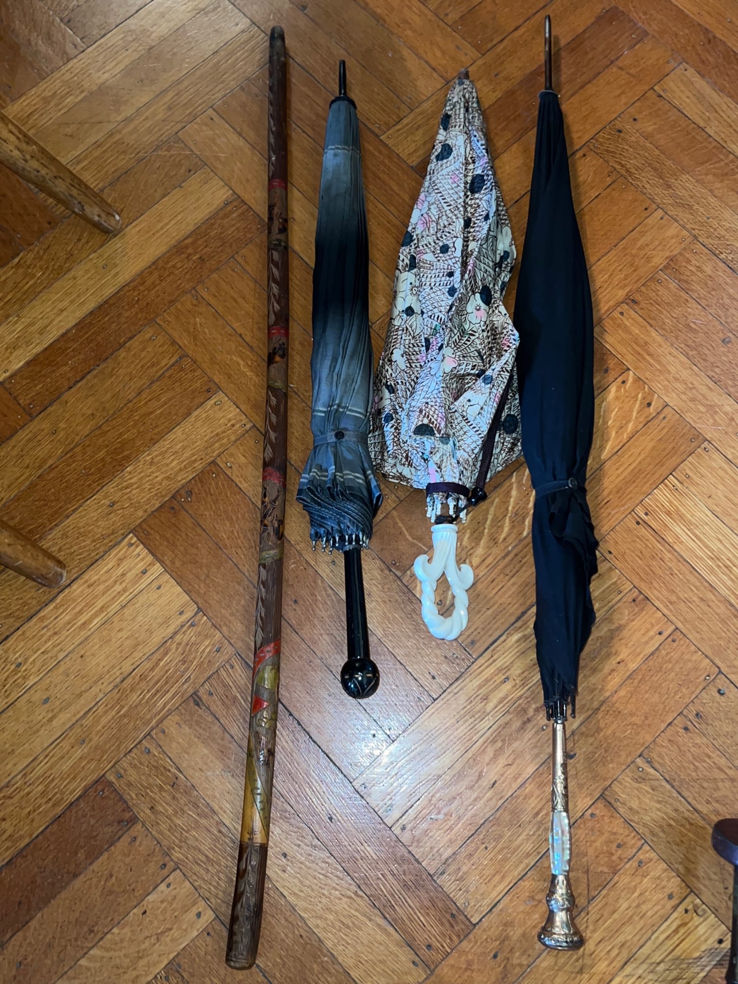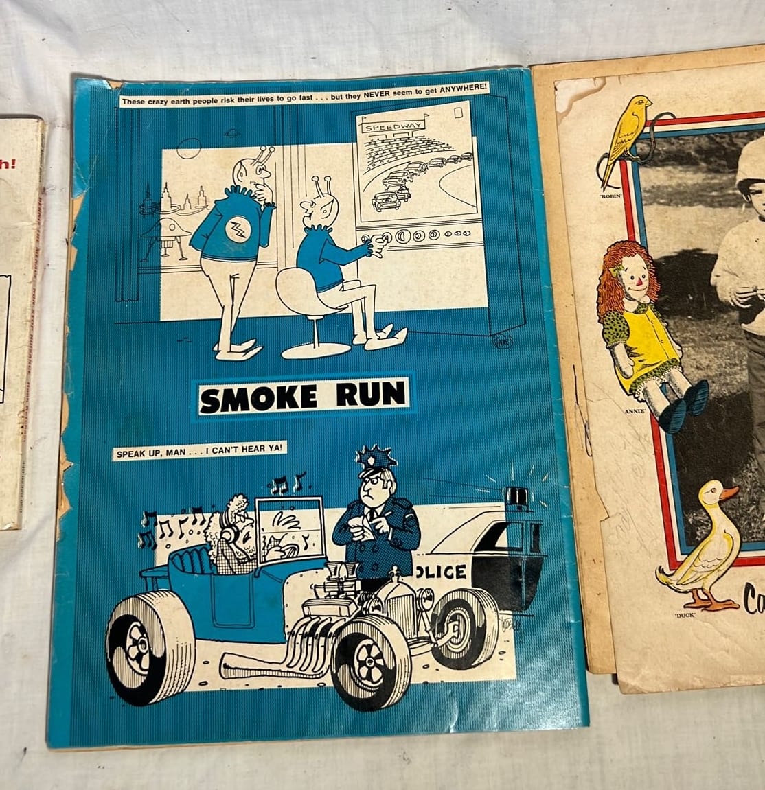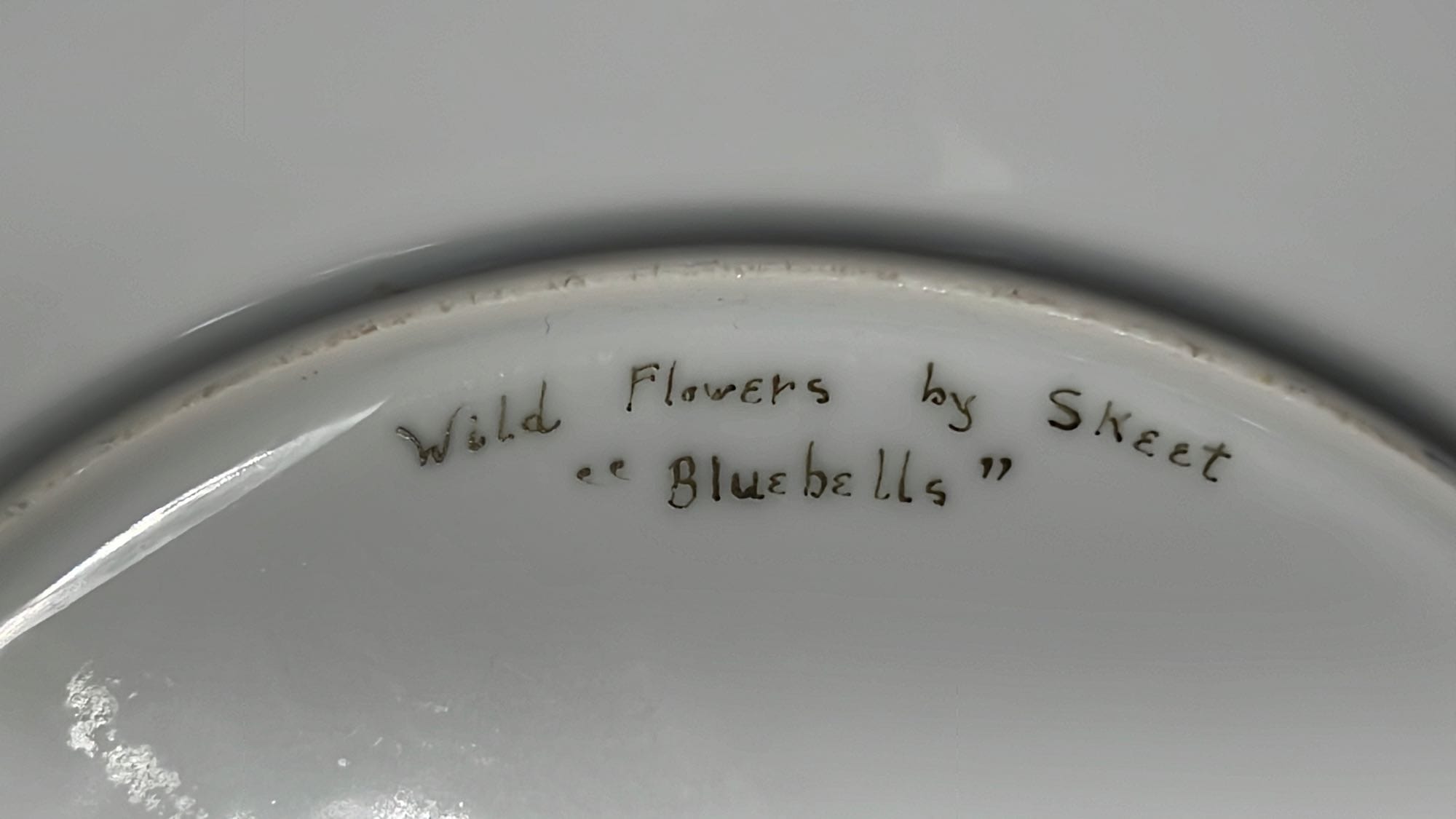 106 Gibson Blue Glass Lid 2.5” • Clear Ball No. 10 Lid 2.25” • Vintage Letter Opener • Brown Funeral Home Thermometer Advertisement 6.5” • Peacock Feathers 16”