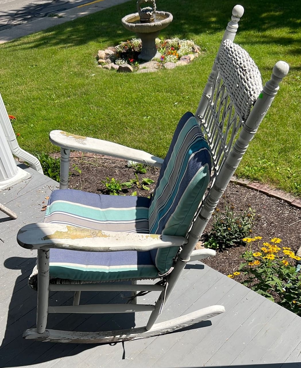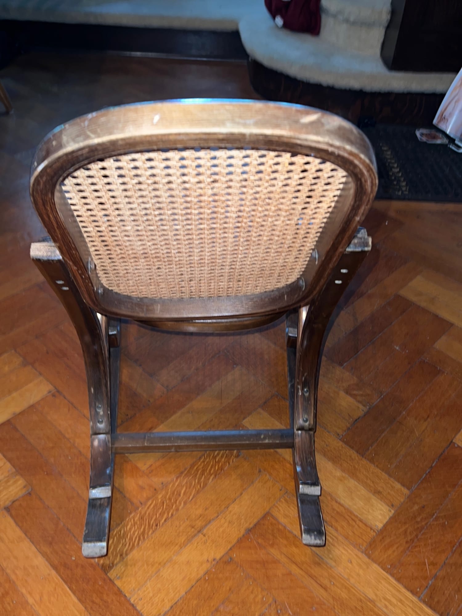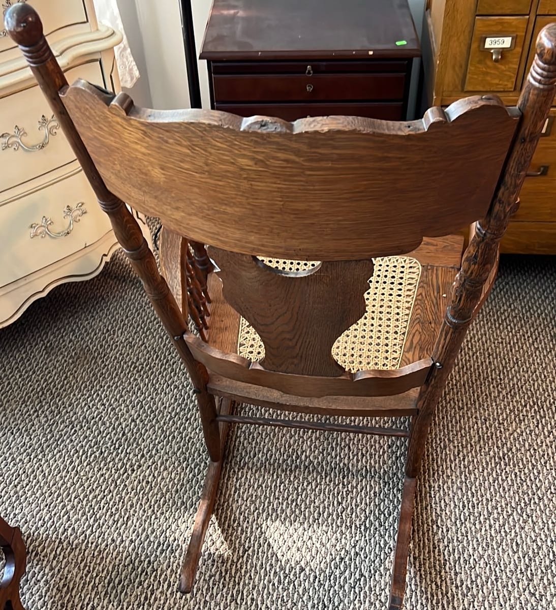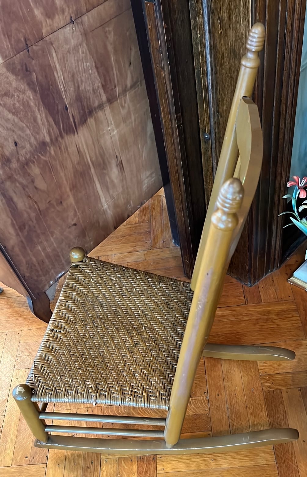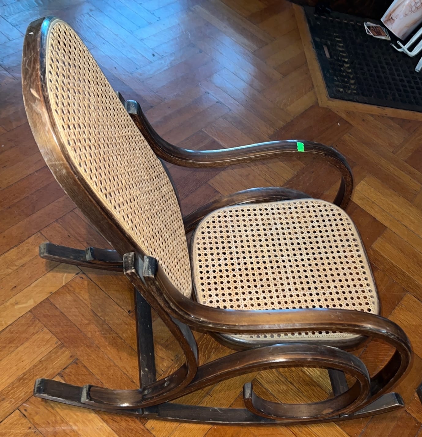 100 Vintage Wicker Bottom Rocking Chair 17.25” Seat height 14”