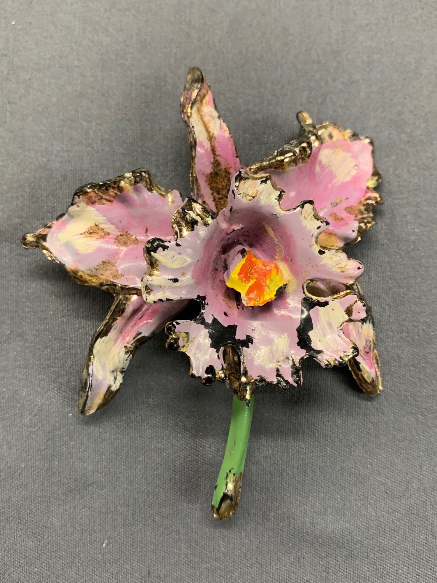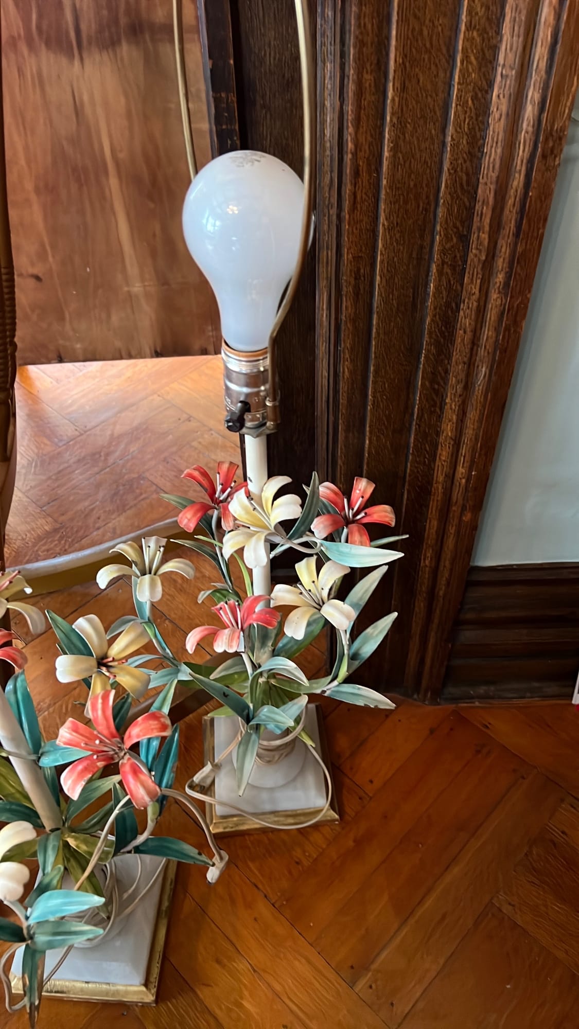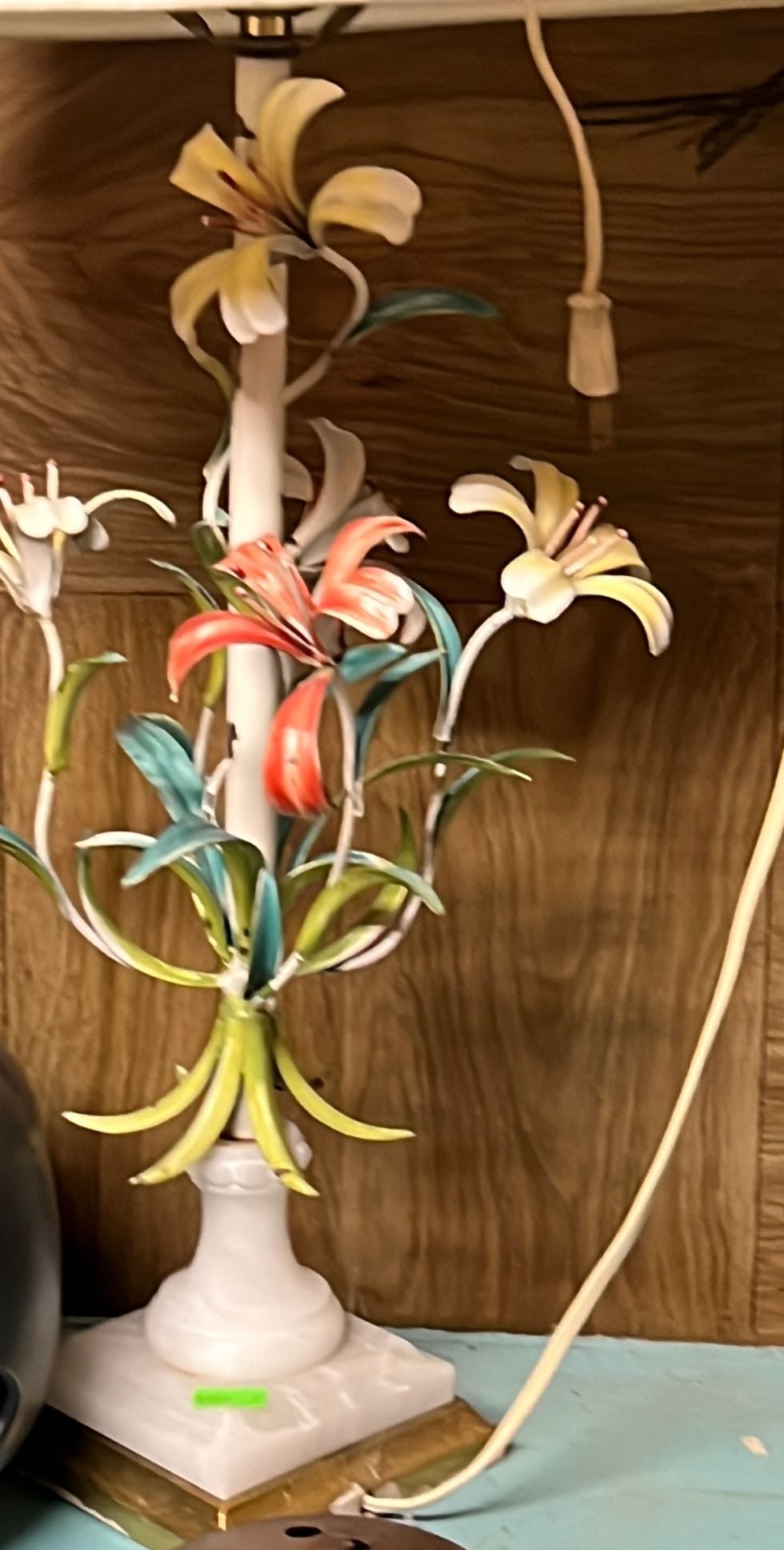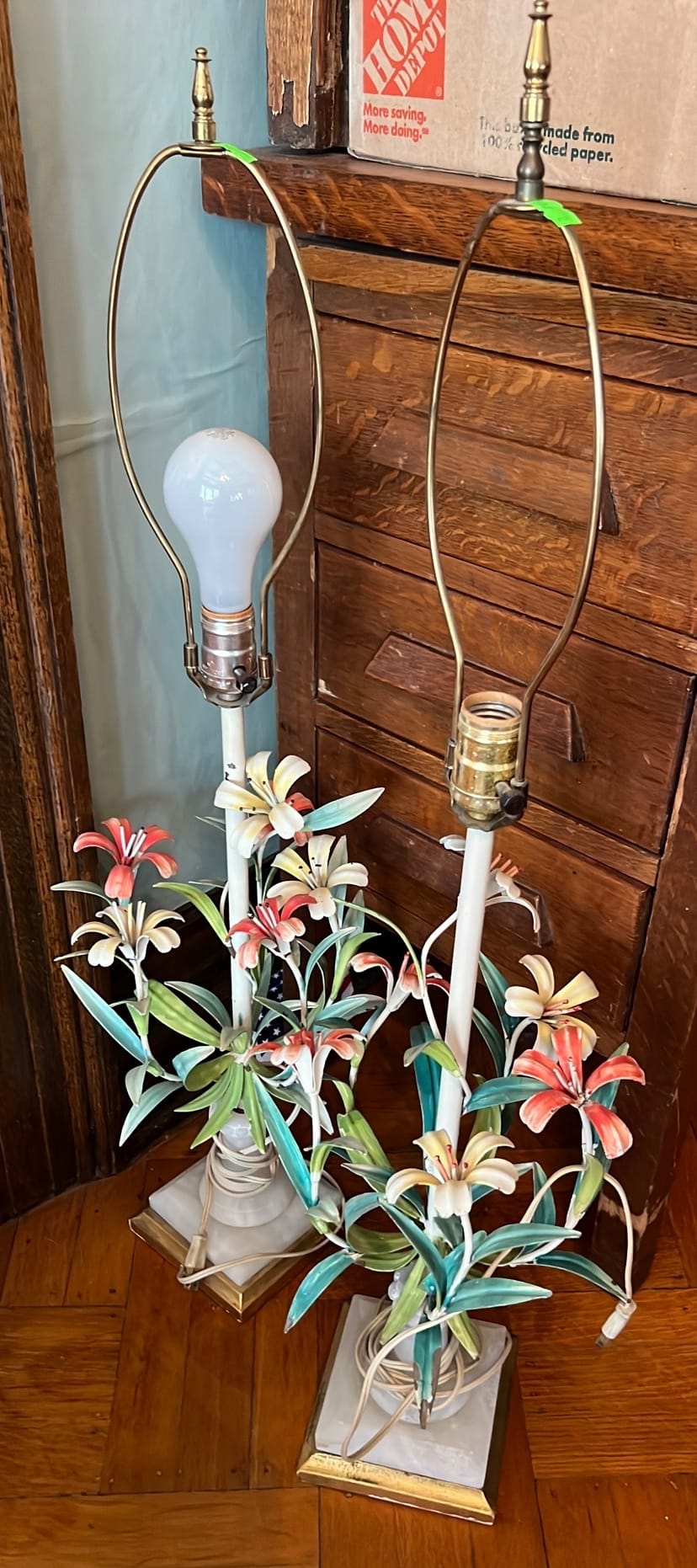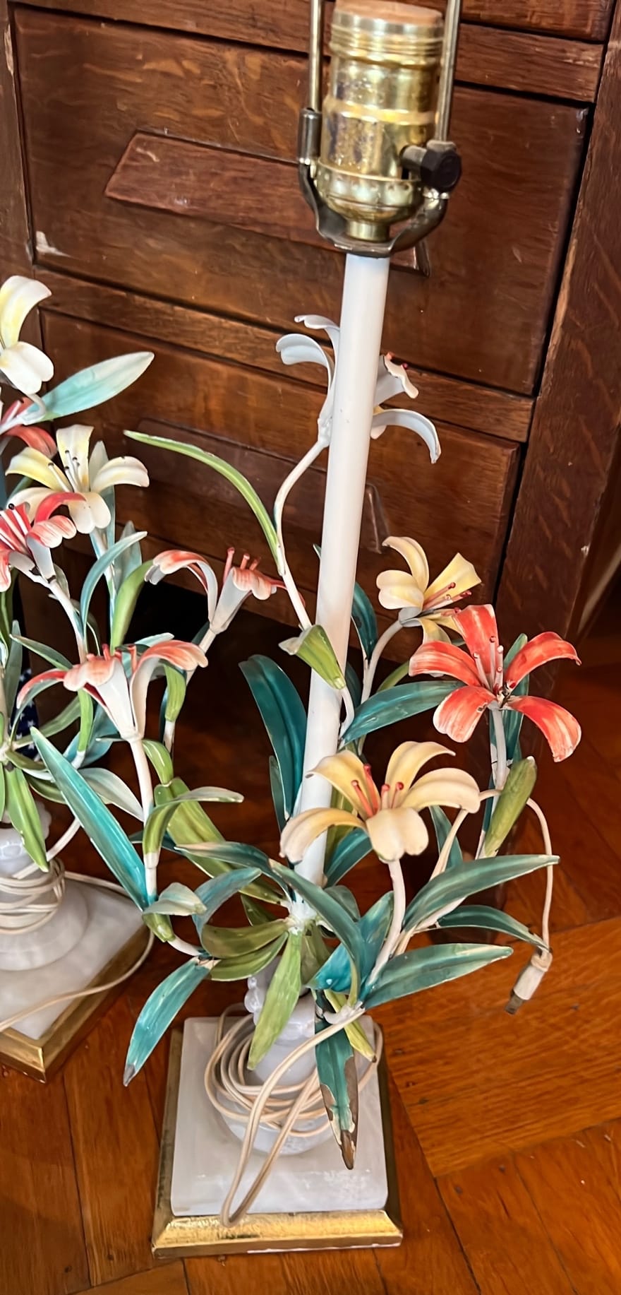 102 Pair of Vintage Italian Hand Painted Tole Floral Lamps 20.25”