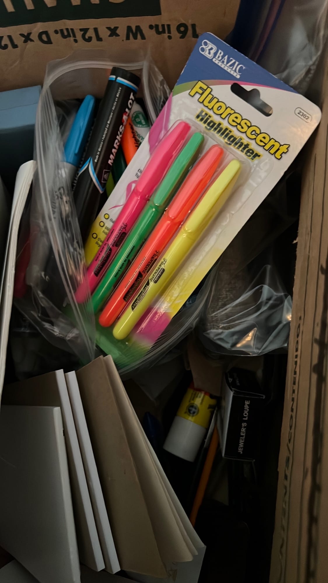 104 Organizers 8.5”x6”x25”, 10.75”x3”x6.5 “ • Markers • Pens • Paper • Umbaugh Tablets • misc