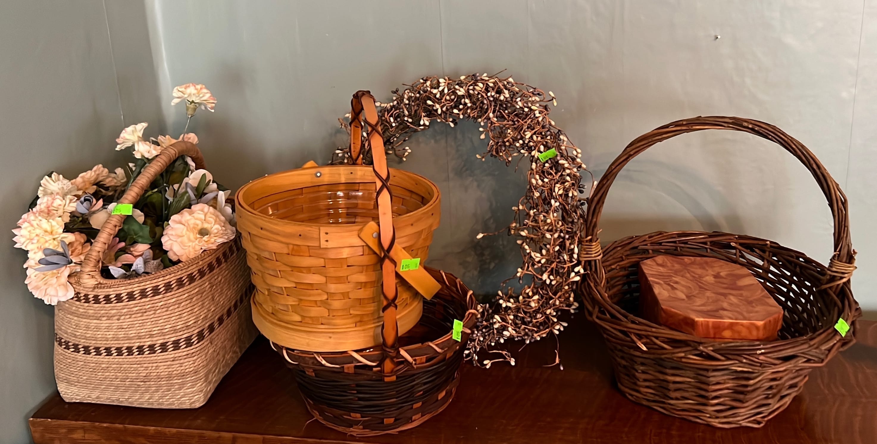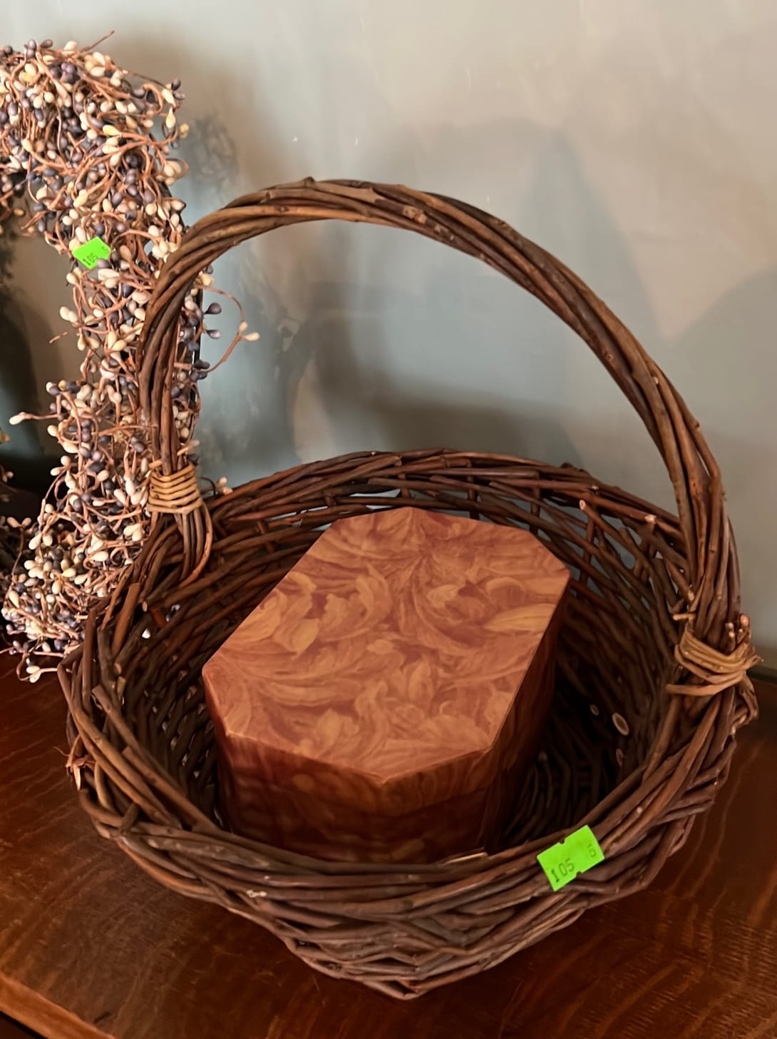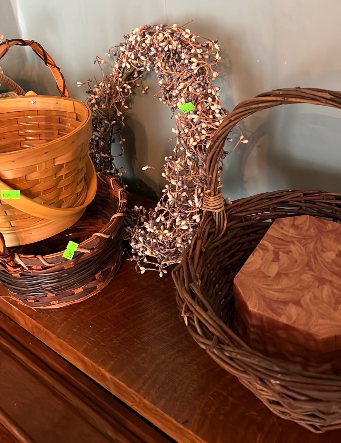 105 Basket assortment 8.5”, 9”, 11”, 11.5 • Wreath 15” • Decorative Box 7.5”