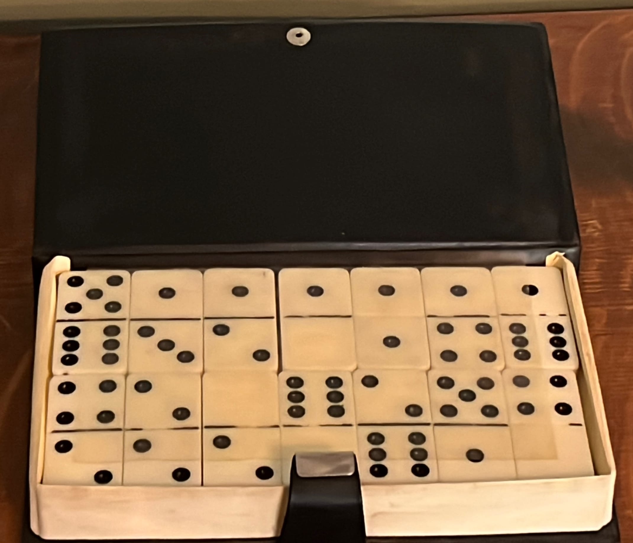 107 Dominoes in case 4.5”x1.25”x7.75”