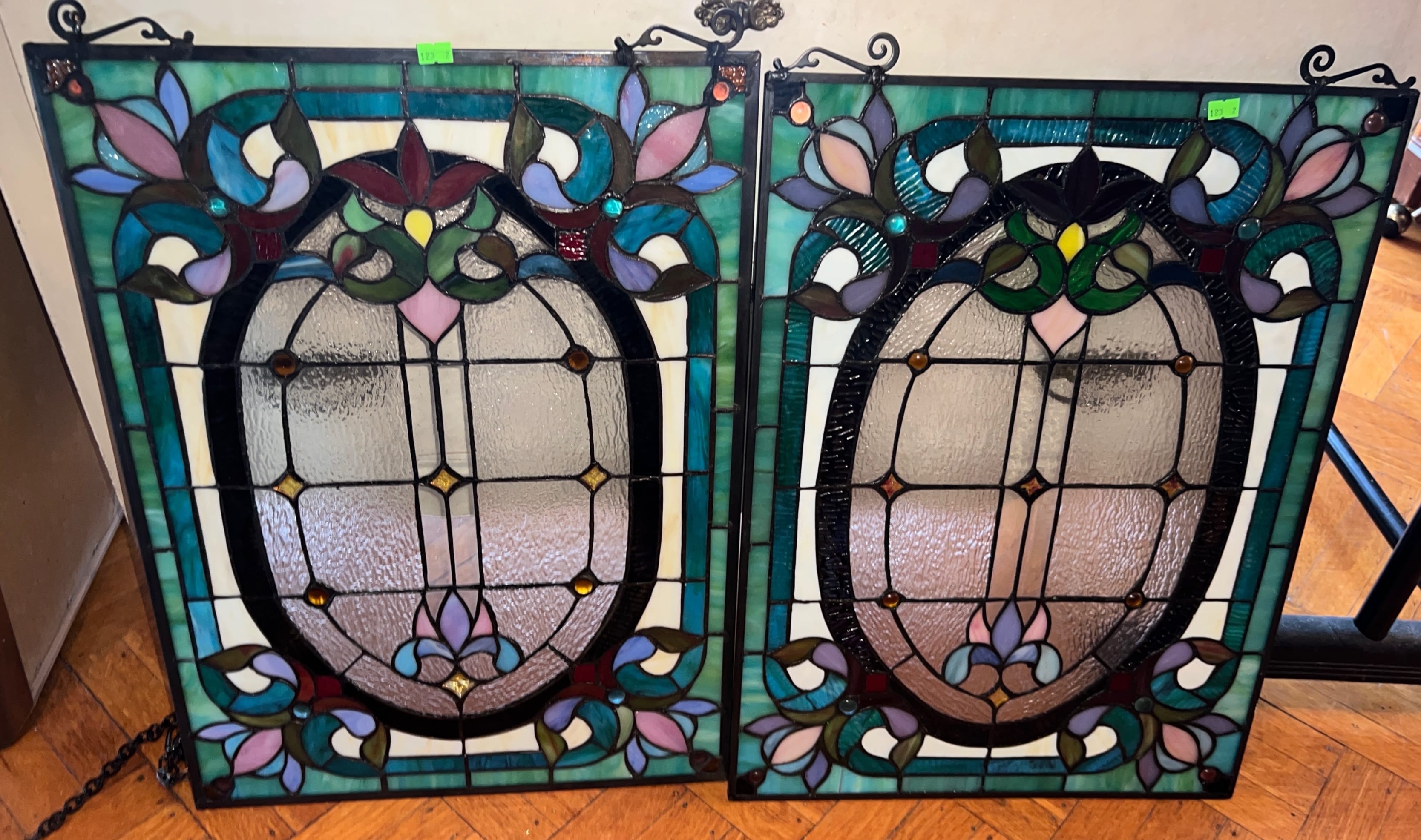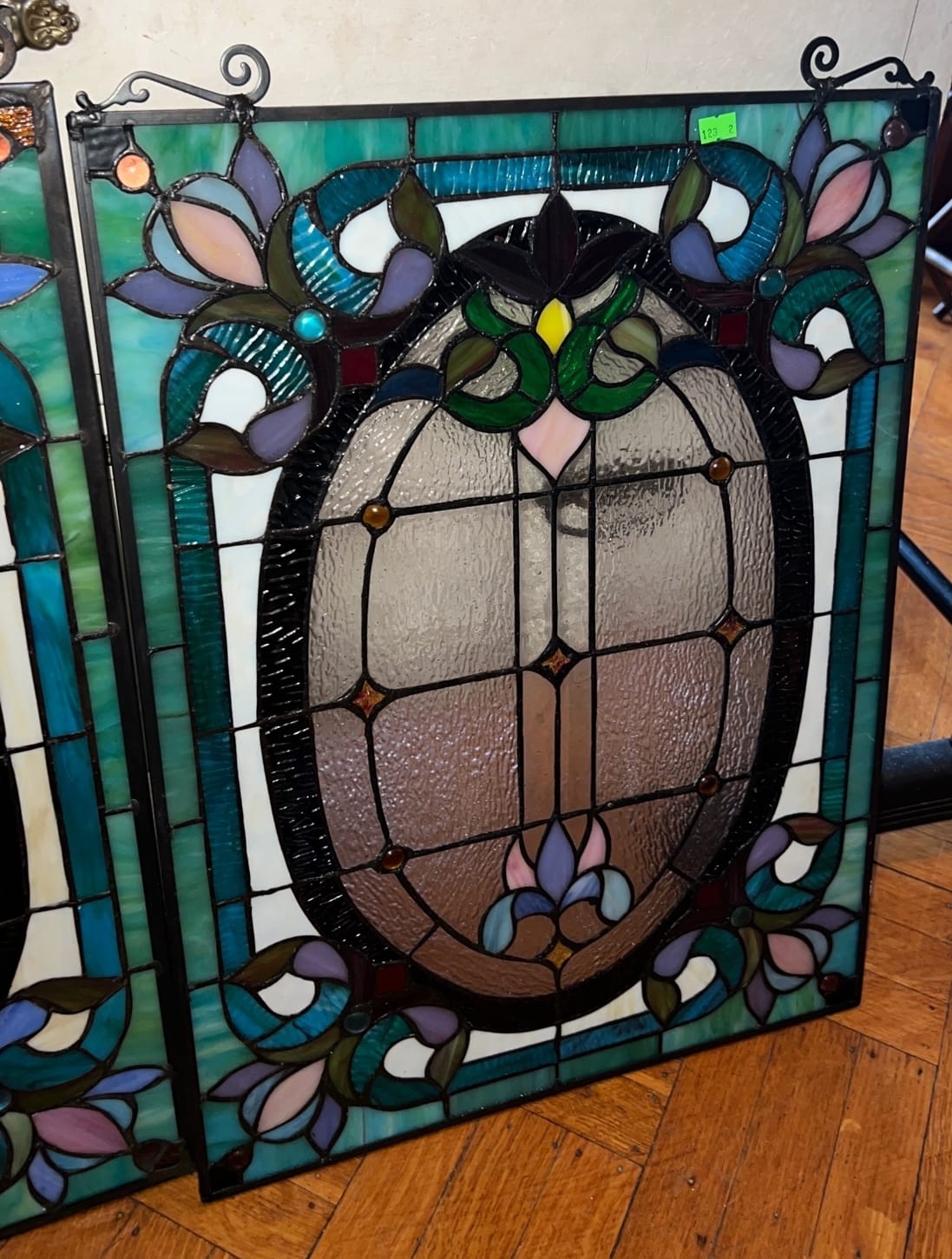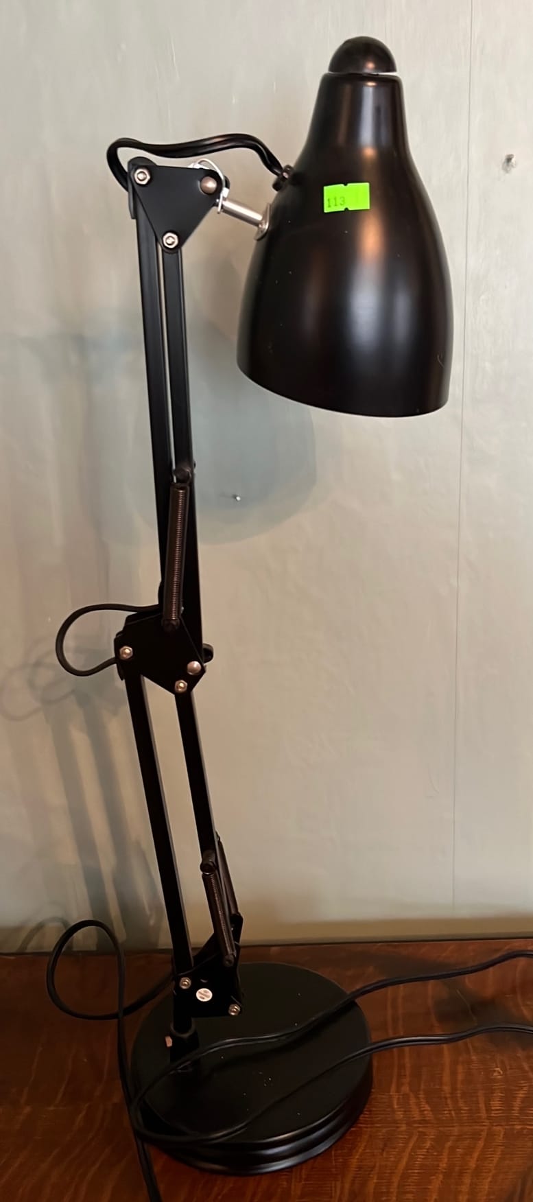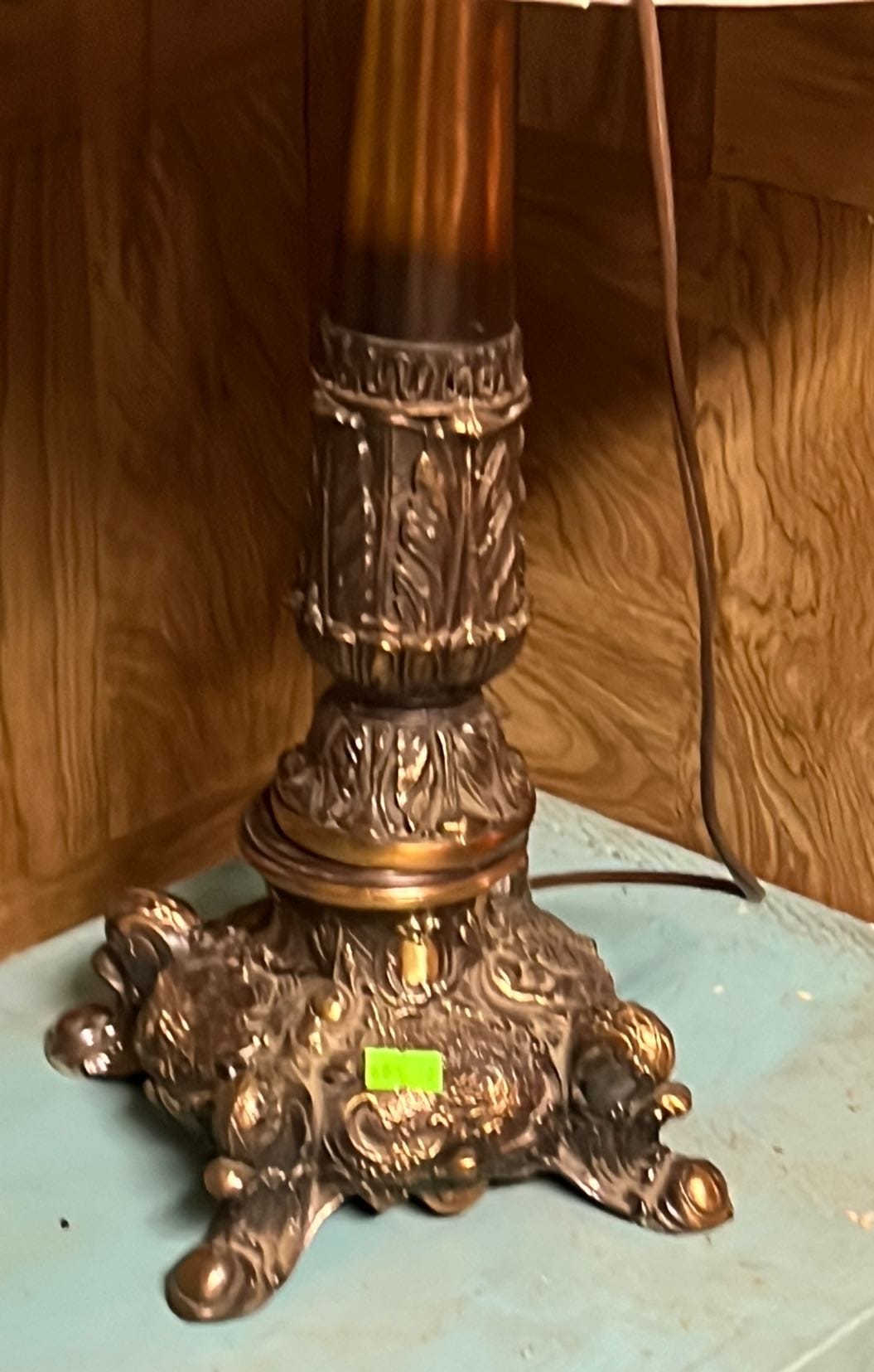 112 Vtg Floral Tiffany Style Ting Shen Gooseneck Table, Desk Lamp. 22 in Tall