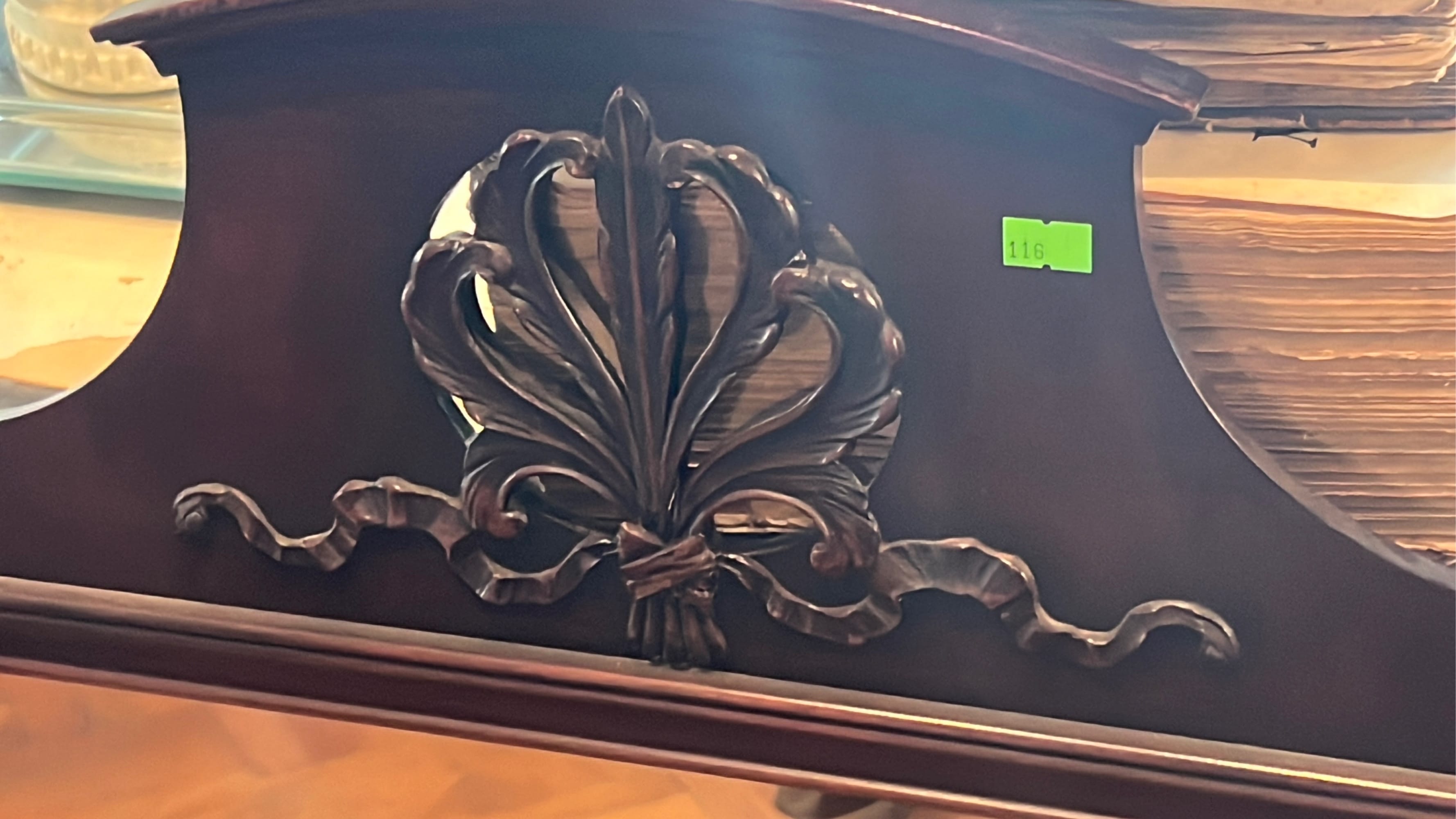 117 Vintage Ornate Wood Framed Beveled Mirror 38.25”x45”