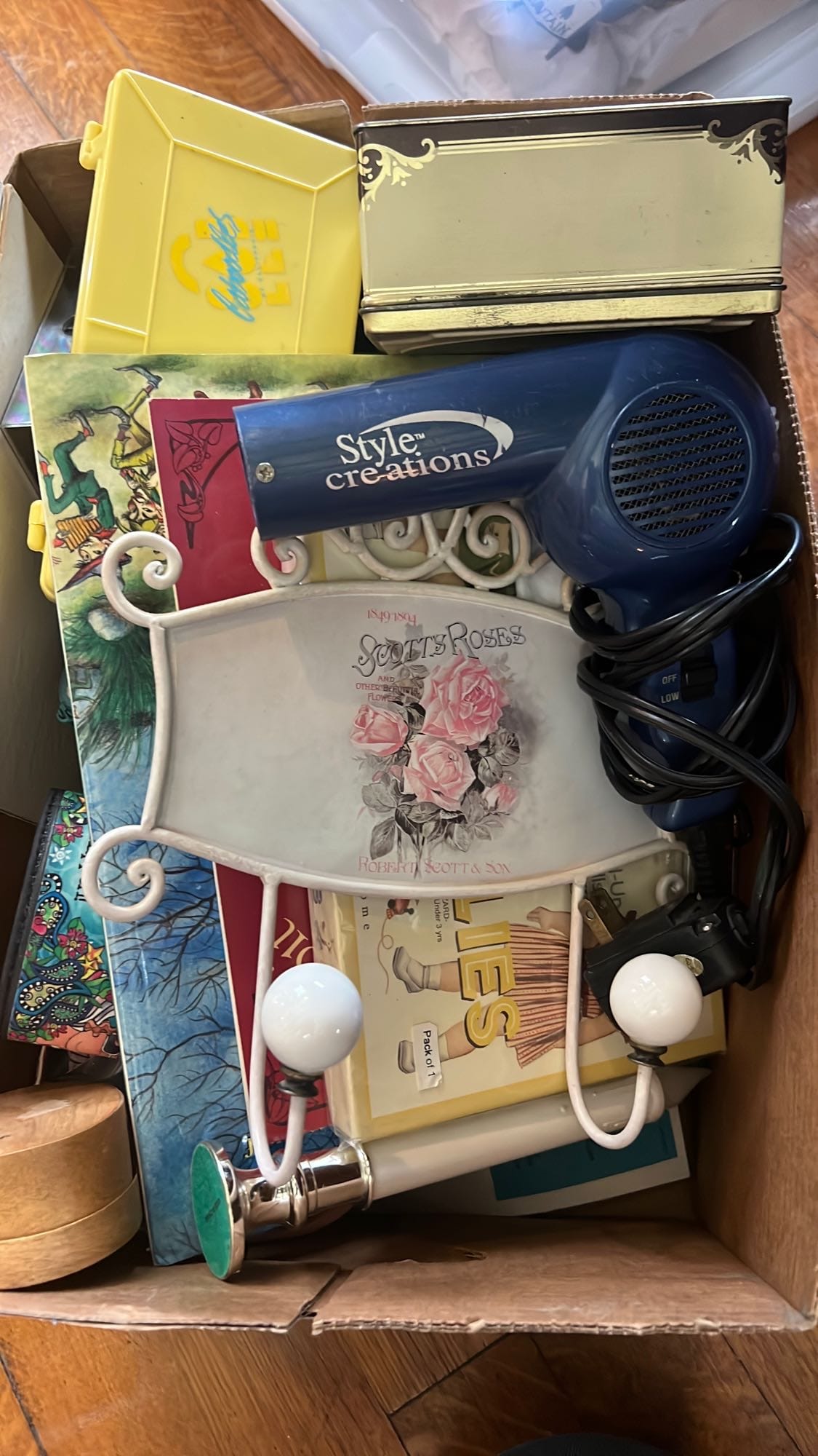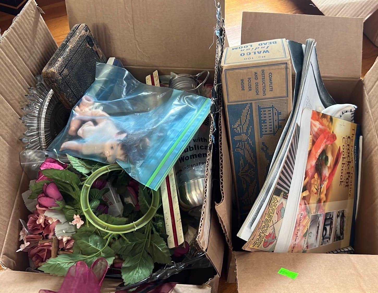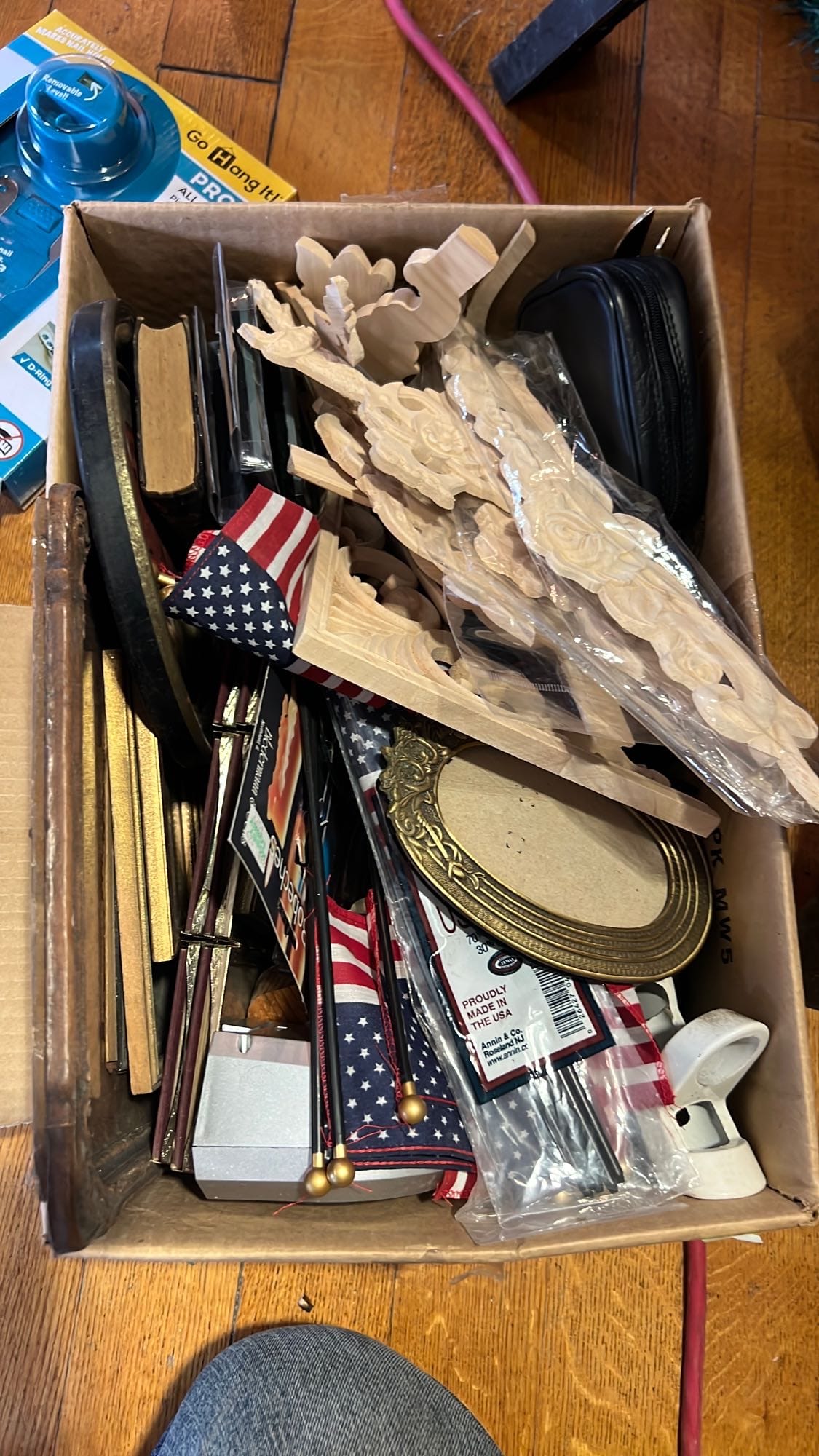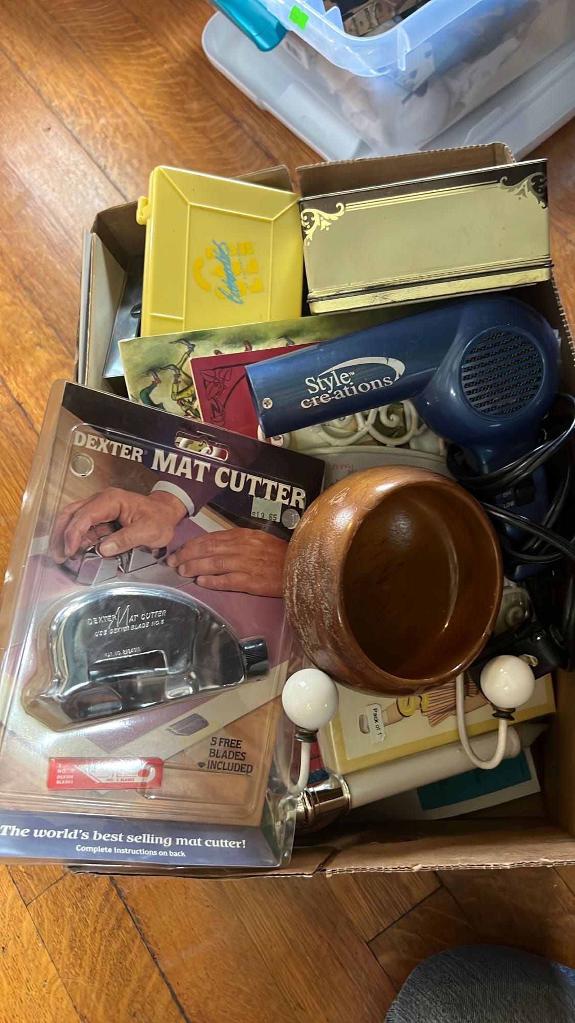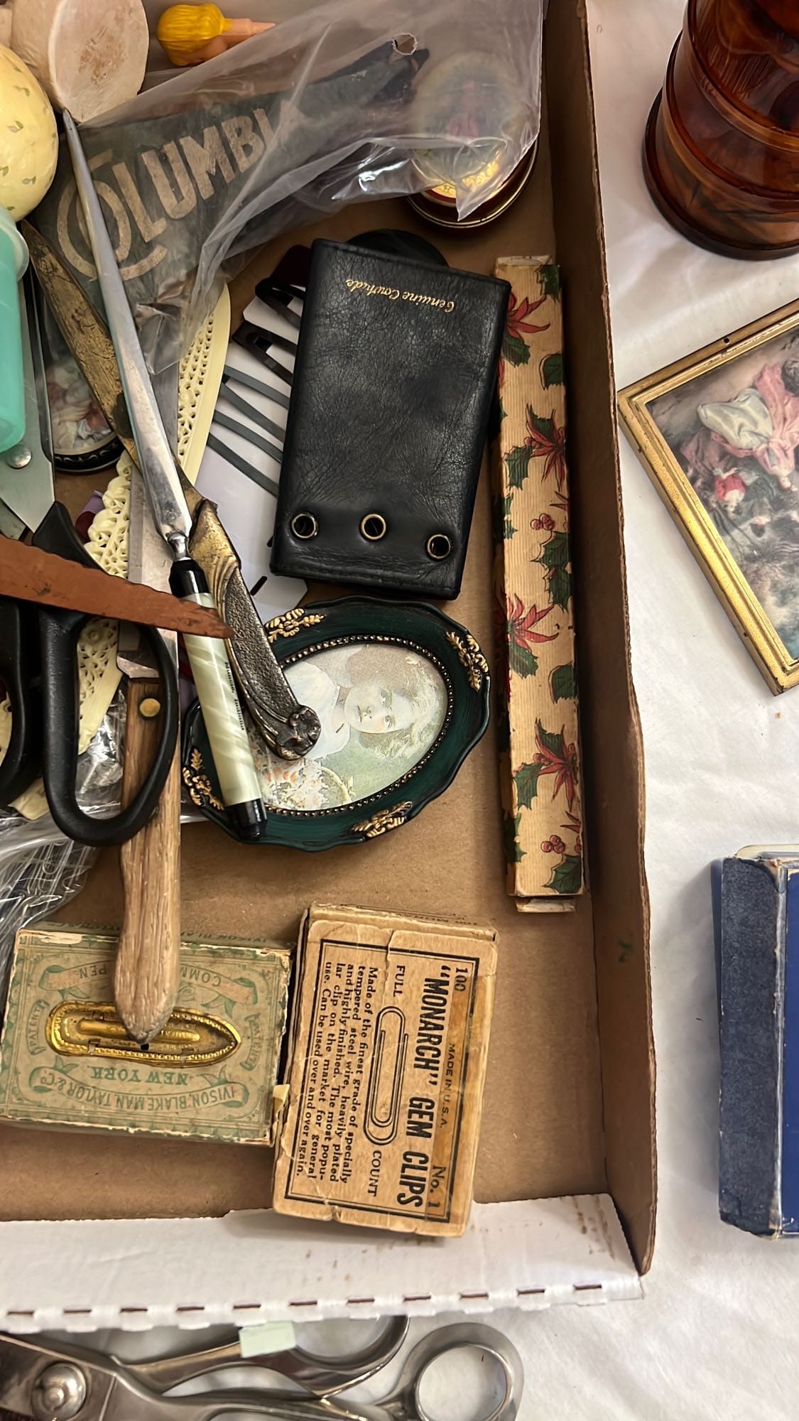 121 Picture & Frames Various sizes • Recipe assortment • The Leech Puzzle in box • Vintage Post Card • Brass Bird Dish 6.25” • Book assortment • misc