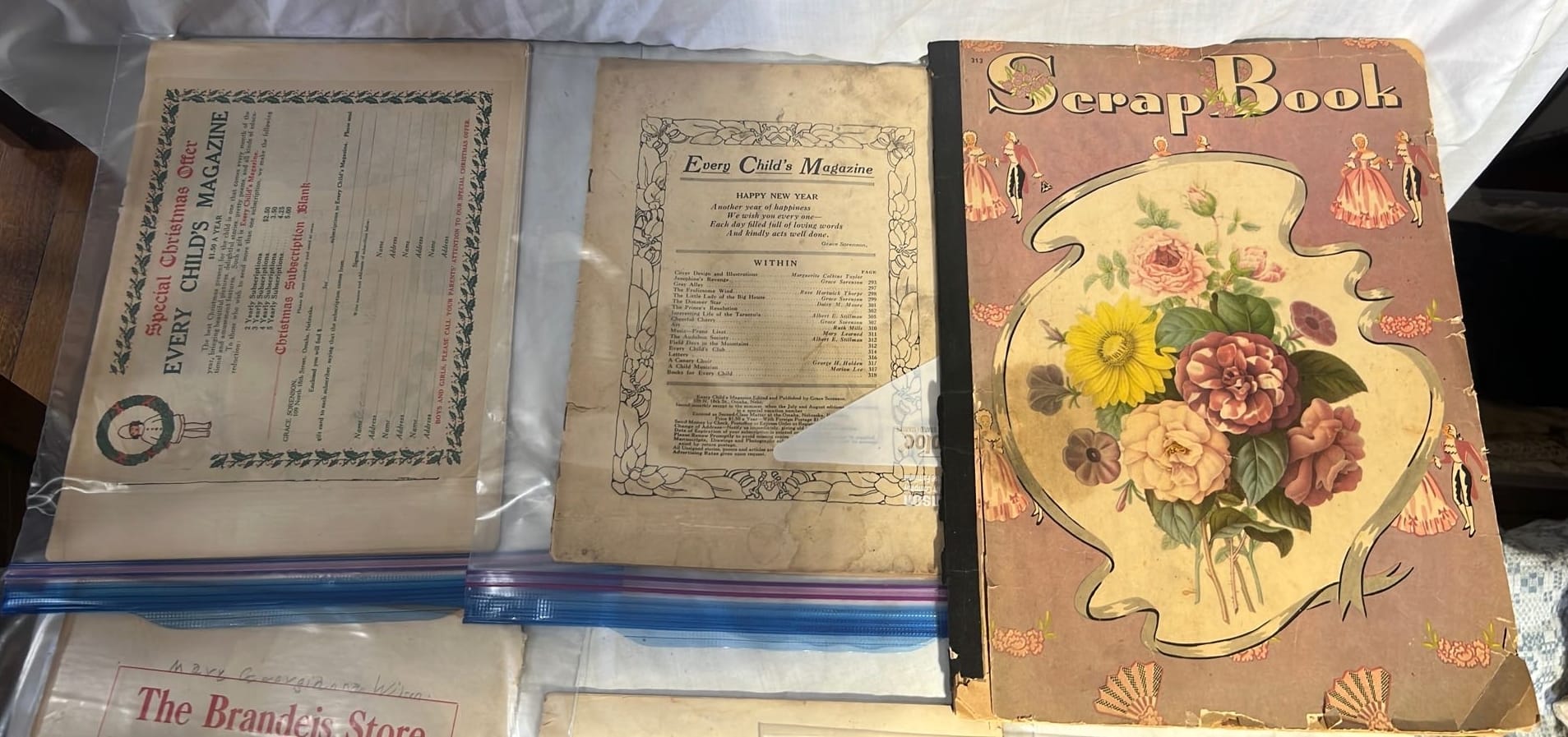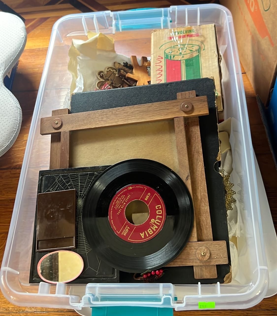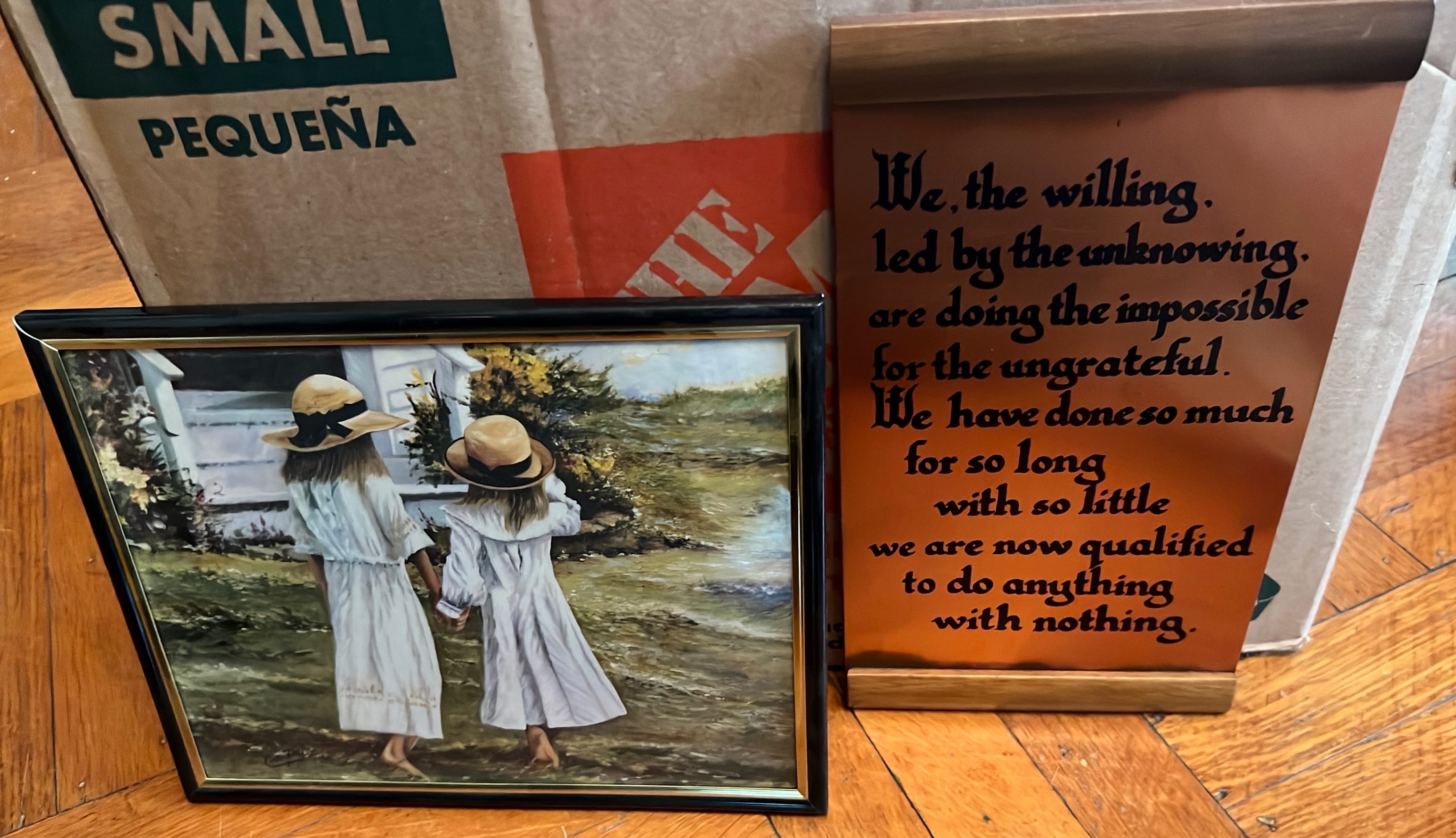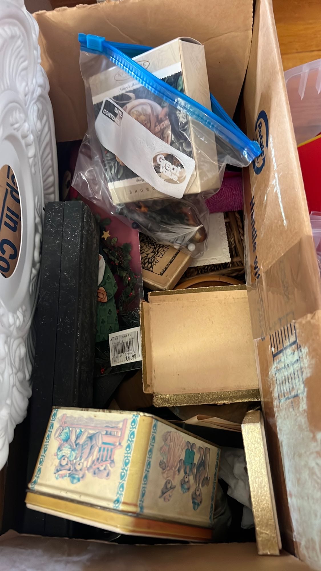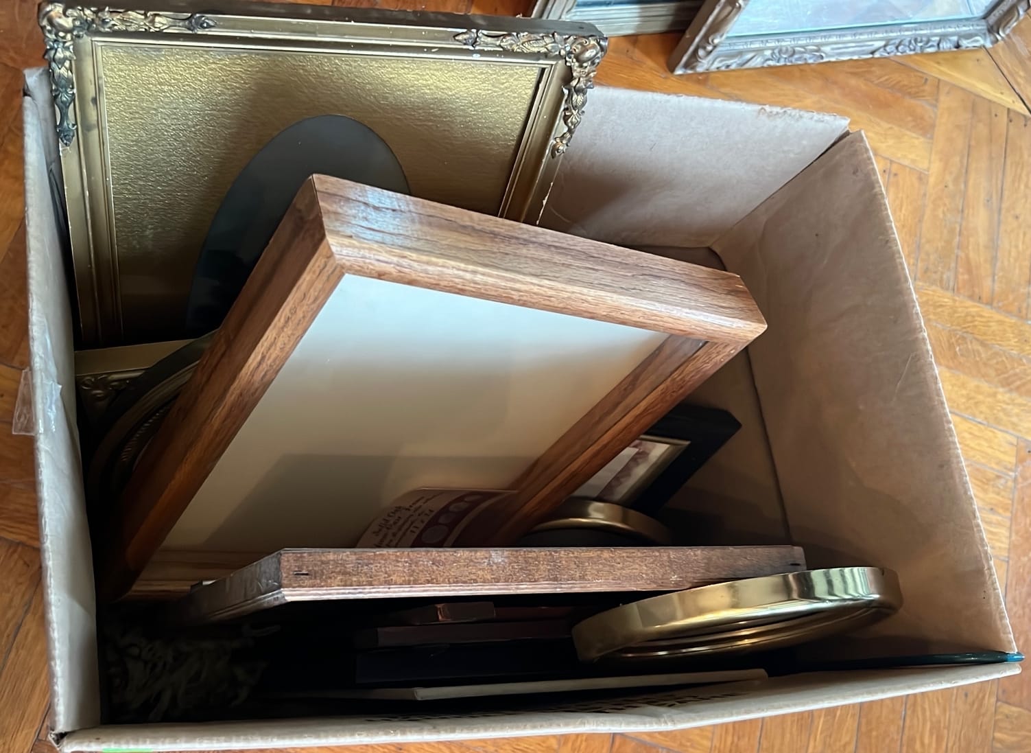 121 Picture & Frames Various sizes • Recipe assortment • The Leech Puzzle in box • Vintage Post Card • Brass Bird Dish 6.25” • Book assortment • misc