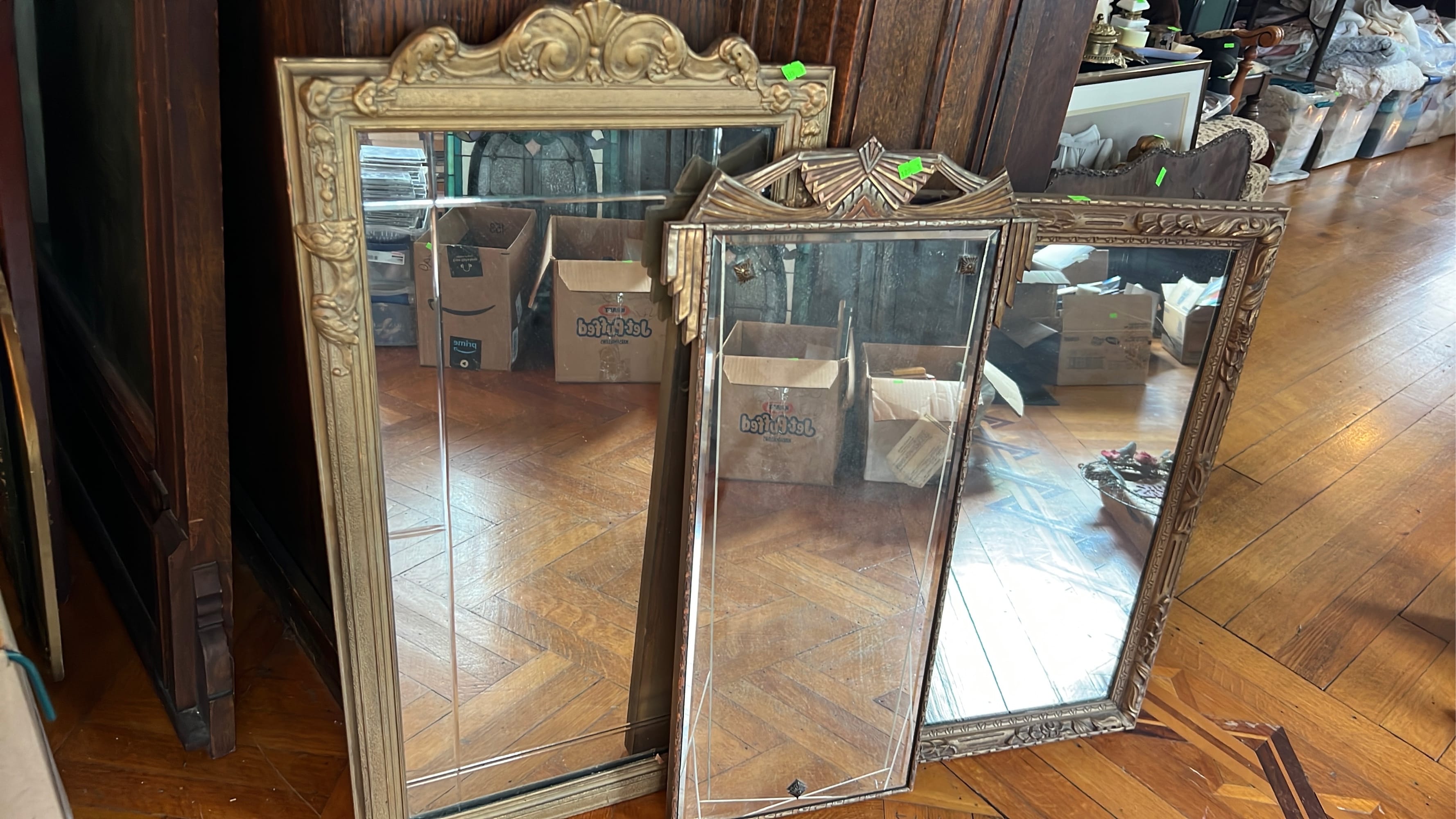 120 Three Ornate Framed Mirrors - One is Beveled glass 14.25”x29.5”, 19”x27.25”, 17.25”x33.5”