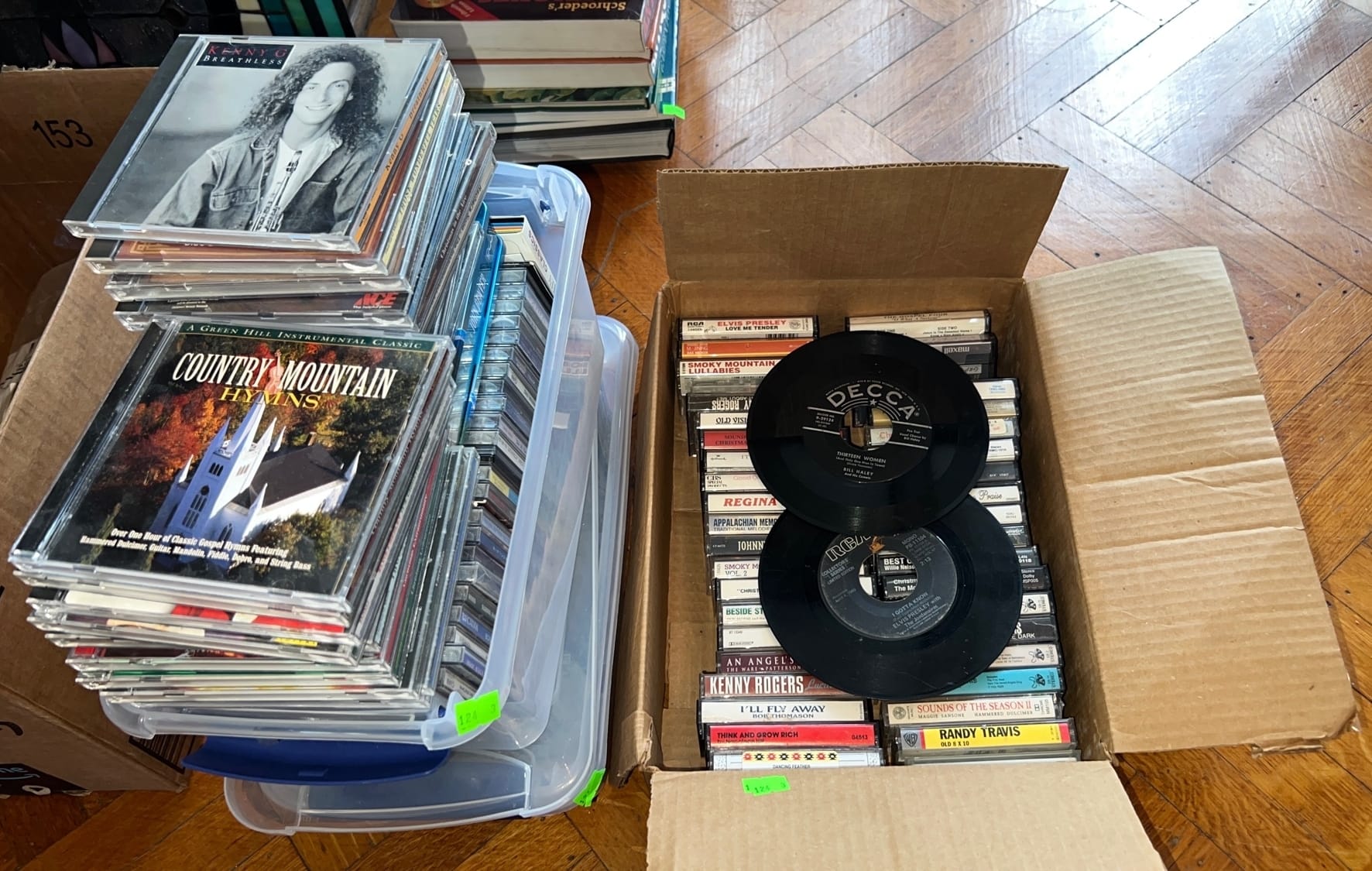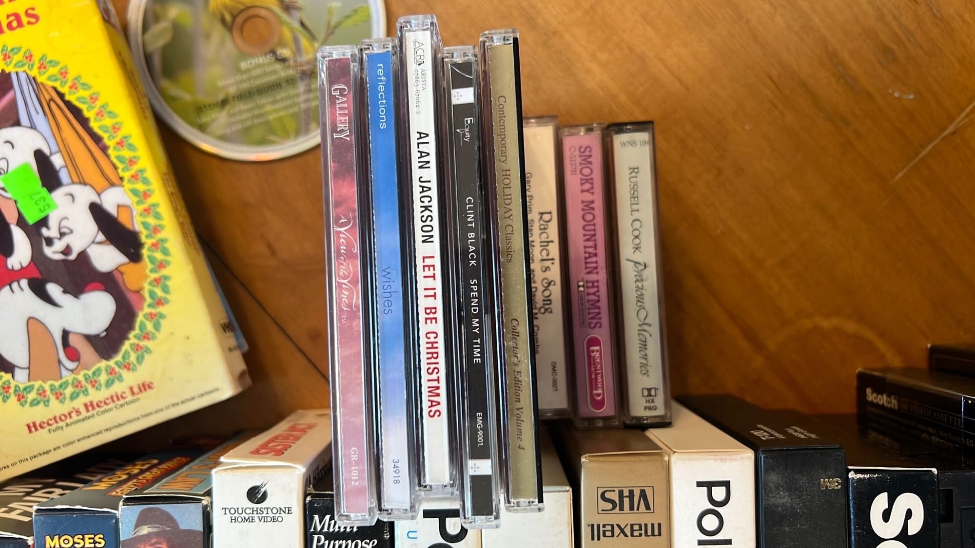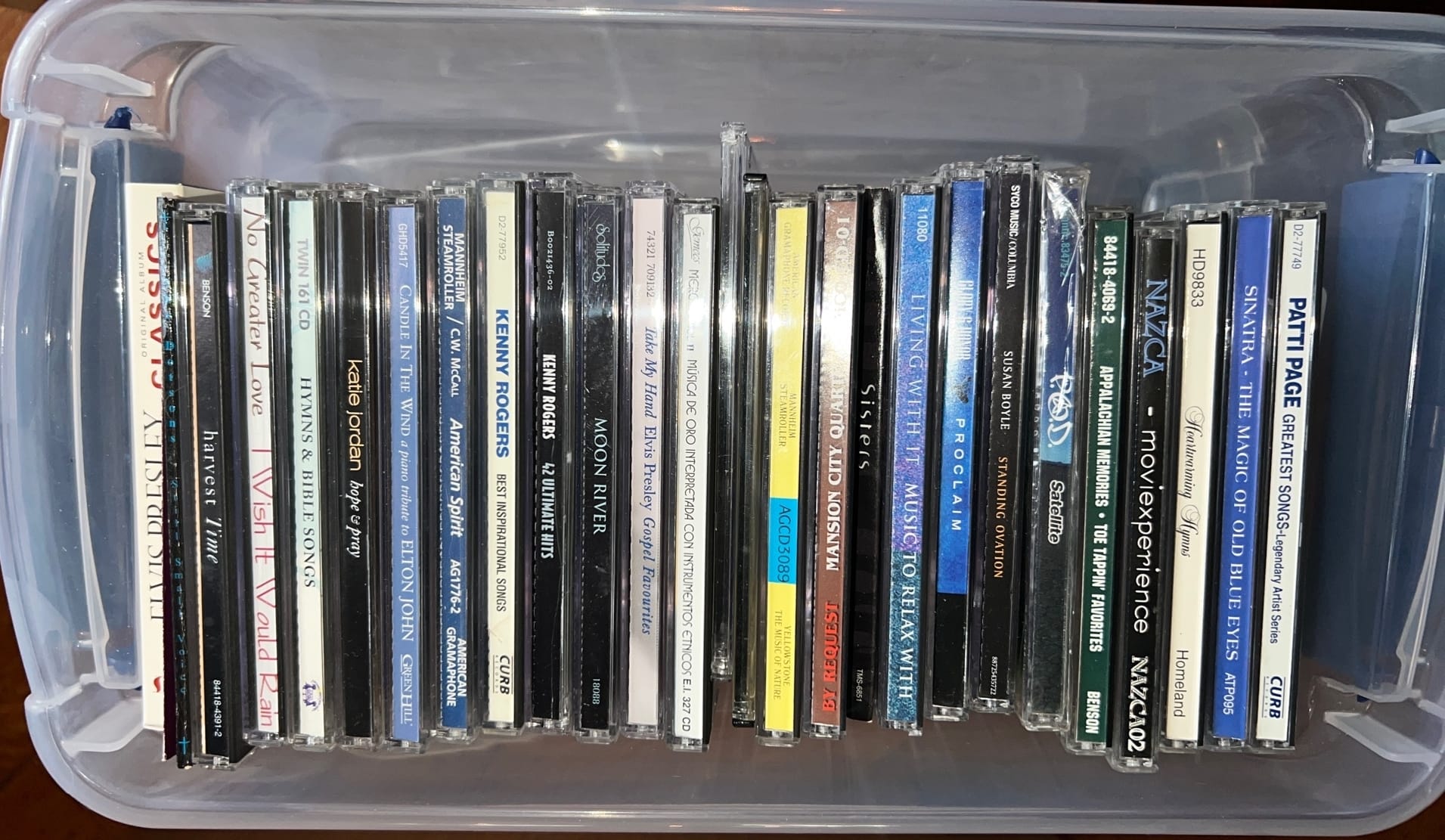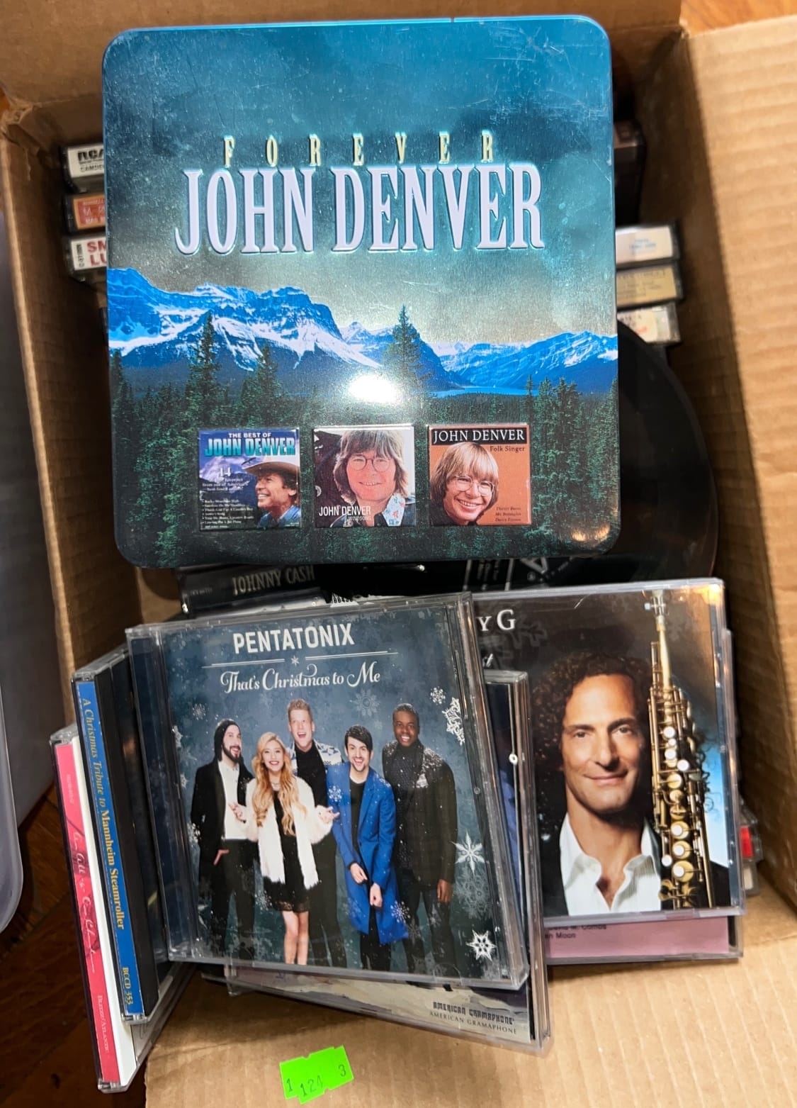 124 CD & Cassette assortment including - Kenny G • Those Wonderful Years • Mannheim Steamroller • Alan Jackson • Holiday Classics • Country Mountain Hyms • Randy Travis • Kenny Rogers • Burl Ives • Elvis Presley & More • Two Records Elvis Presley & Thirteen Women