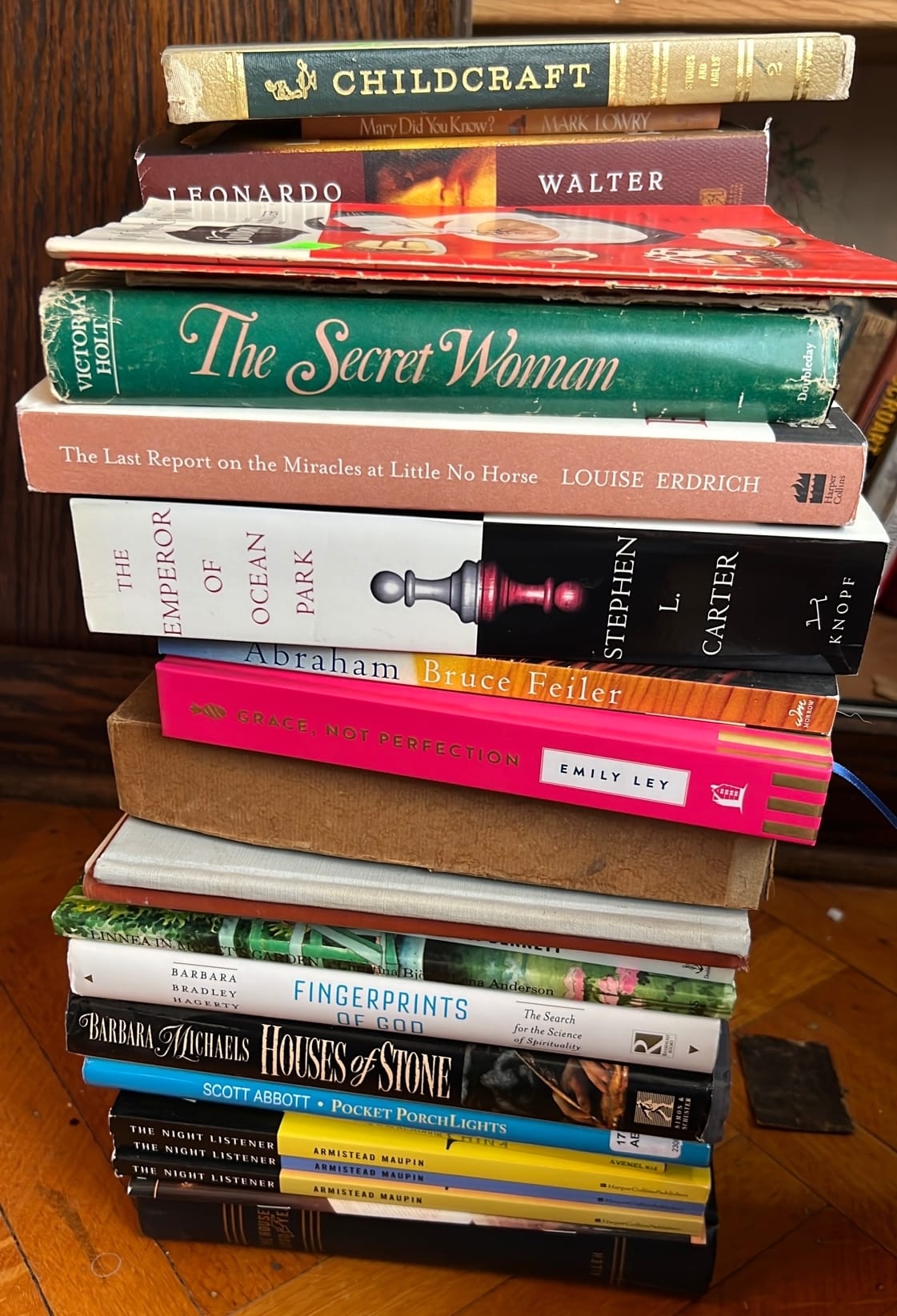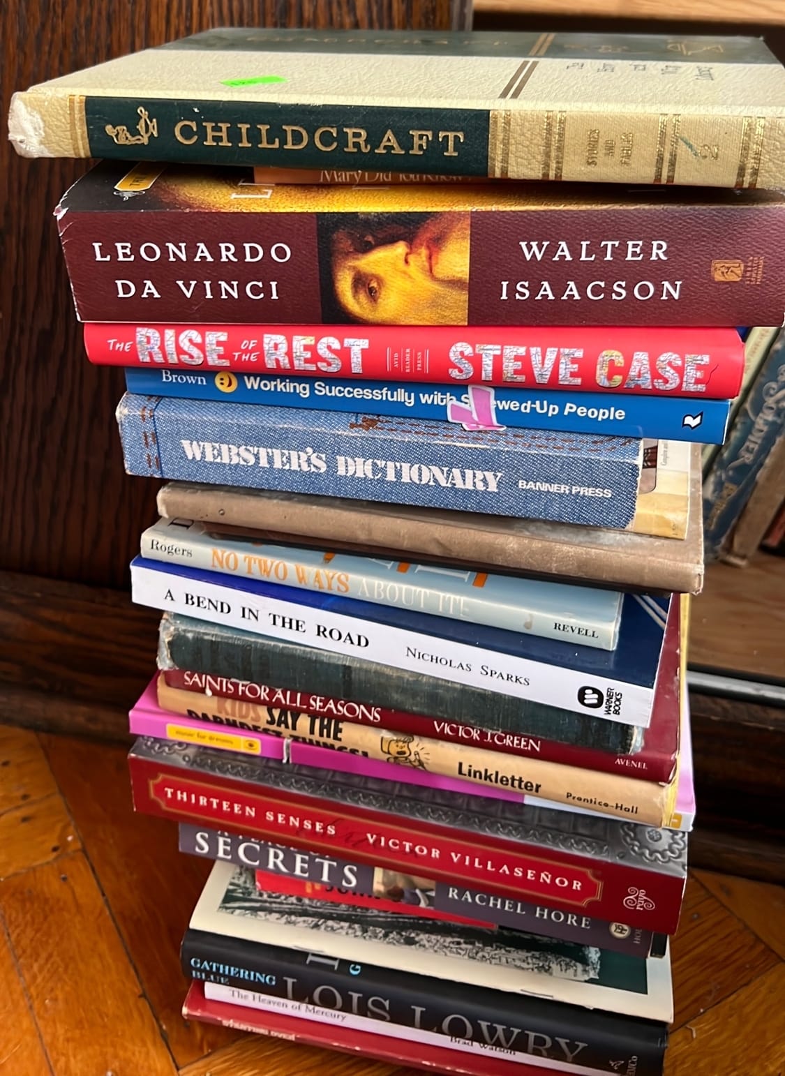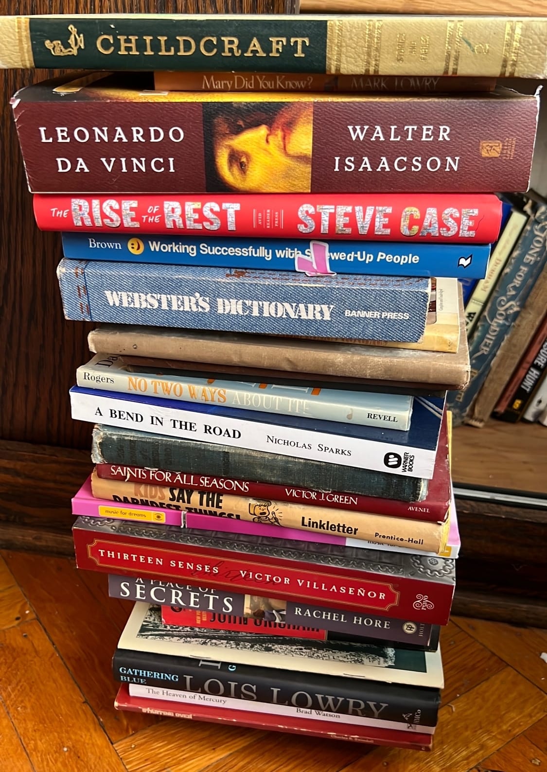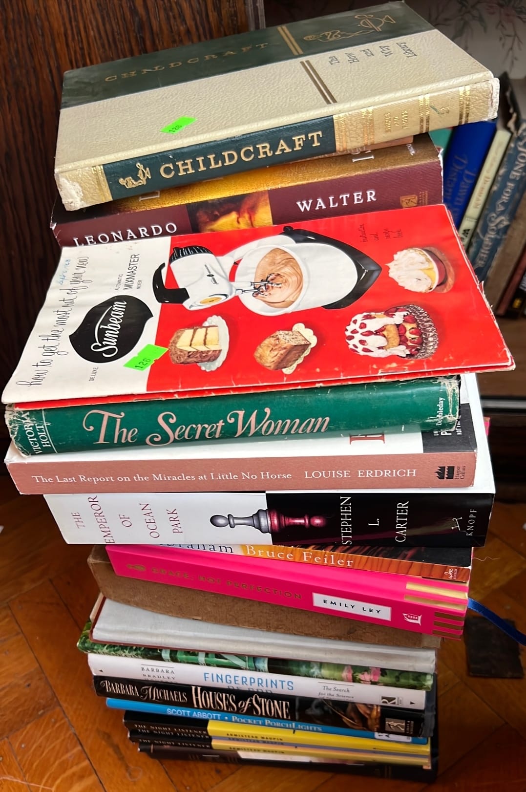 126 Book assortment including • Sunbeam Recipes • The Decret Woman • House of Stones • Fingerprints • The Night Listener • Childcraft • Mary Did You Know • The Rise of The Rest & more