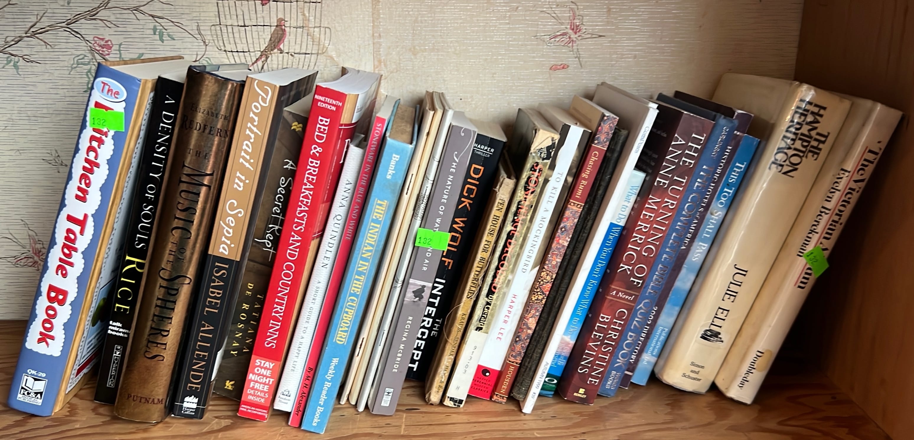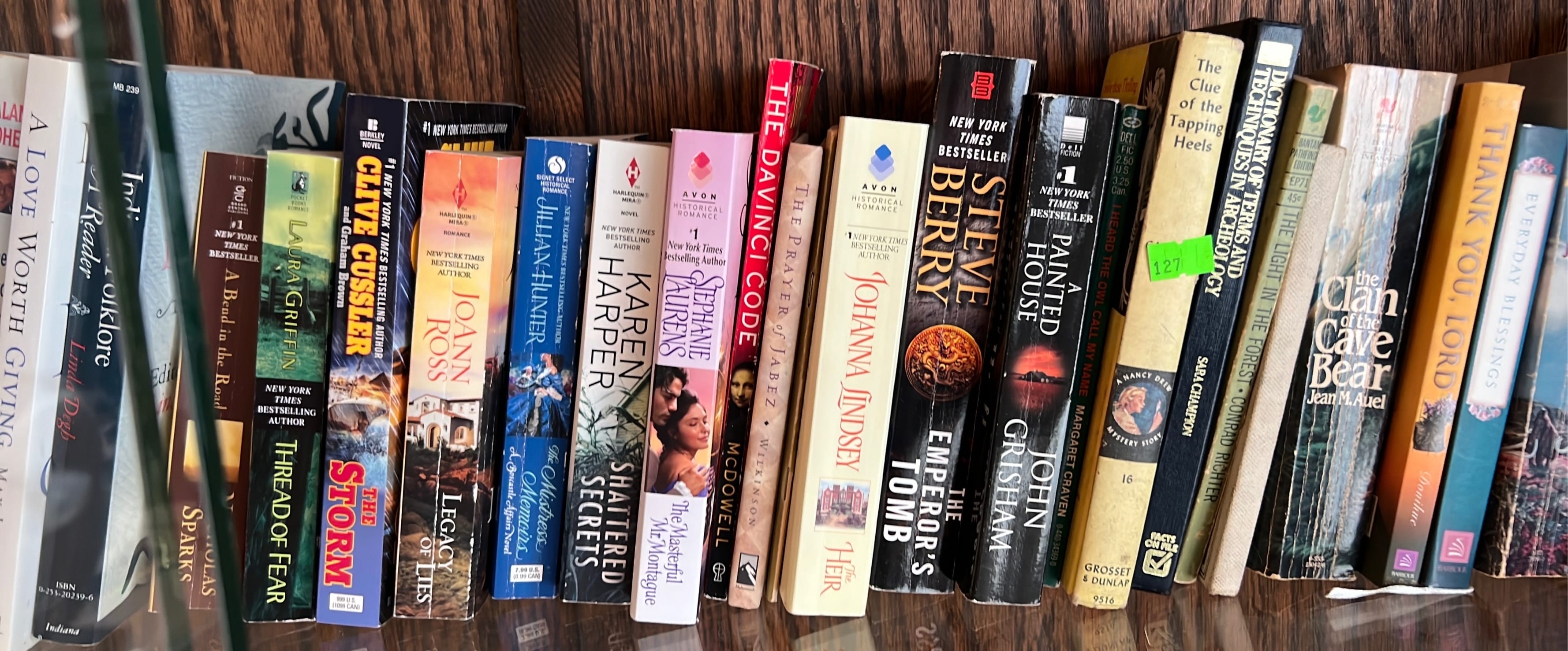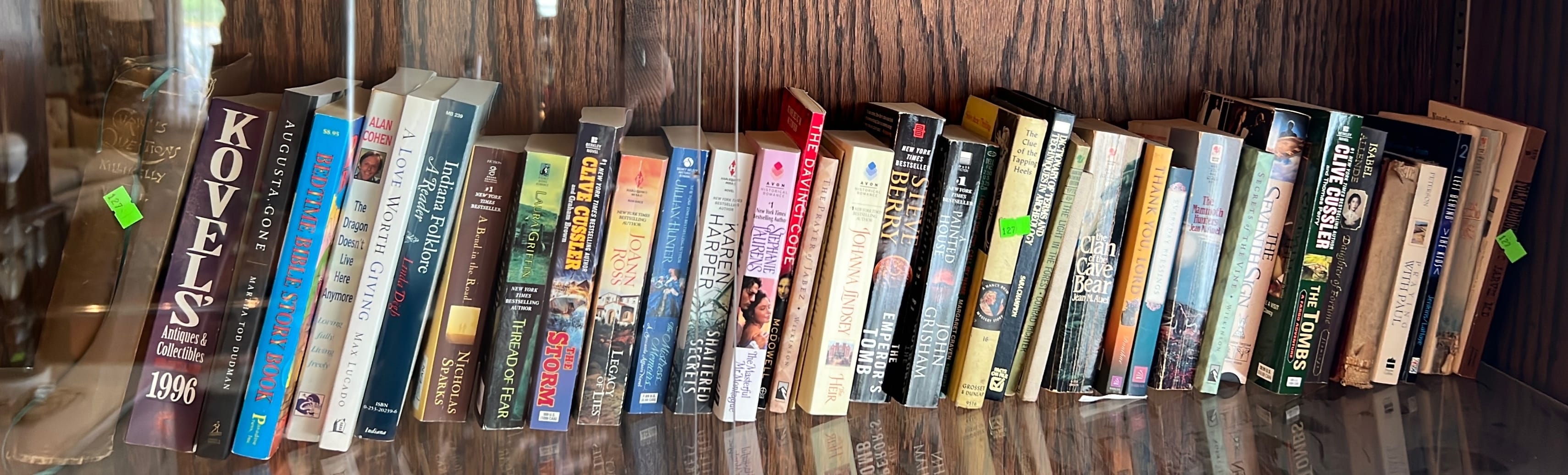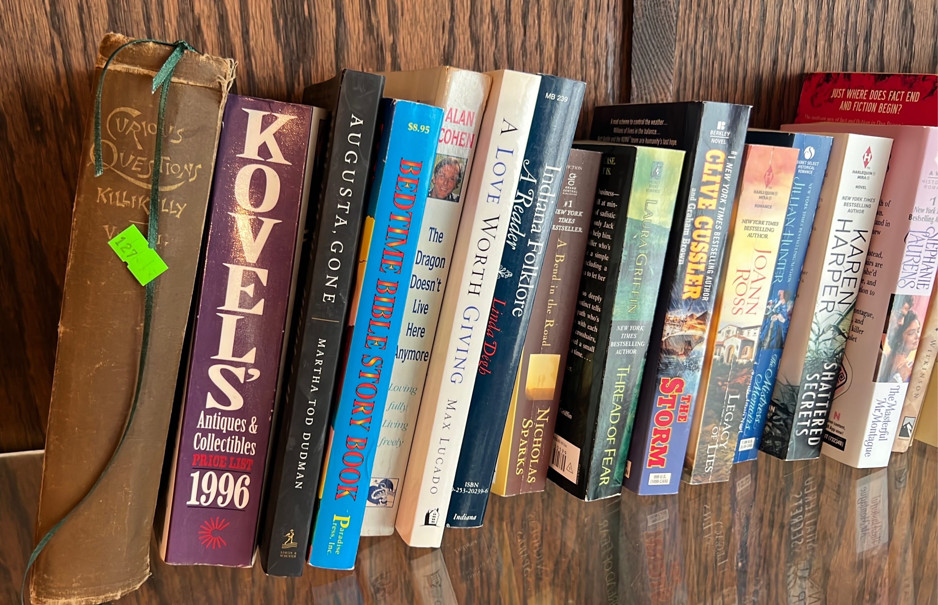 127 Book assortment including • Kovel’s • A Love Worth Giving • Legacy of Lies • Karen Harper • Johanna Lindsey • Clive Cussler • Steve Berry & more