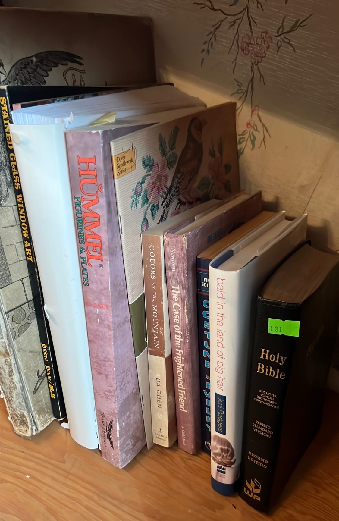131 Book assortment including - Hummel • The Gardener’s Weather Bible • Holy Bible • The Case Of The Frightened Friend & more