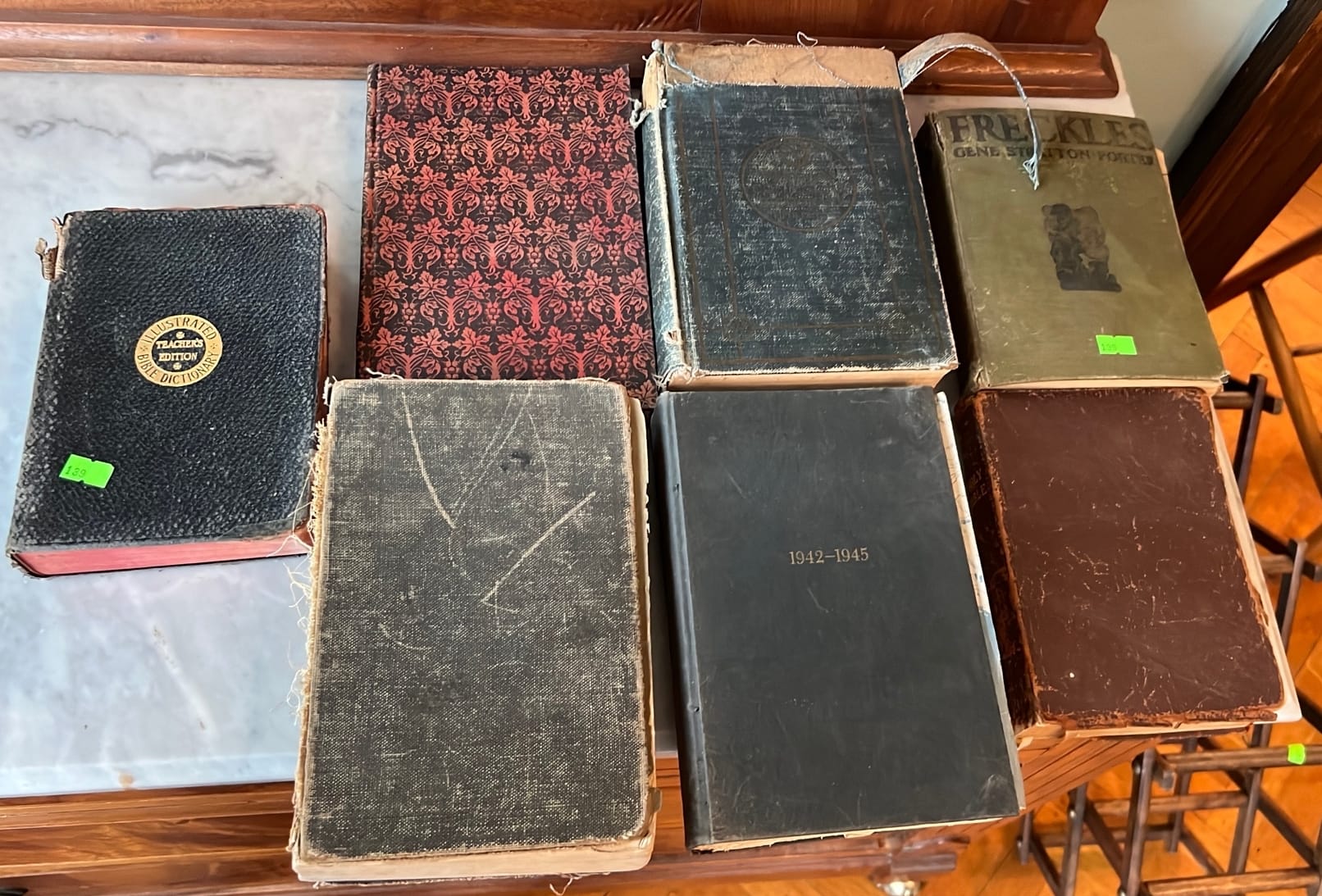 139 Vintage Book assortment including - Bible Dictionary • Freckles • Webster Dictionary • Rubaiyat Of Omar Khayyam • My Three Years With Eisenhower & more