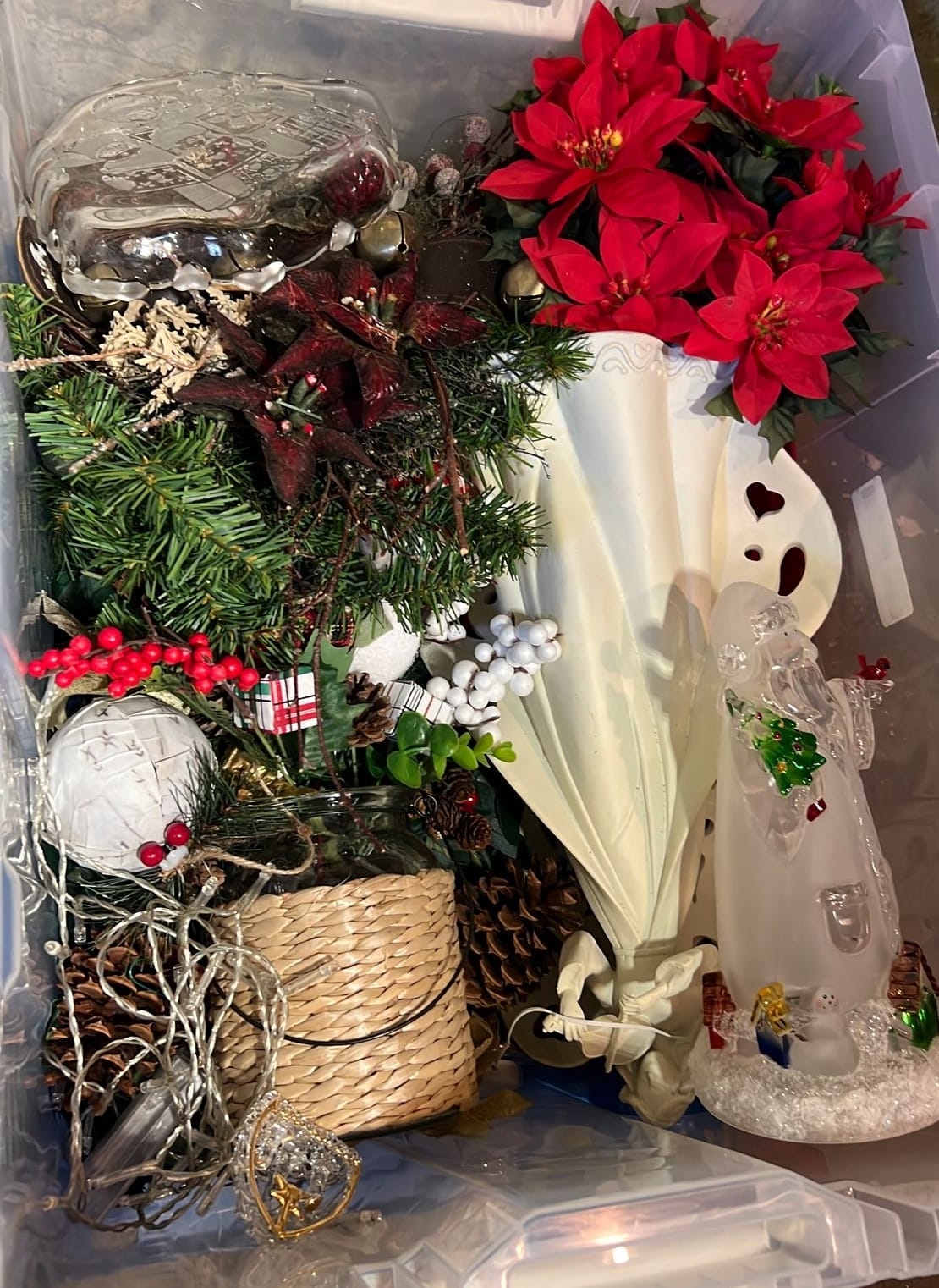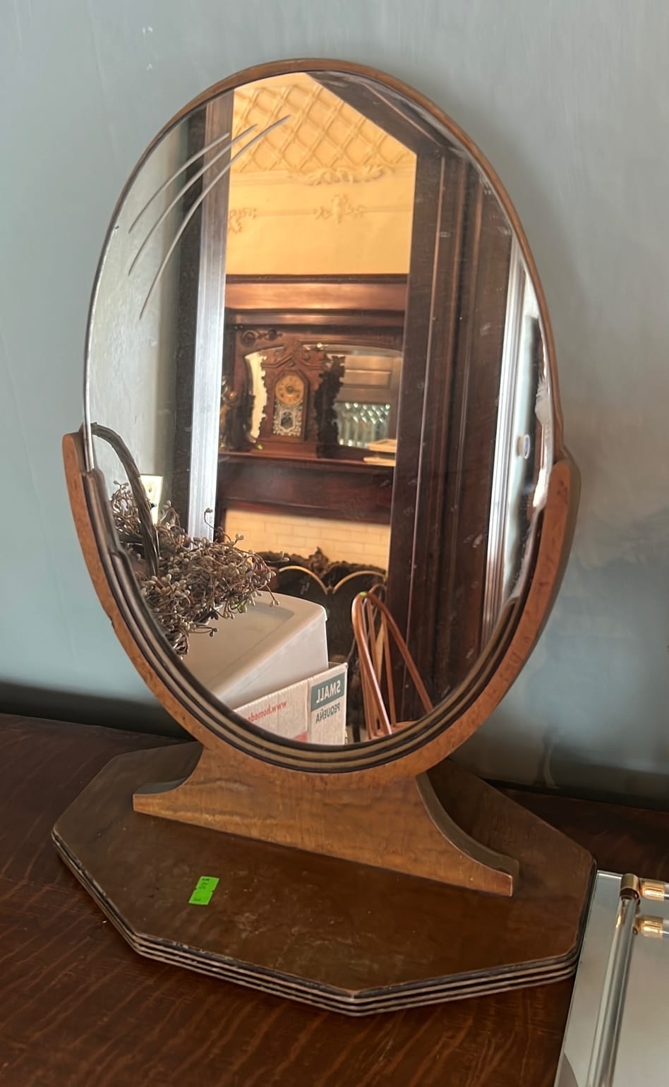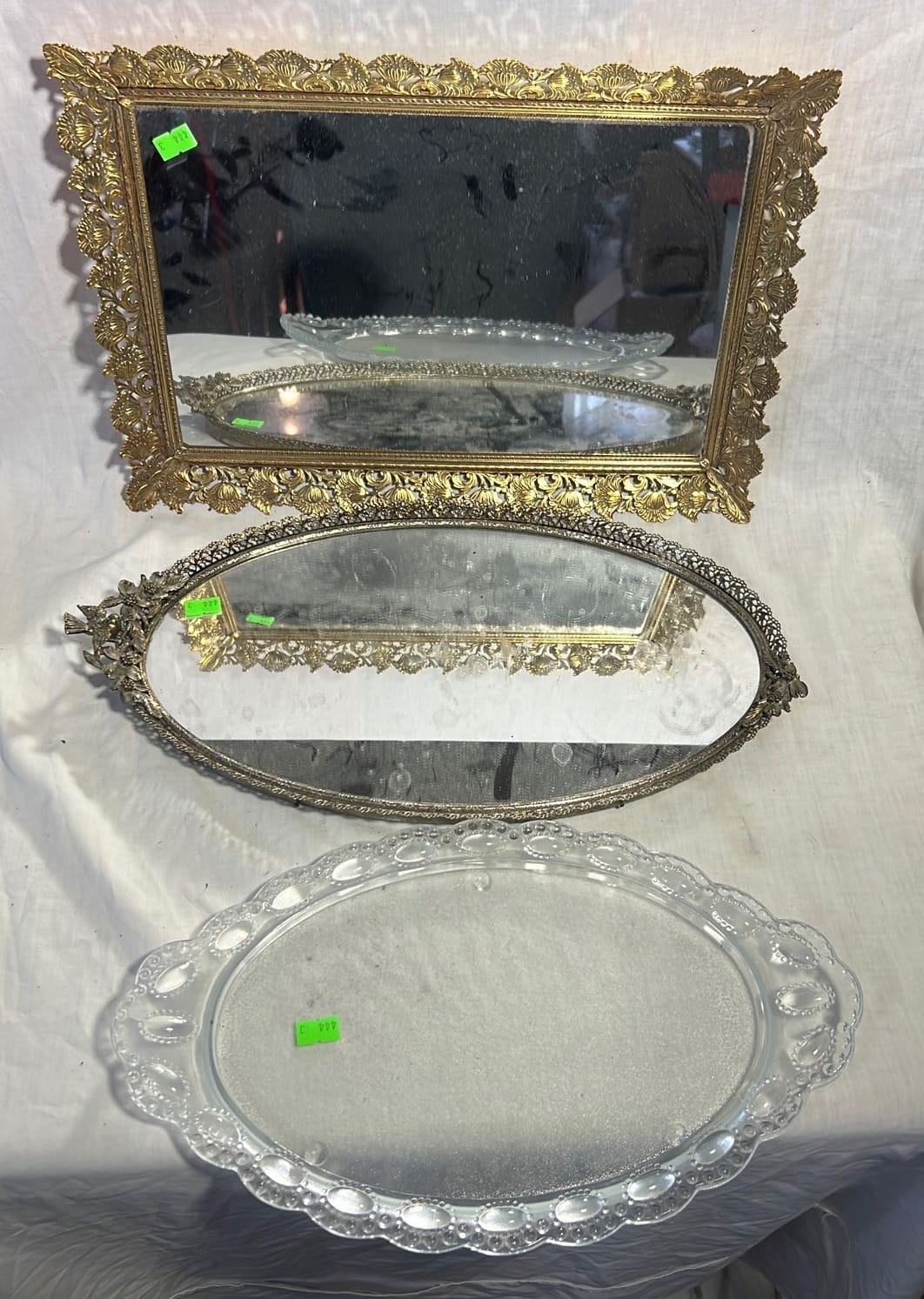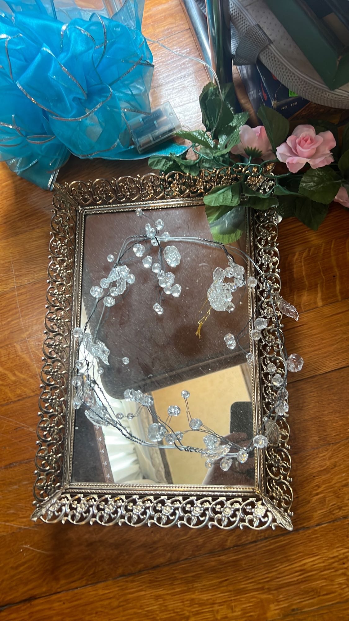 146 Enarco Vase with Holiday Decor 11” • Glass Dresser Tray 11”x8” • Vintage Dresser Mirror 14”x19.5”