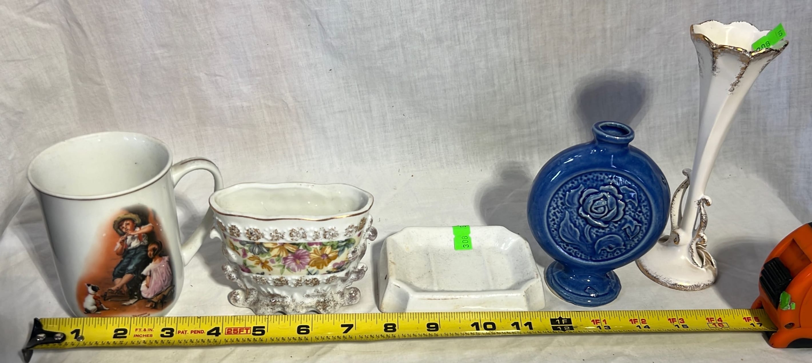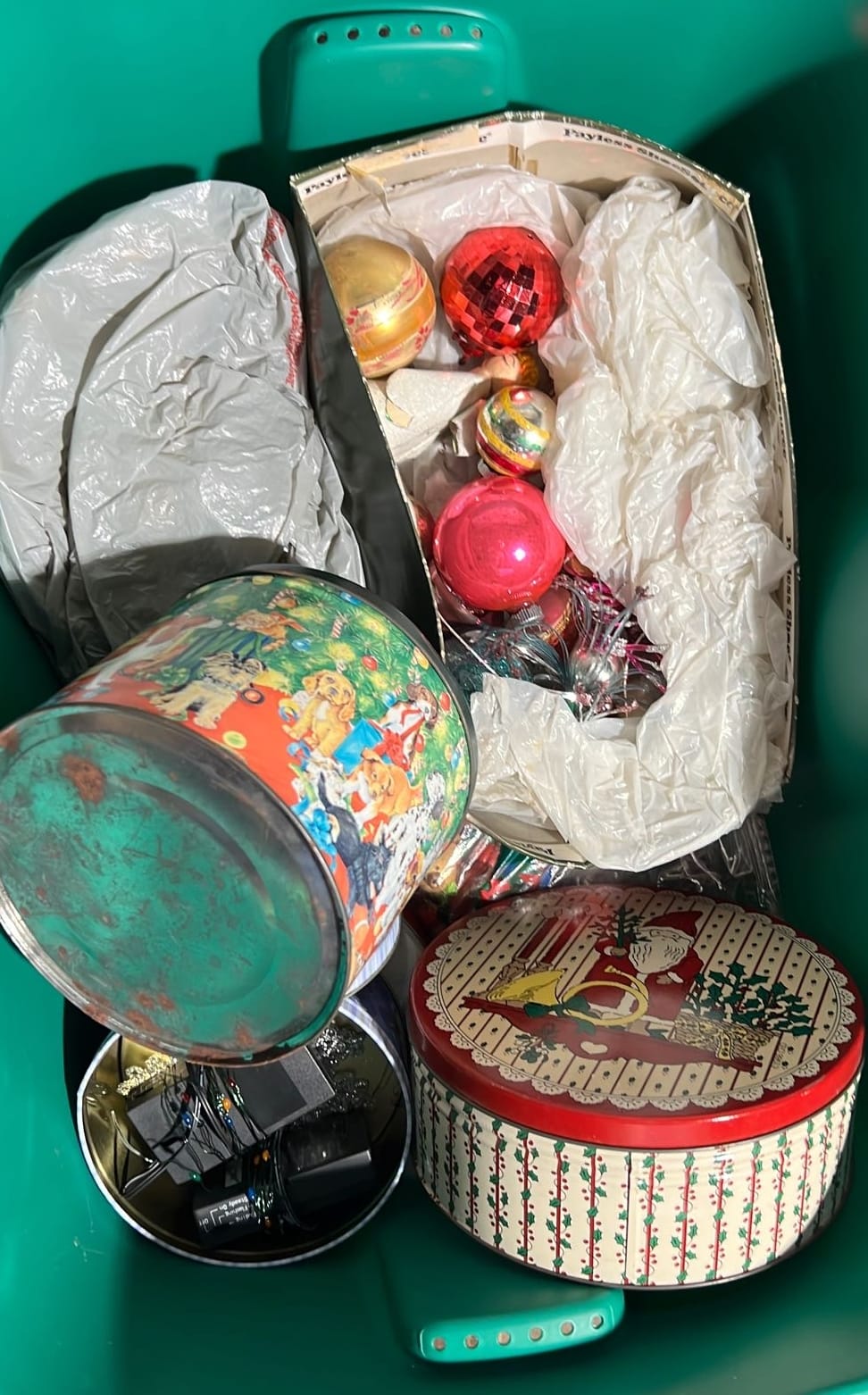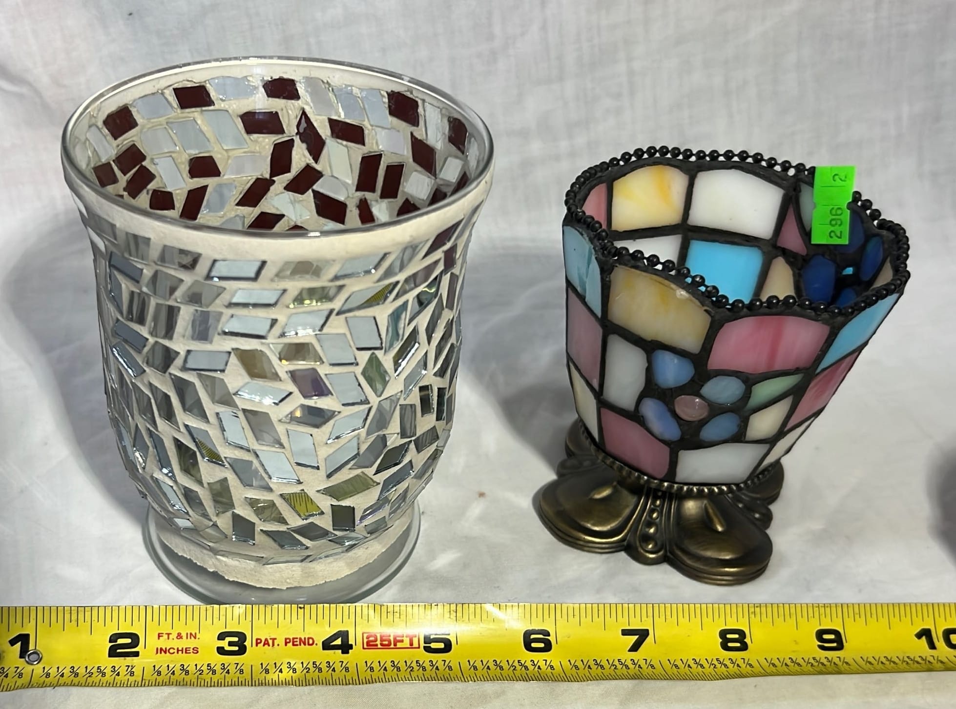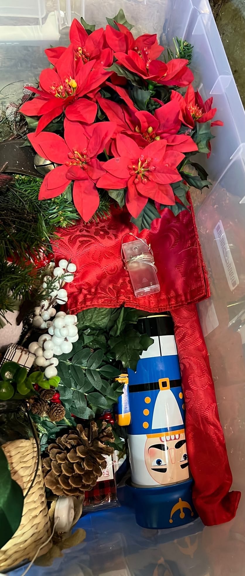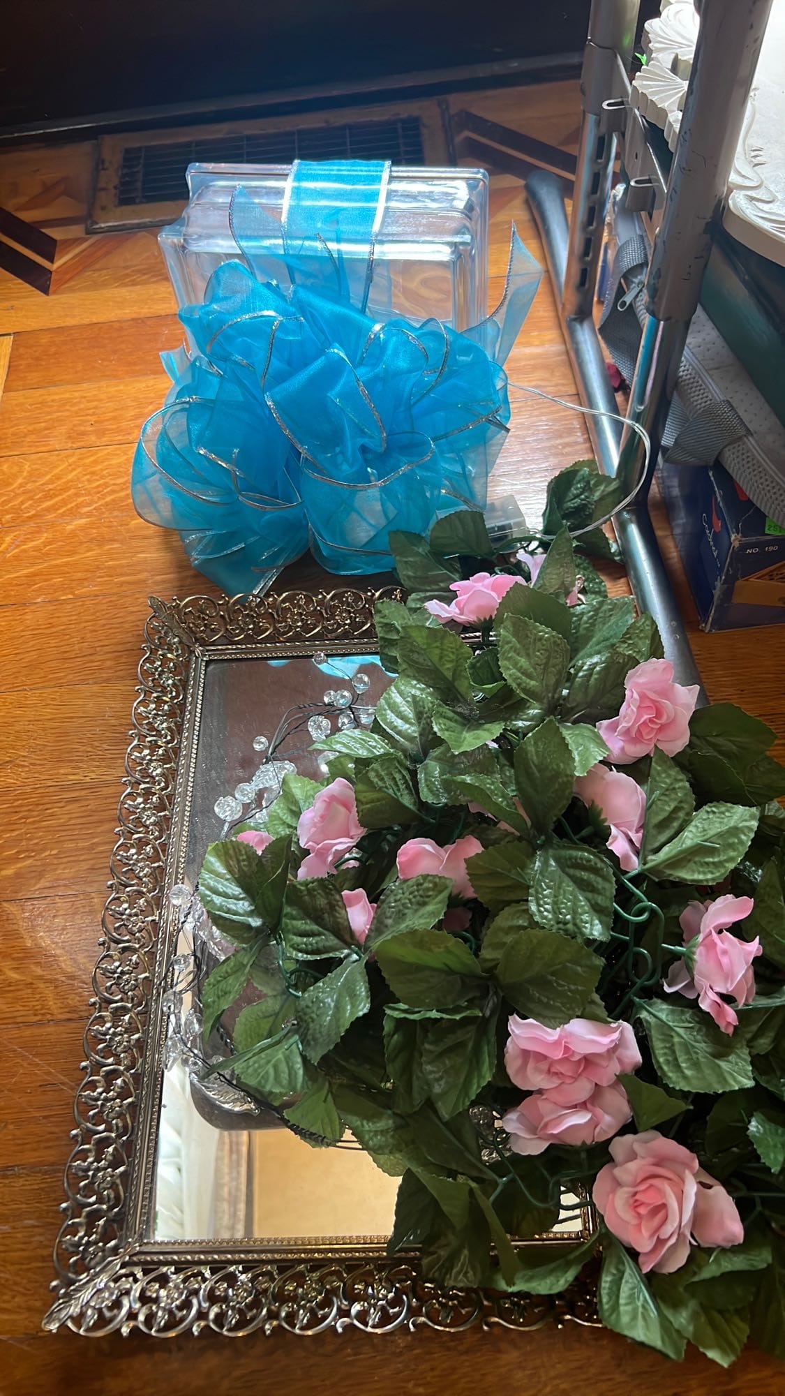 146 Enarco Vase with Holiday Decor 11” • Glass Dresser Tray 11”x8” • Vintage Dresser Mirror 14”x19.5”