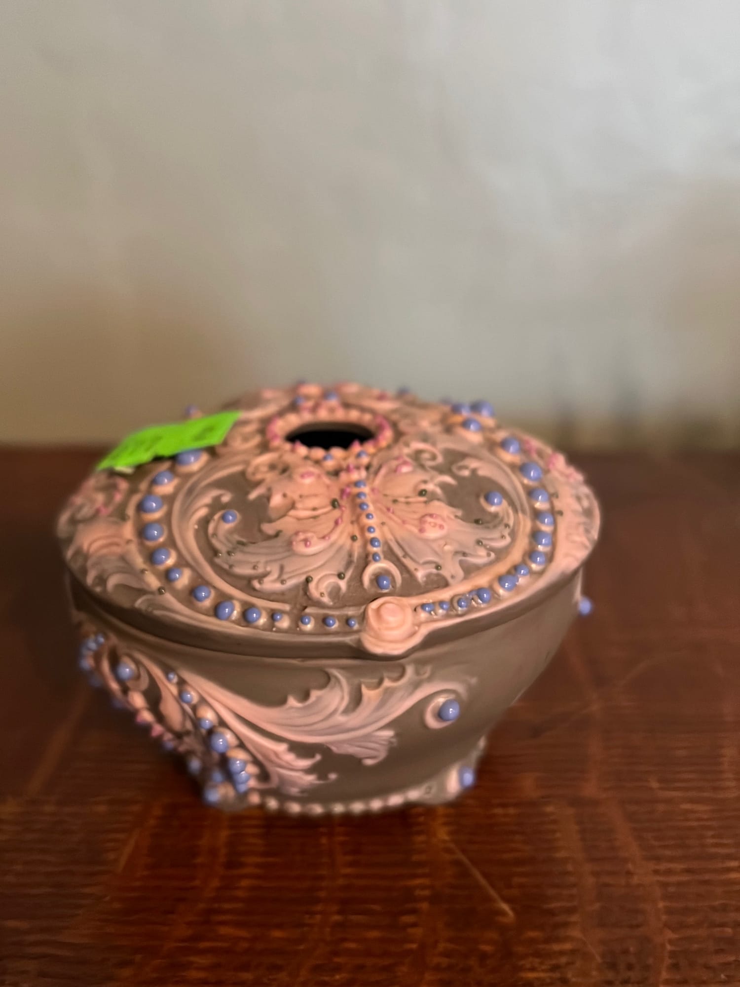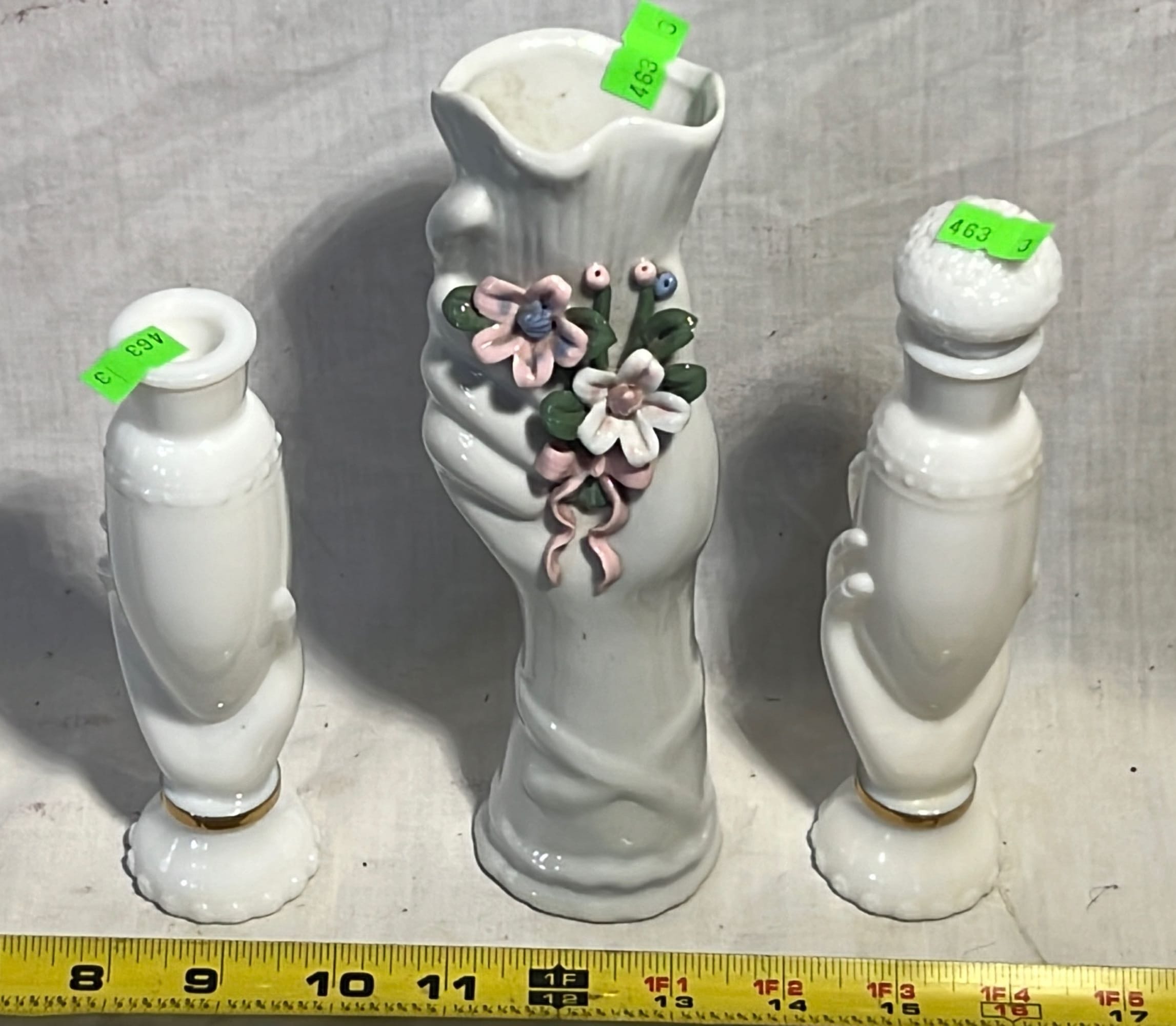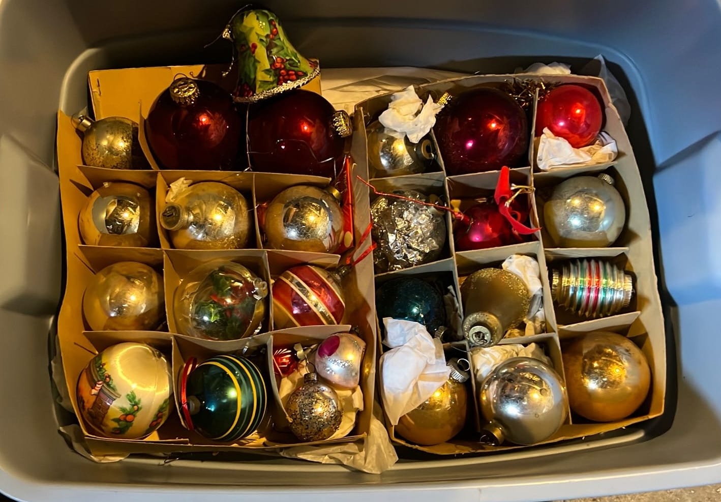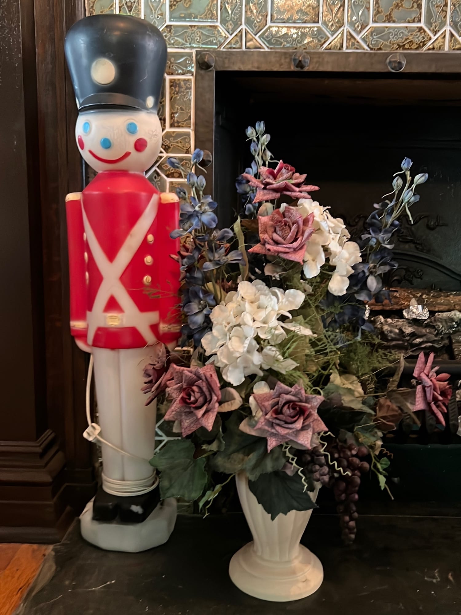 146 Enarco Vase with Holiday Decor 11” • Glass Dresser Tray 11”x8” • Vintage Dresser Mirror 14”x19.5”