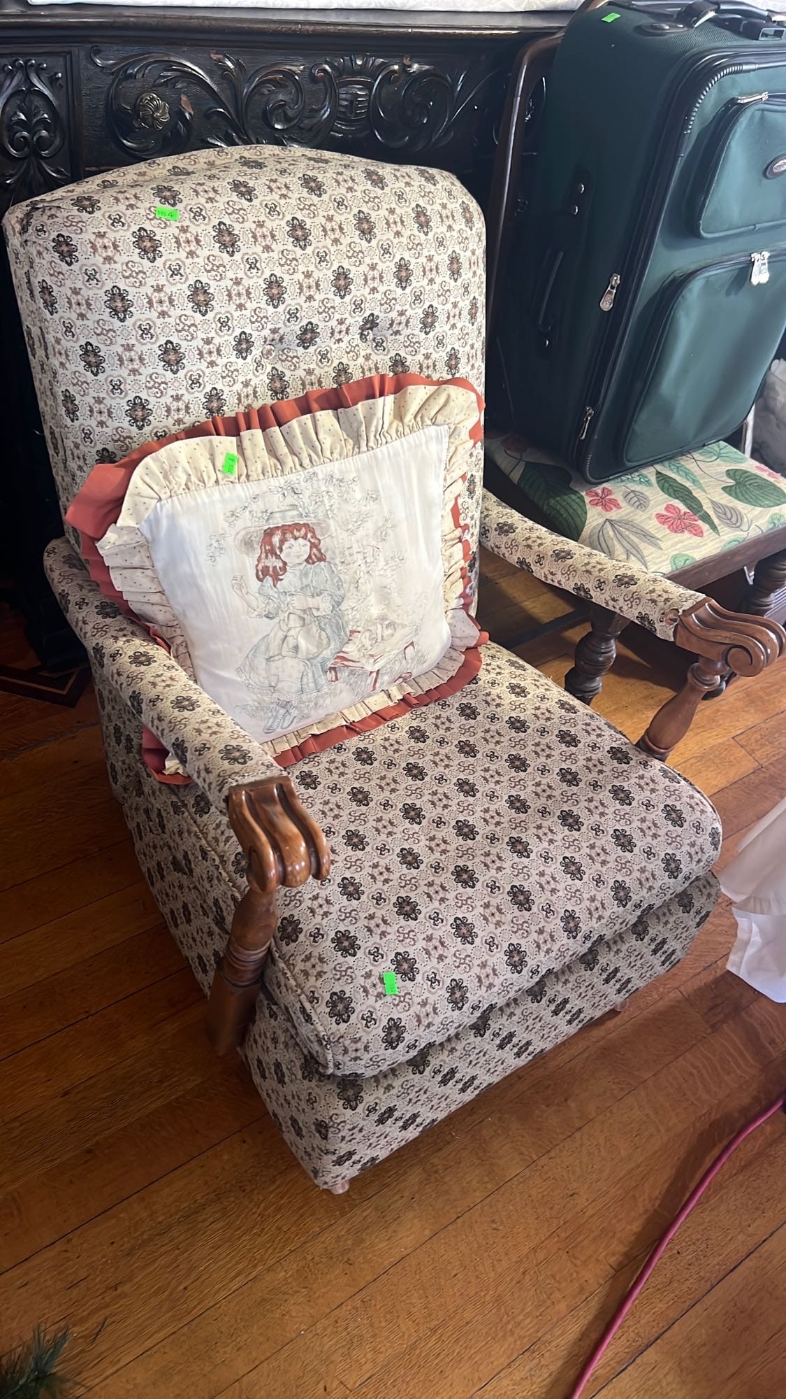 12 Vintage Ornate Chair with Padded Seat 25” wide Seat height 14.5” and Decorative Pillow