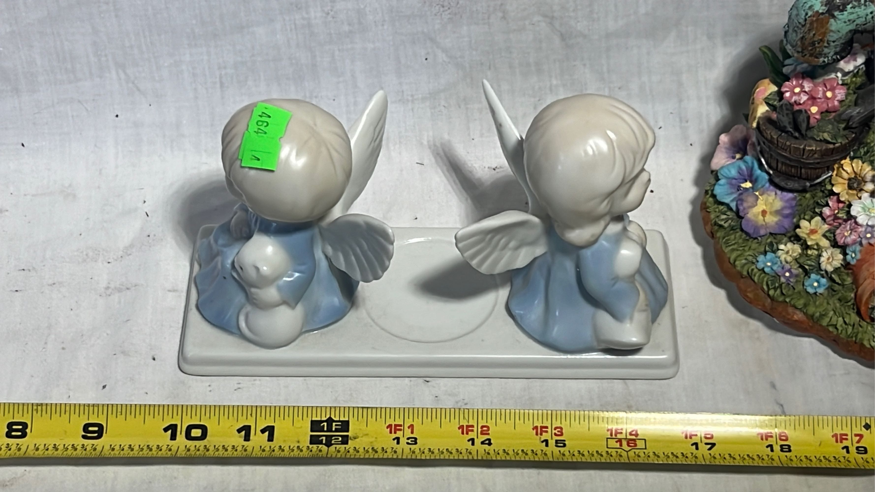 35 Vintage Figural Cherubs Coffee Table Base with Chiseled Glass Top 24”x36” (glass has small blemish)