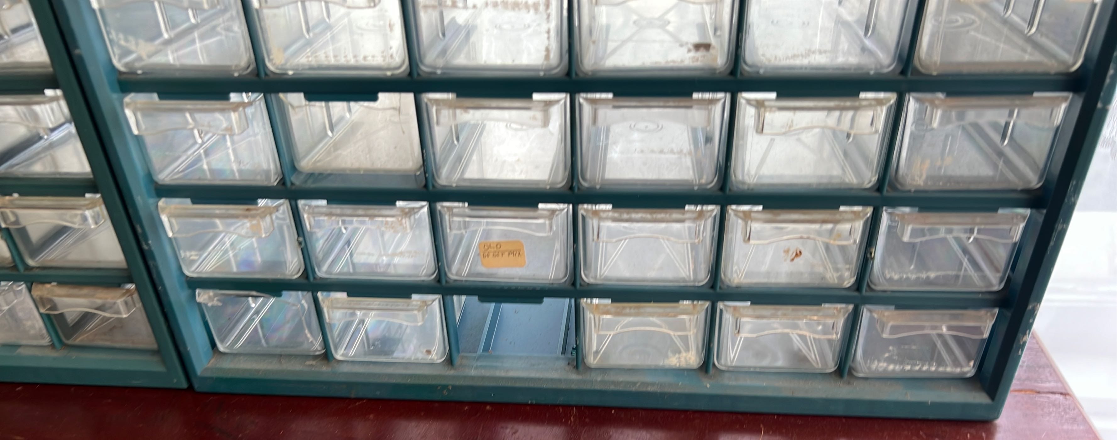 3 Vintage Oak Library Card Caralog Cabinet base with 18 metal drawers , 17”x41”x13”