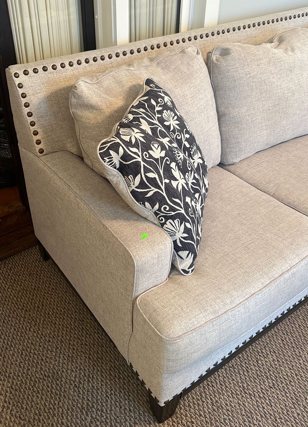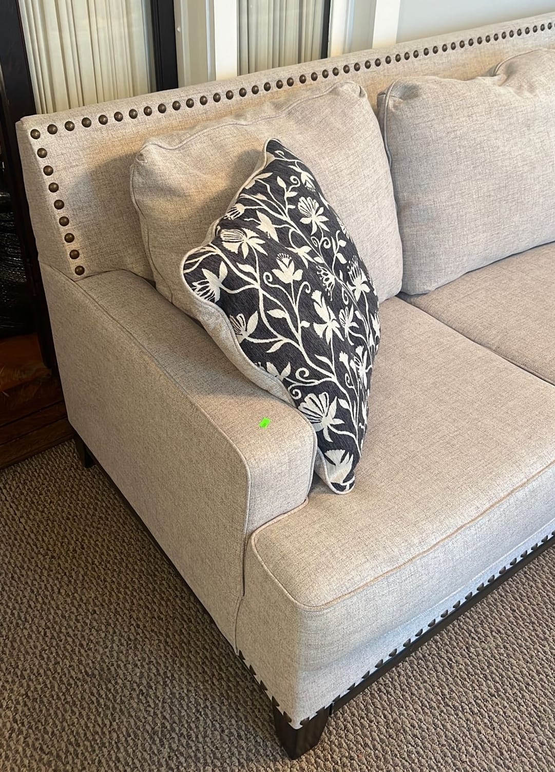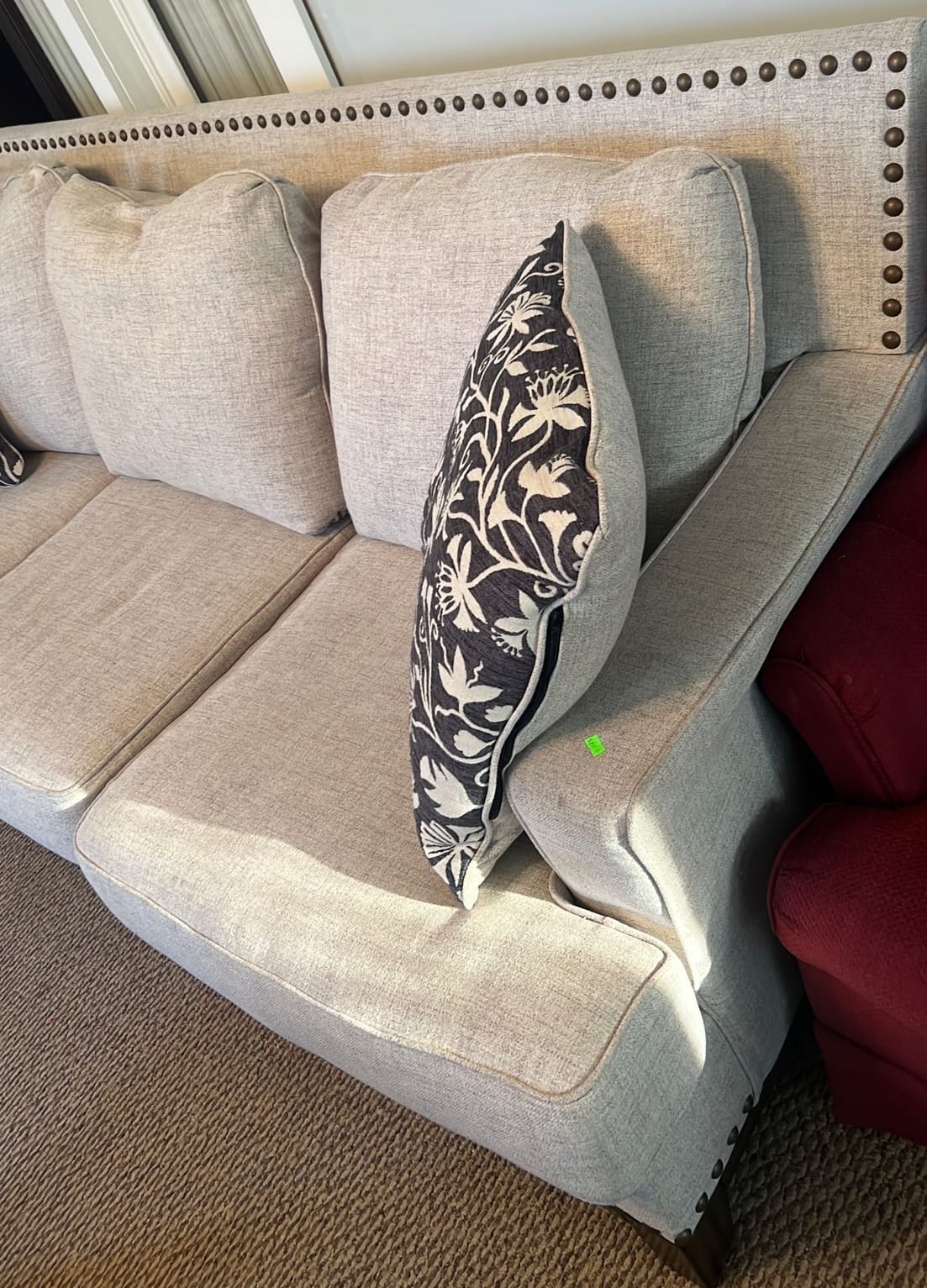 11 Vintage Ornate Settee 64” wide Seat height 16.5” with Decorative Pillows & Throw