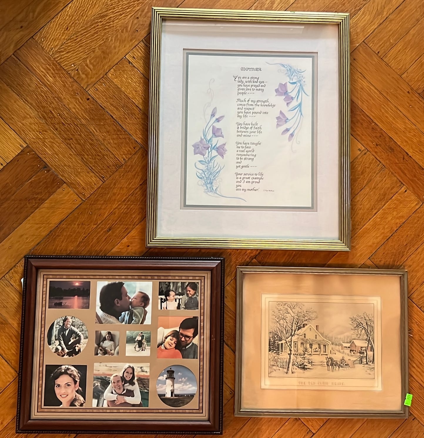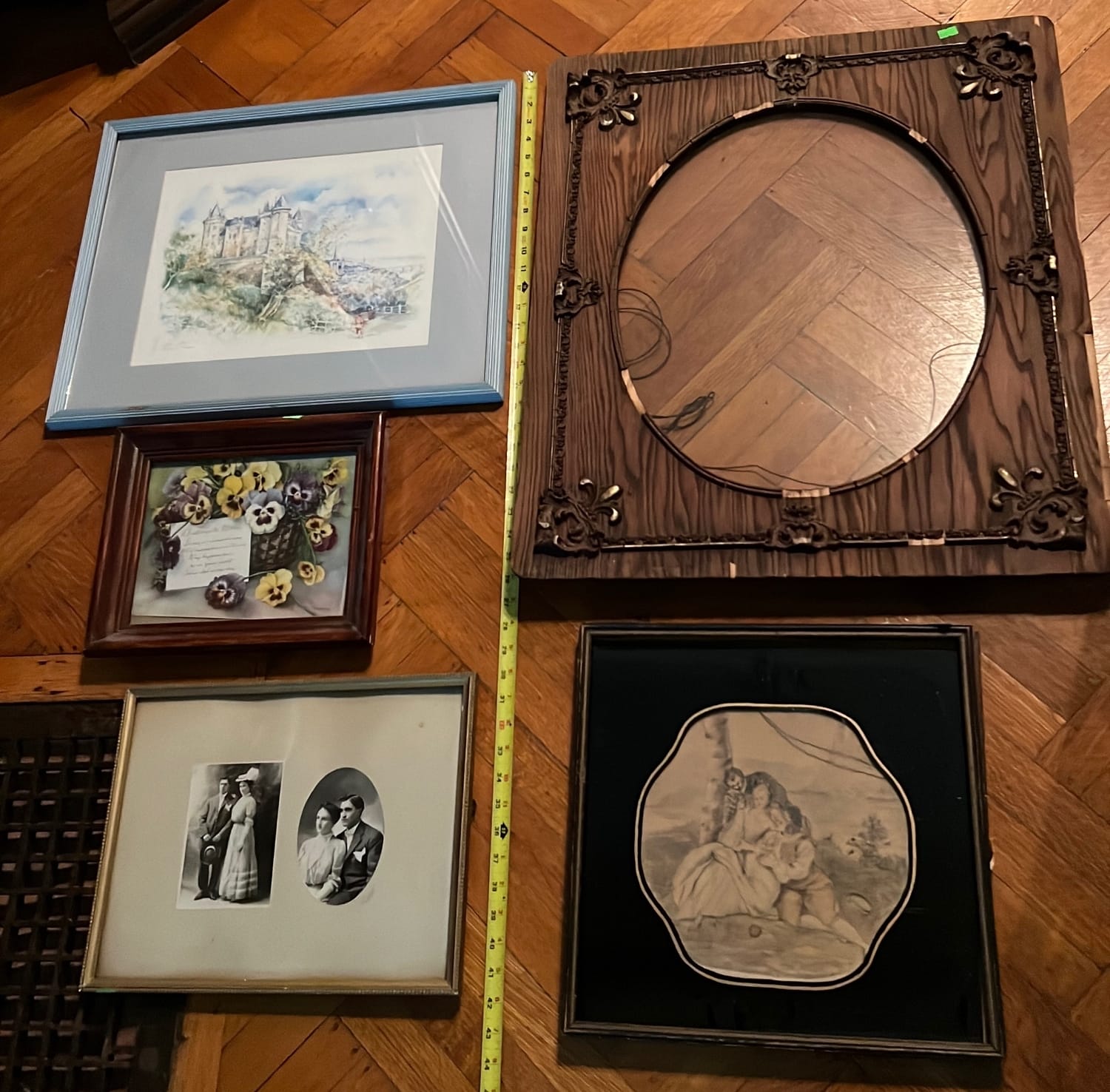 119 Solid Oak Show Case Frame 15”x12”• Frame & Picture assortment in barious sizes (see photos)