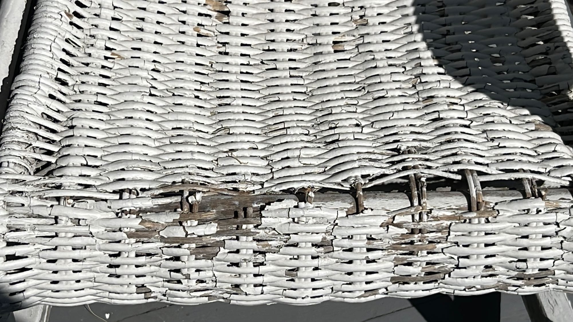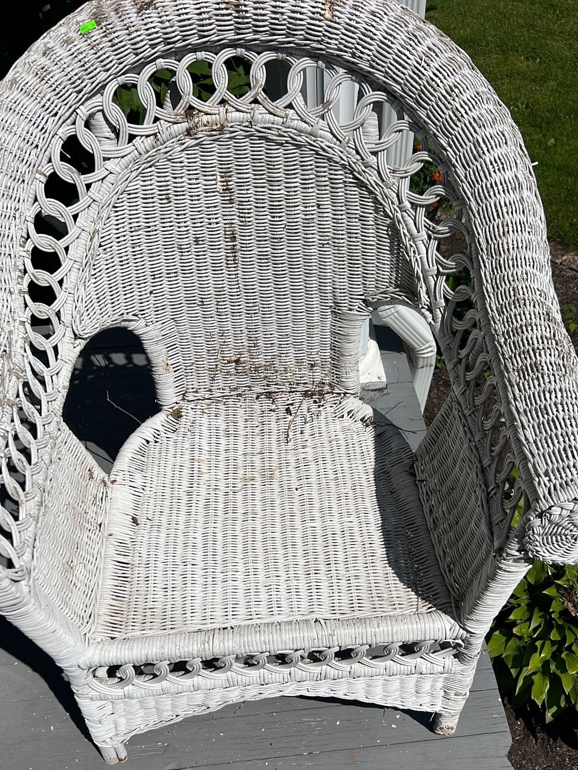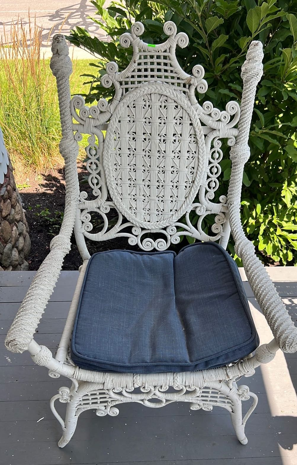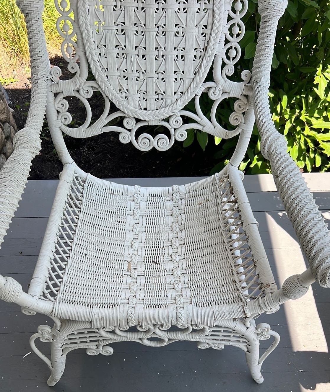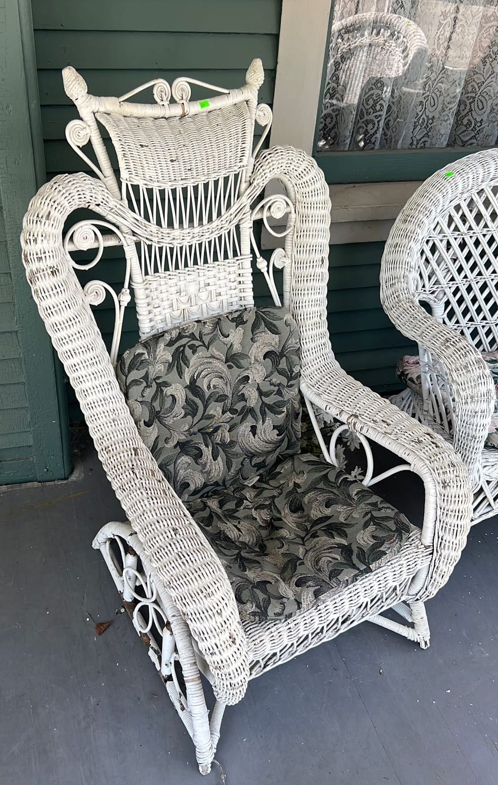 8a Antique Wicker Rolling Rocking Chair 23” wide Seat height 15.5”