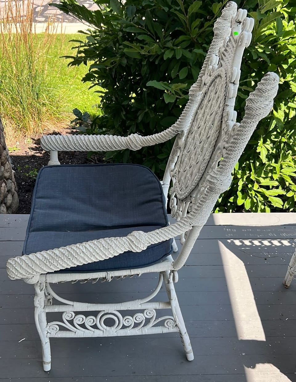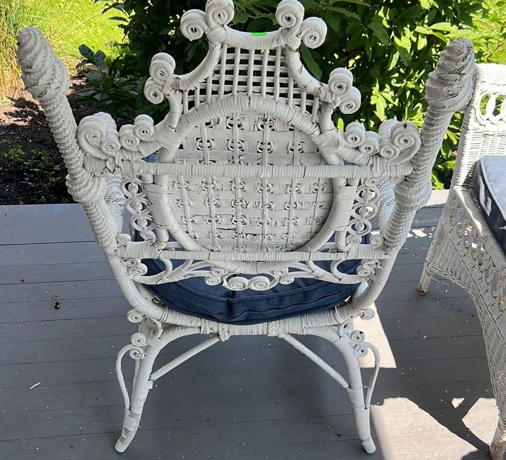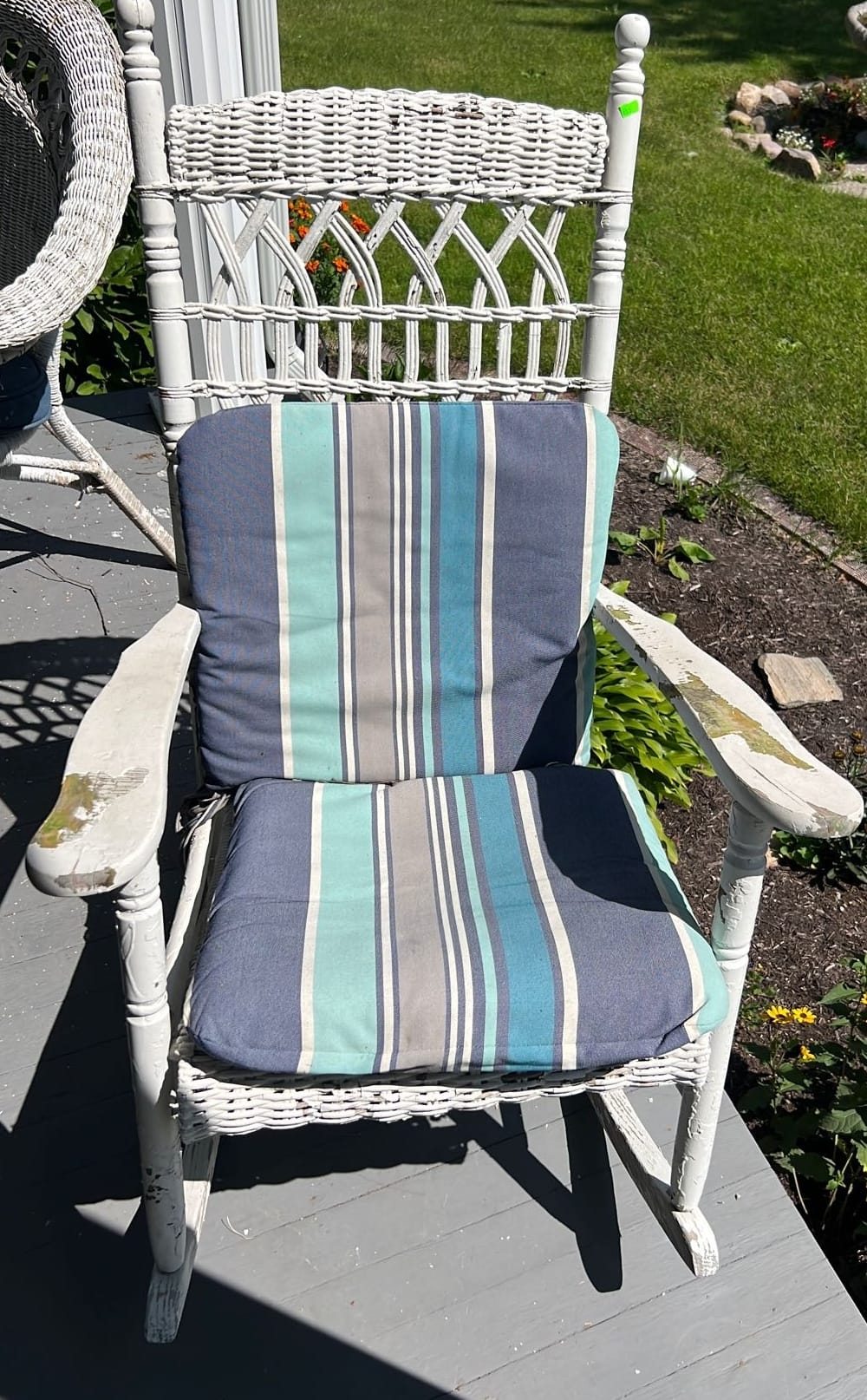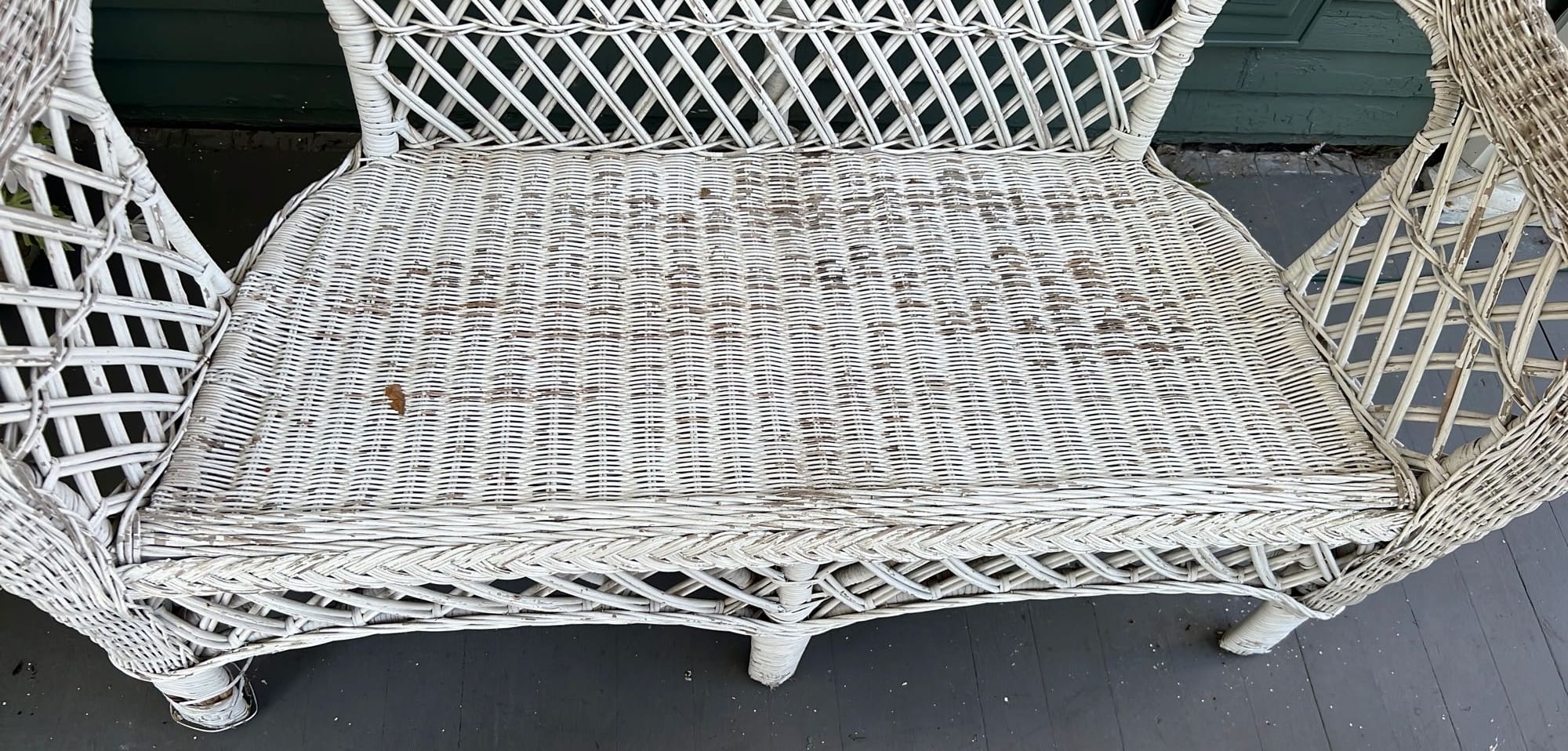 8a Antique Wicker Rolling Rocking Chair 23” wide Seat height 15.5”