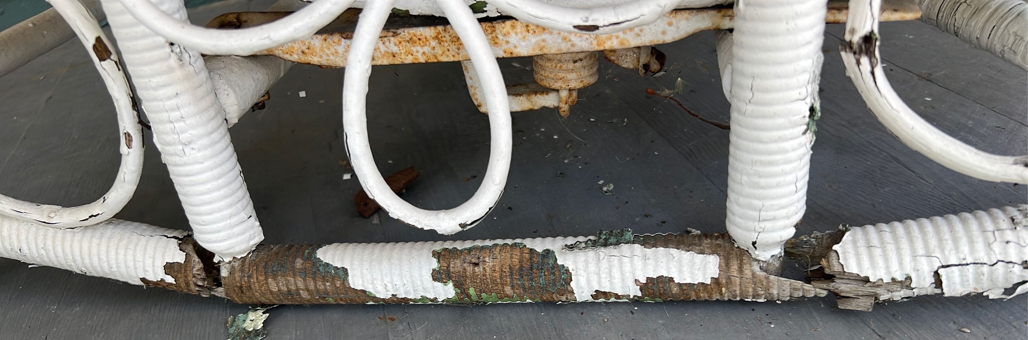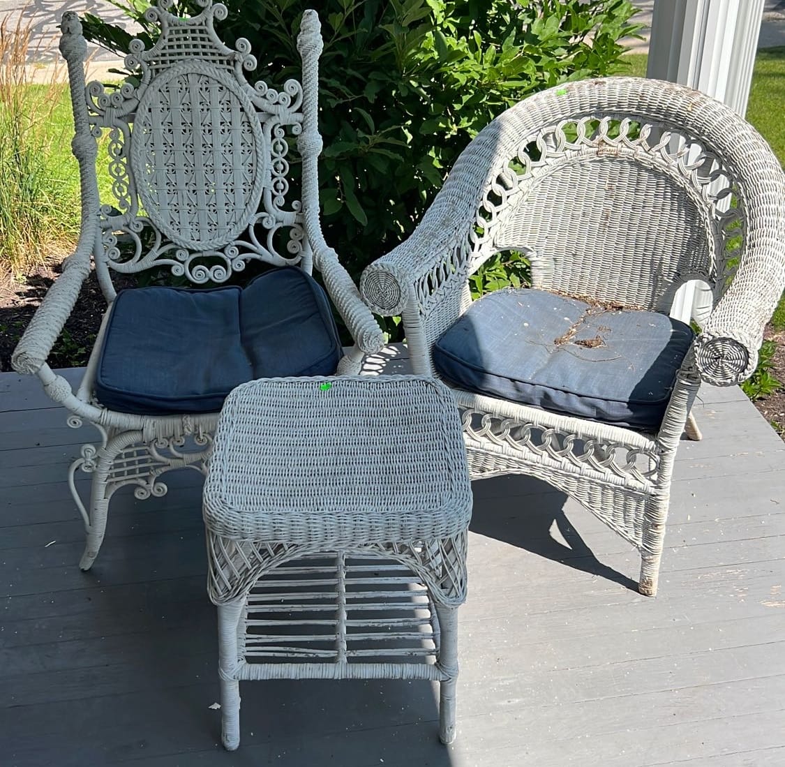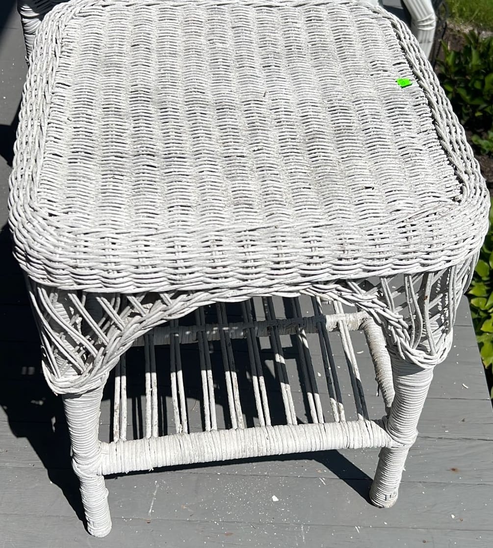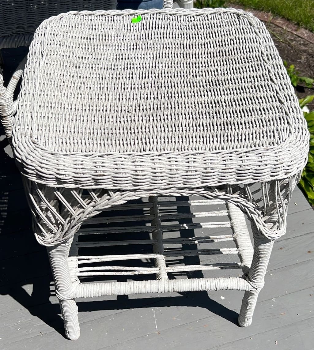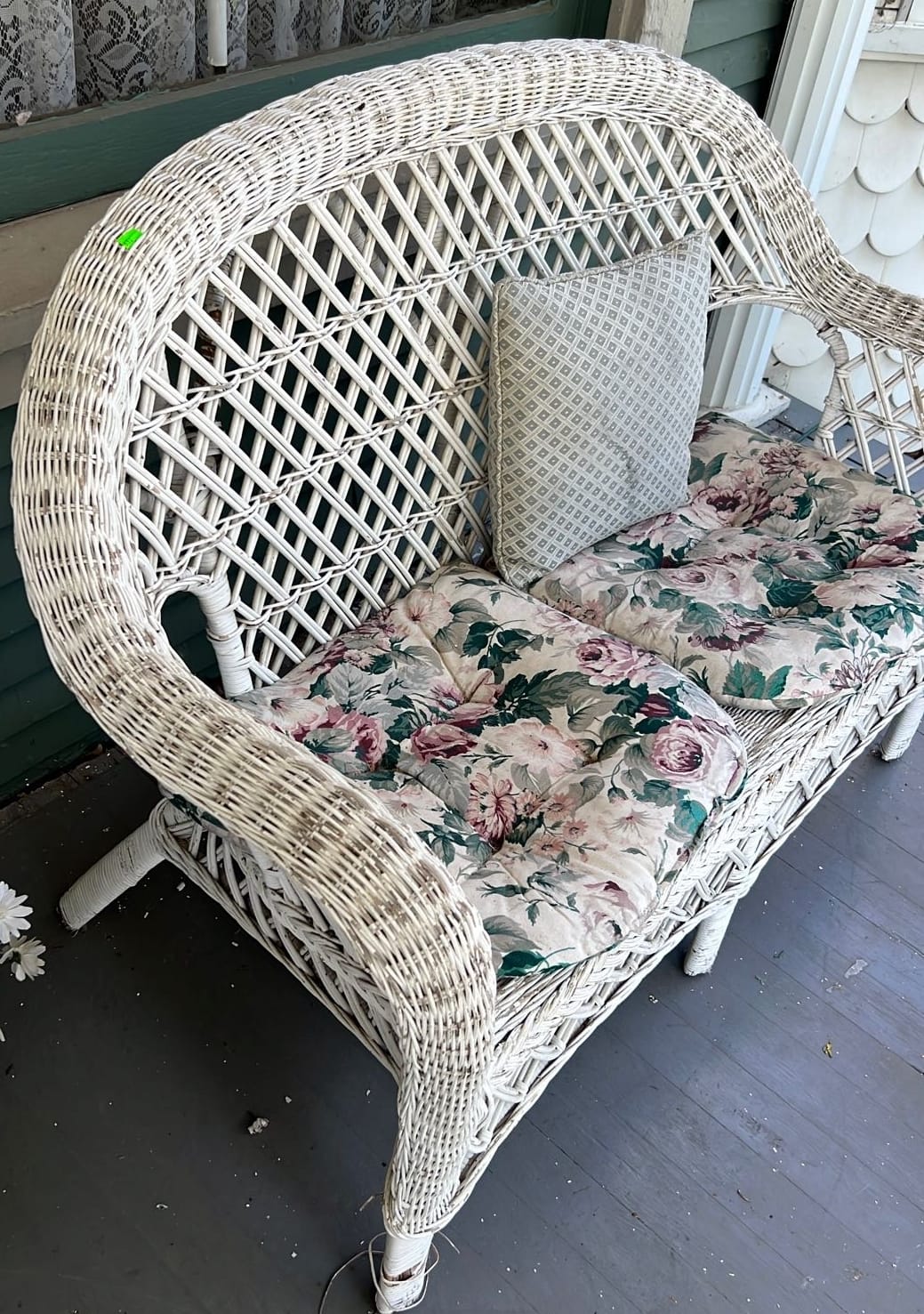 8a Antique Wicker Rolling Rocking Chair 23” wide Seat height 15.5”
