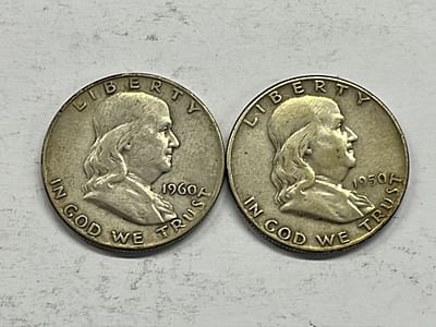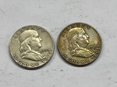 66 2 - 1960, 1960-D Silver Franklin Half Dollars