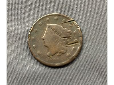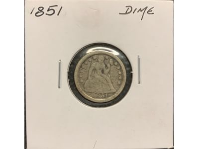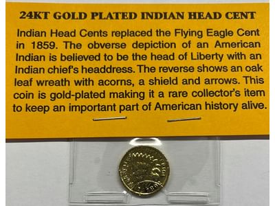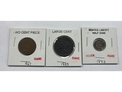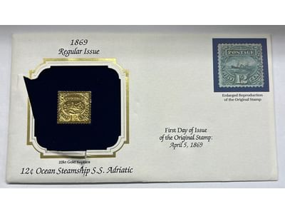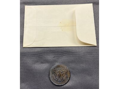 297 24KT 1st Day Commemorative Stamp, 1867 Two Cent Coin, 1845 Large Cent Coin, 1843 Silver Seated Liberty Half Dime