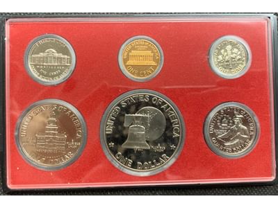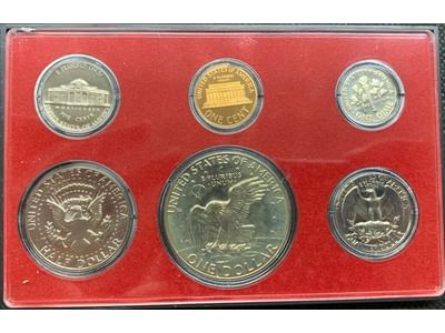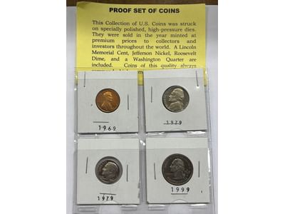 301 Proof Set of Coins 1969 Lincoln Penny, 1979 Jefferson Nickel, 1979 Roosevelt Dime, 1999 Washington Quarter