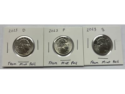 251 2023-D, 2023-P, 2023-S Roosevelt Washington Quarters From Mint Roll