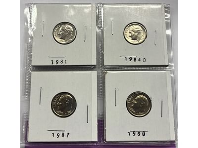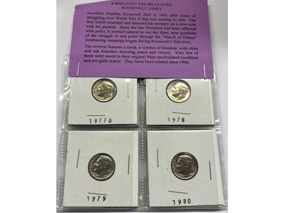 282 8 Uncirculated Roosevelt Dimes 1977-D, 1978, 1979, 1980, 1981, 1984-D, 1987, 1990
