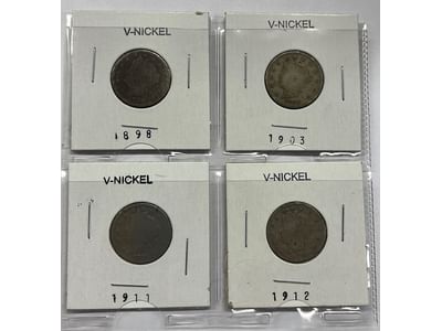285 4 "V" Nickels - 1898, 1903, 1911, 1912