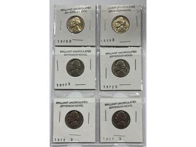 287 6 Uncirculated Jefferson Nickels 1978-D, 1979-D, 1977-D, 1972-D, 1970-S, 1969-S