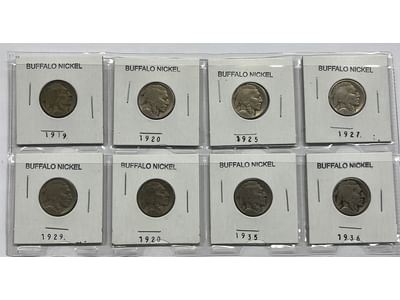 304 8 Buffalo Nickels 1919, 1920, 1925, 1927, 1929, 1920, 1935, 1936