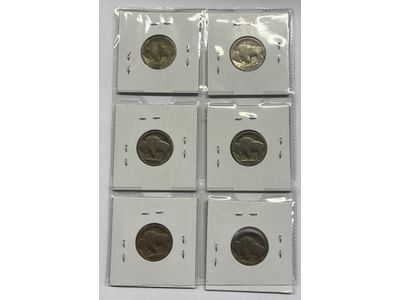 305 6 Buffalo Nickels 1918, 1920, 1923, 1925, 1927, 1934