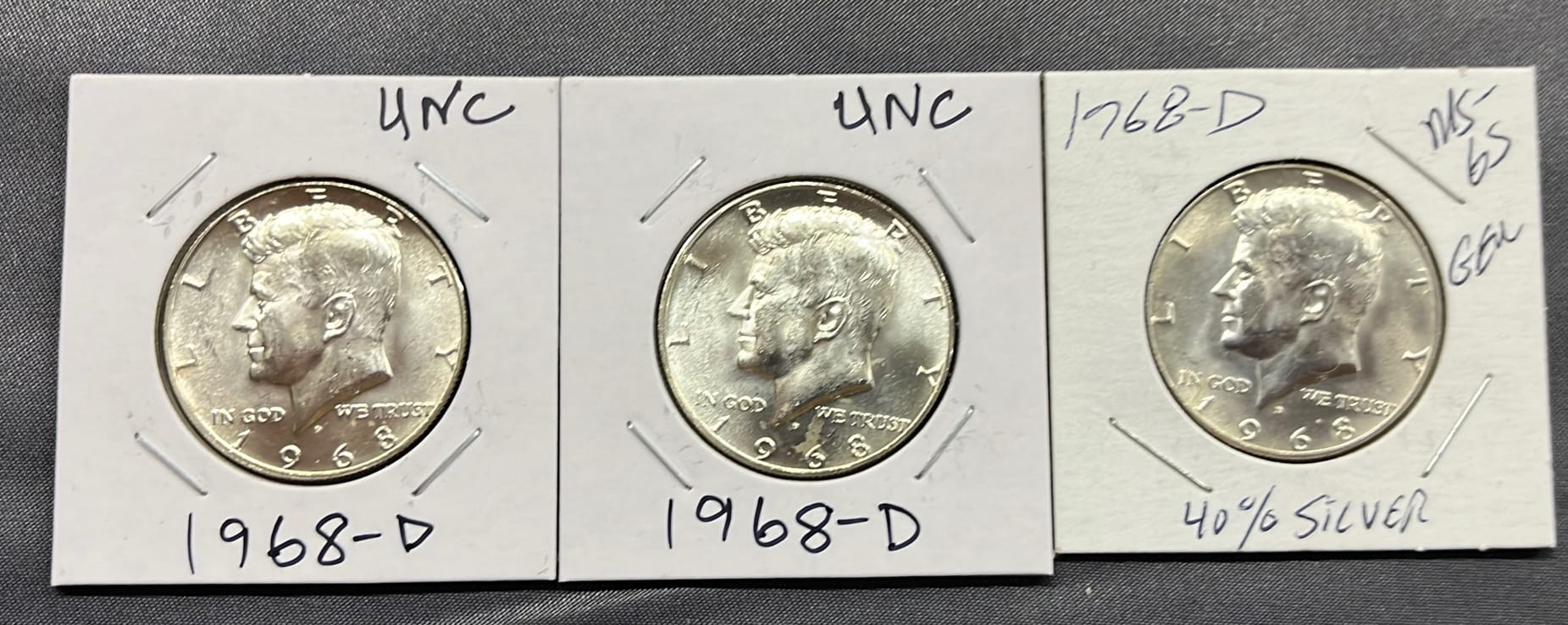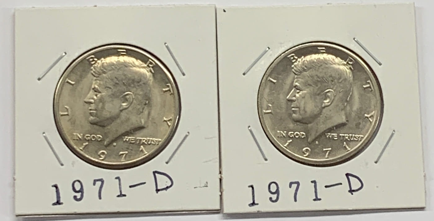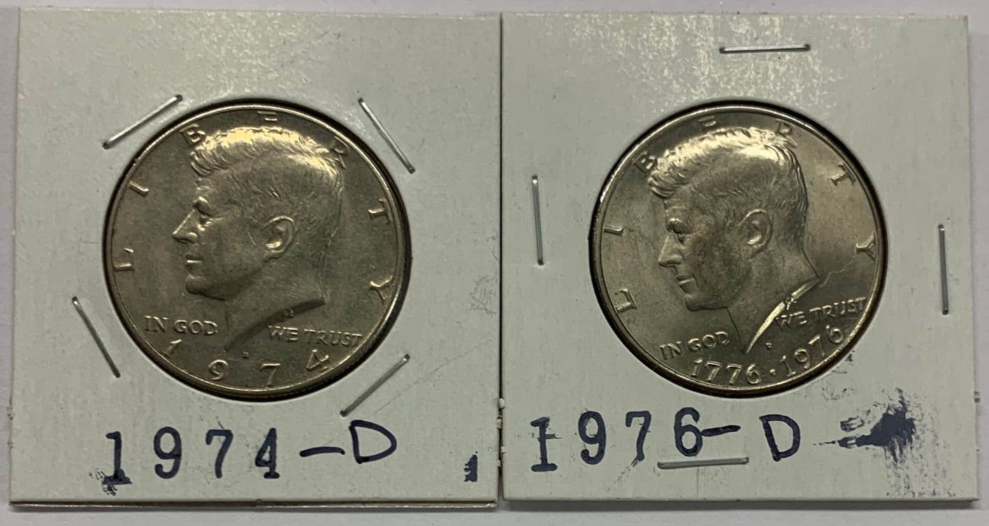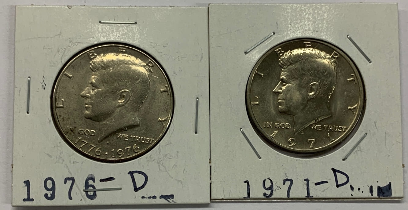 79 2 Kennedy Half Dollars, 1976-D, 1971-D