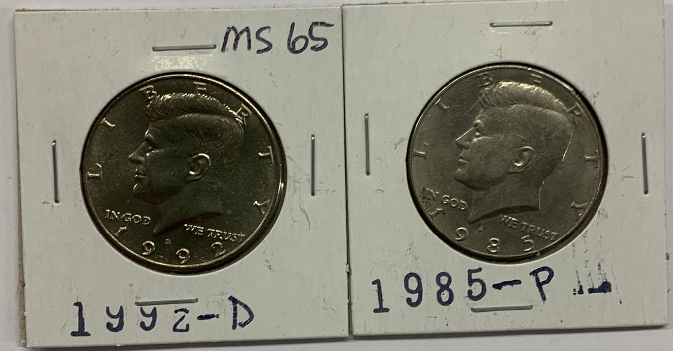 36 2 Kennedy Half Dollars, 1985-P, 1992-D MS 65