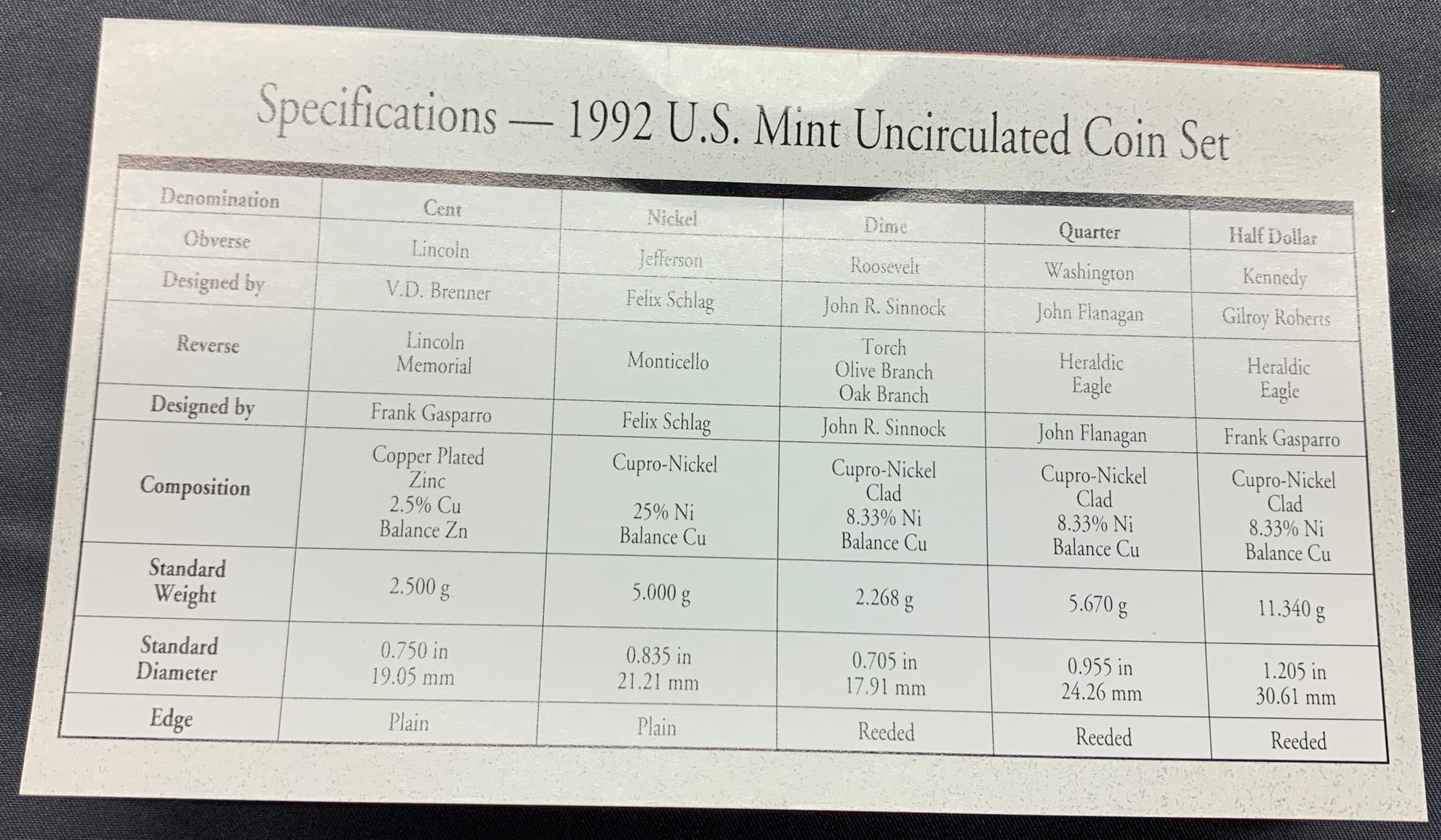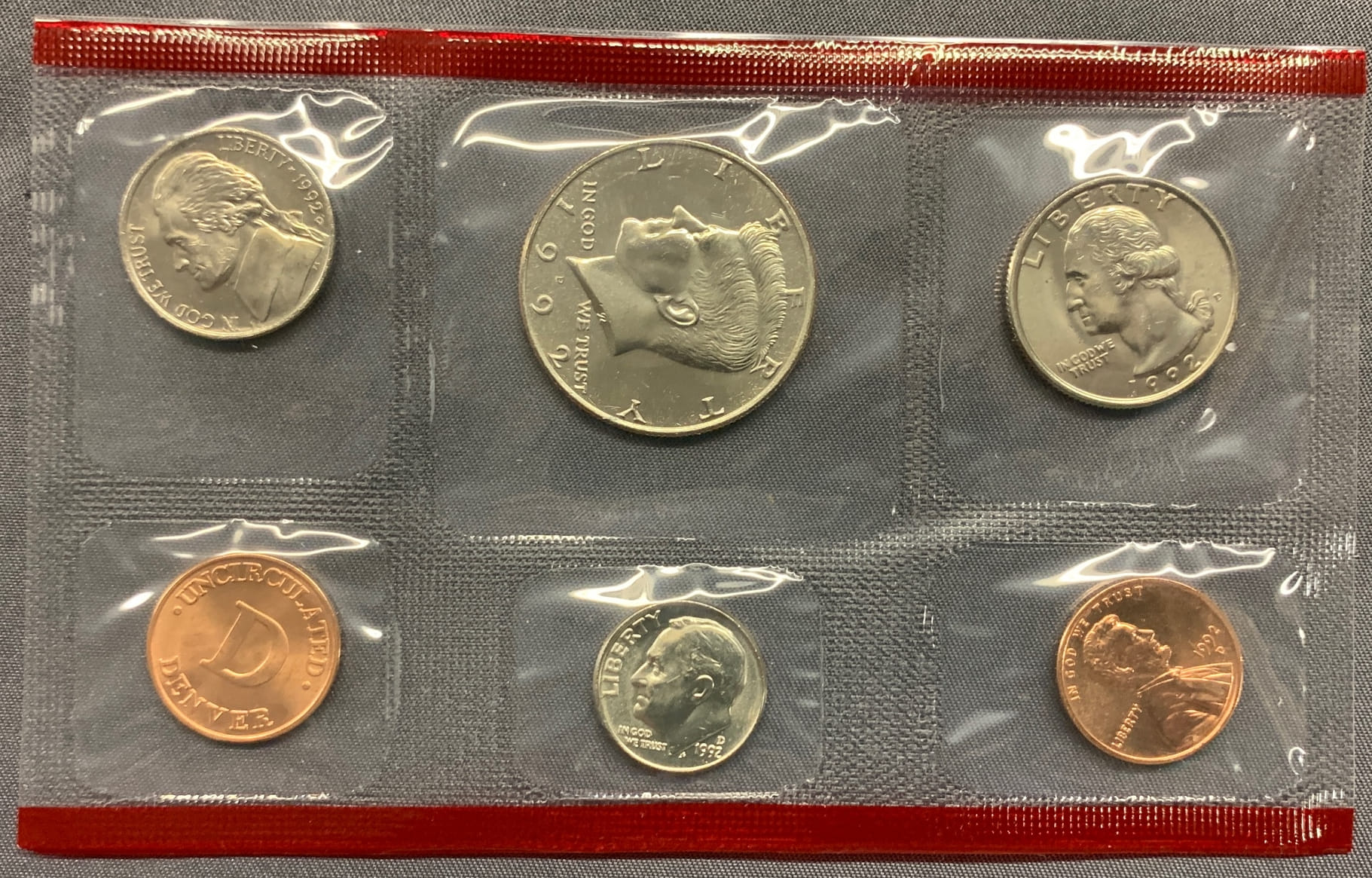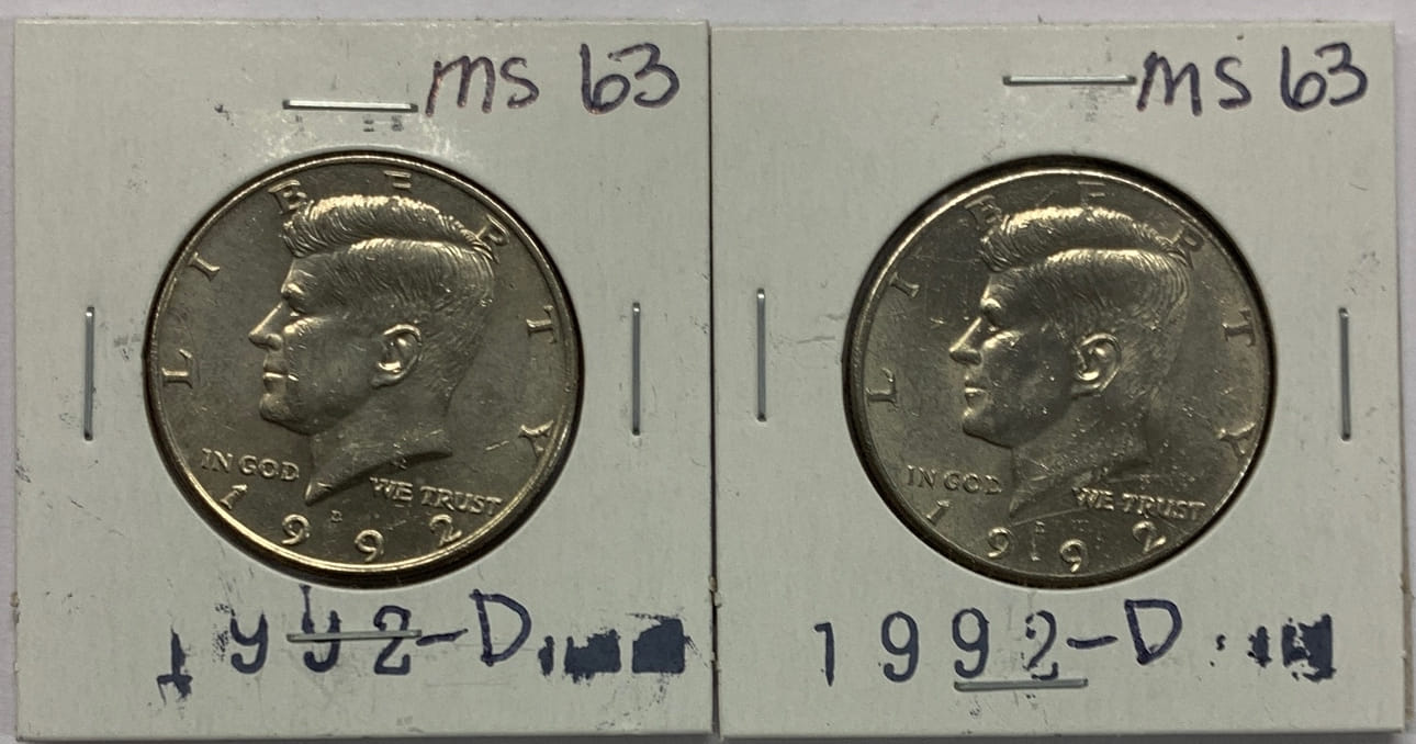 58 2 Kennedy Half Dollars, 1992-D MS 65, 1992-D MS 63