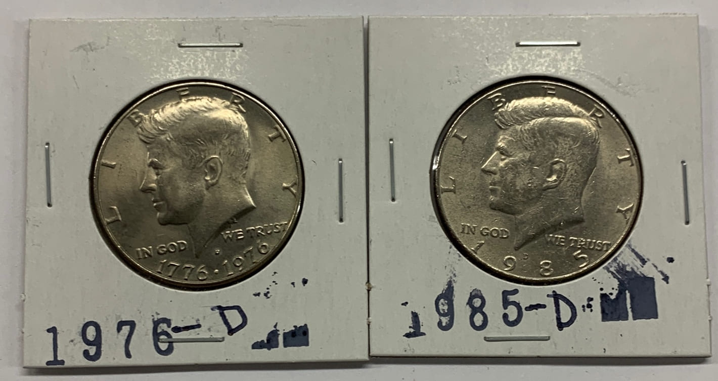 44 2 Kennedy Half Dollars, 1976-D, 1985-D