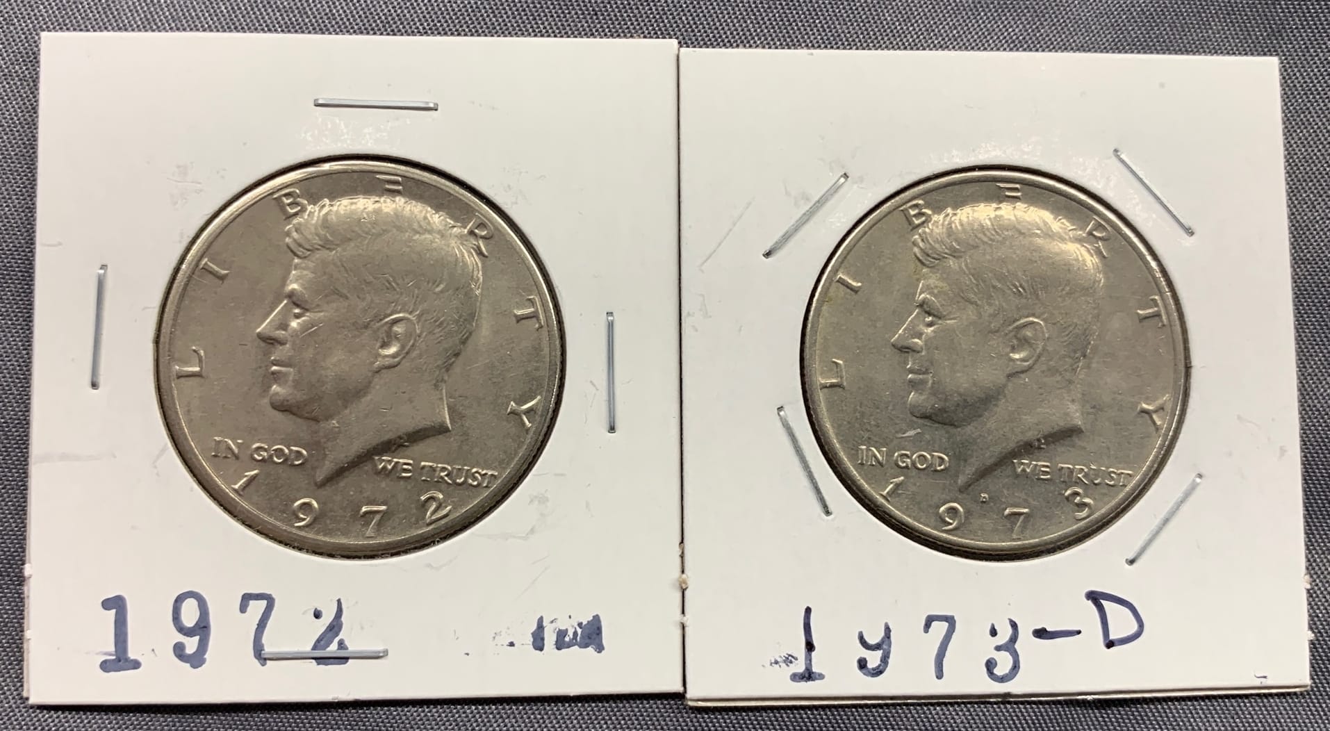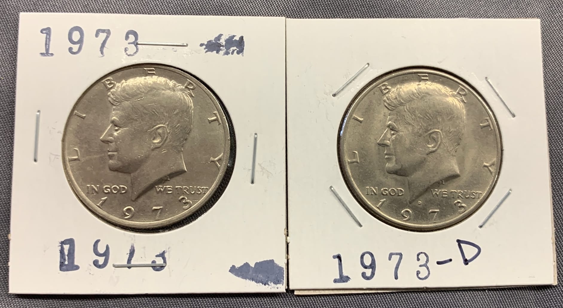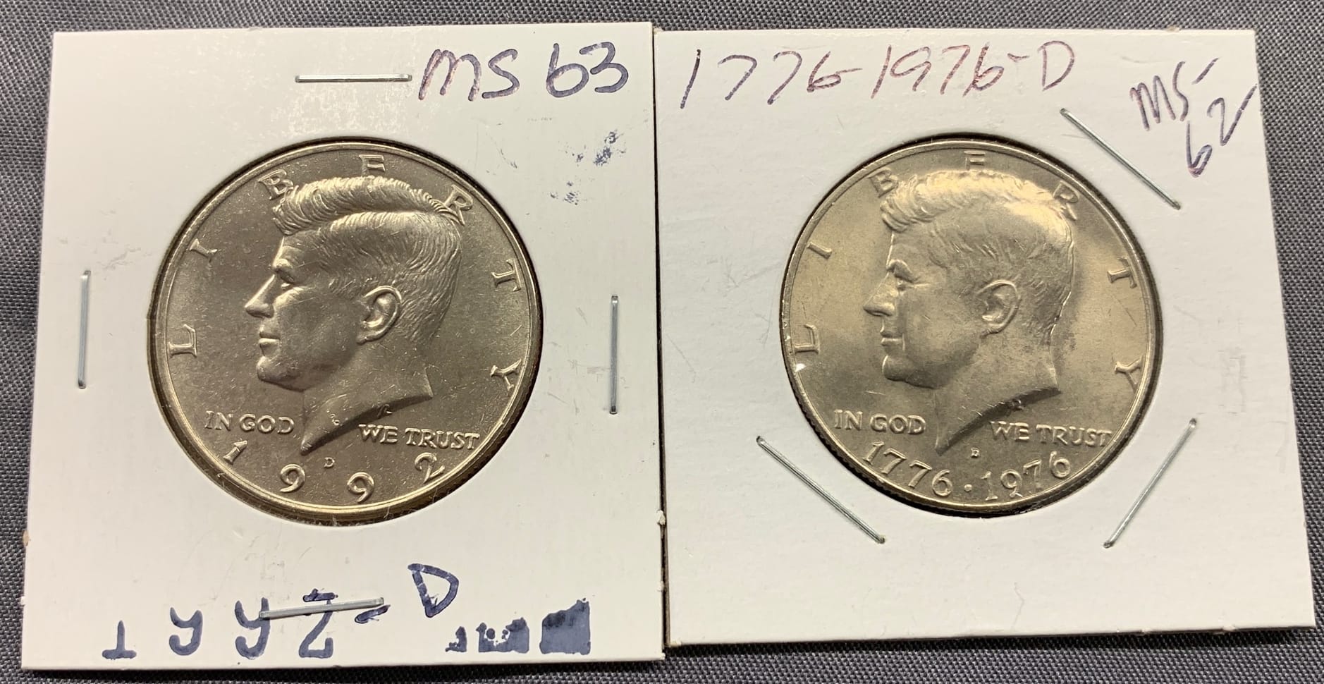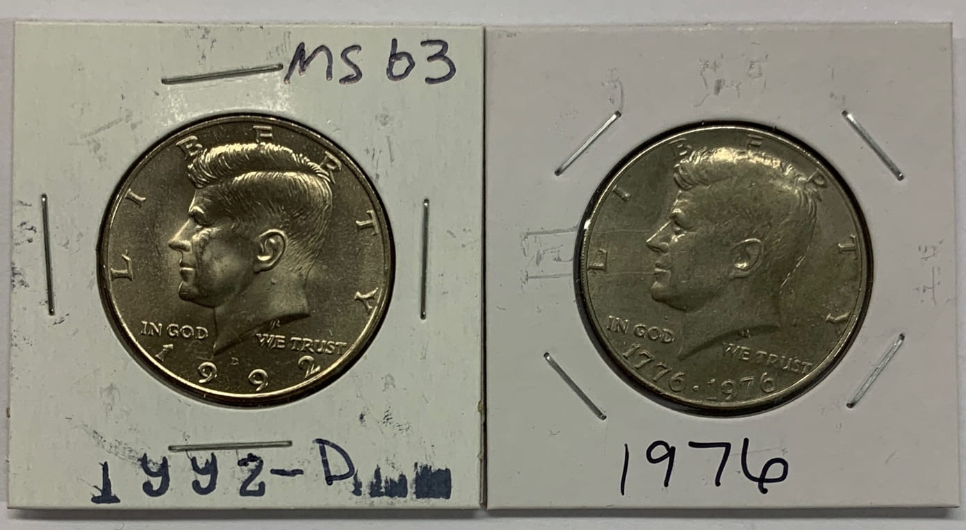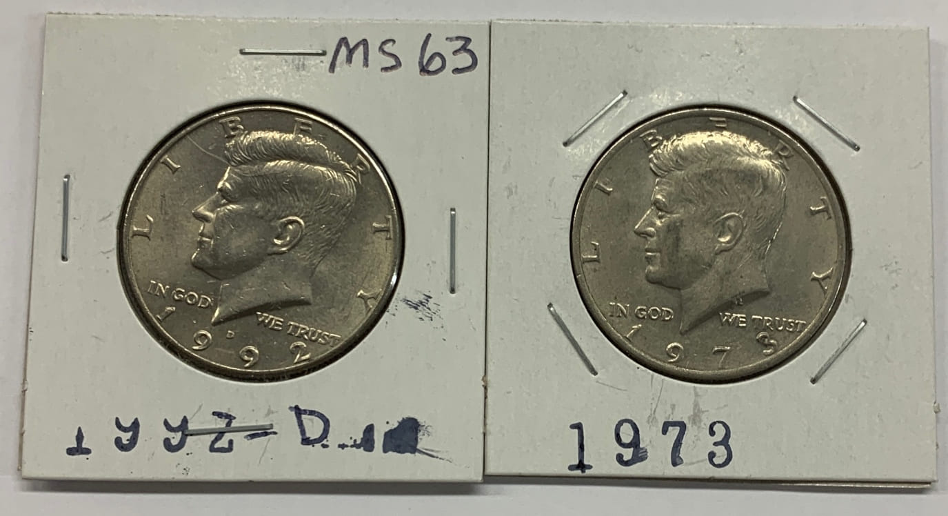 46 2 Kennedy Half Dollars, 1973, 1992-D MS 63