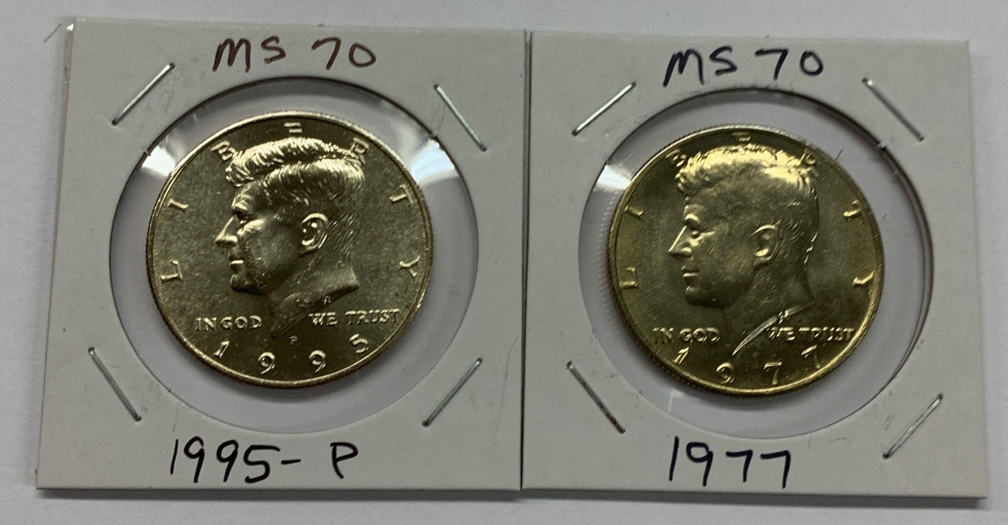 51 2 Kennedy Half Dollars, 1977 MS 70, 1955-P MS 70