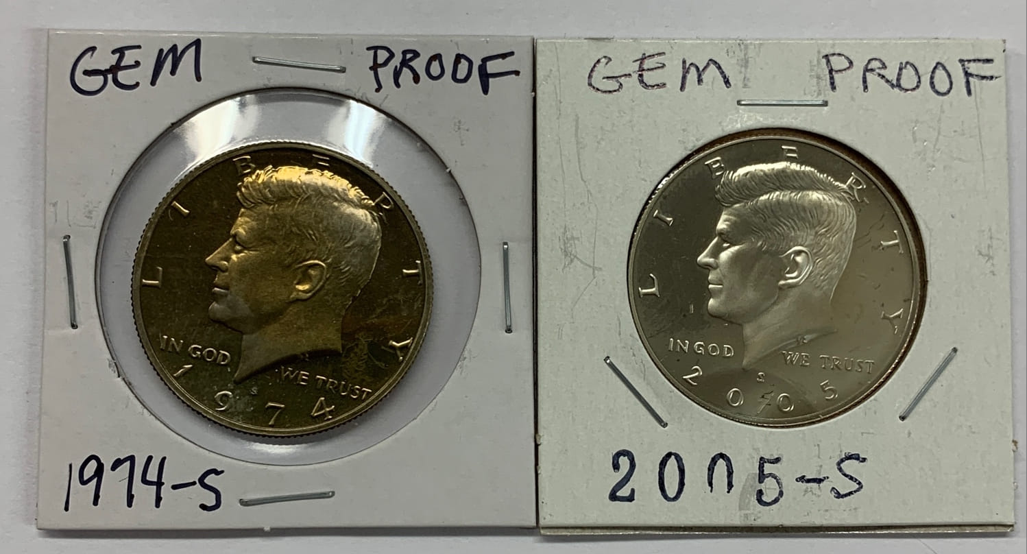 52 2 Kennedy Half Dollars, 1974-S Gem, 2005-S Gem