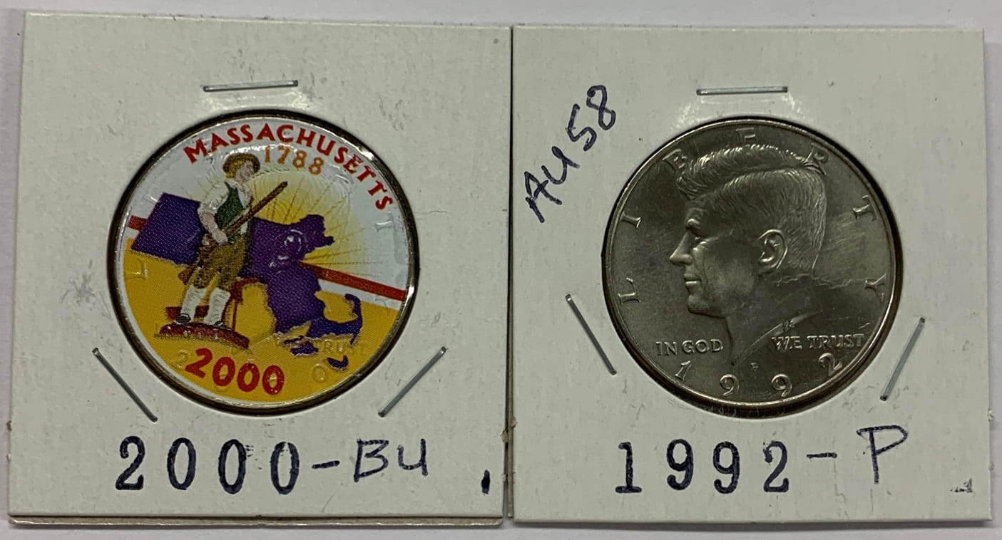 53 2 Kennedy Half Dollars, 2000-BU,1992-P AU58